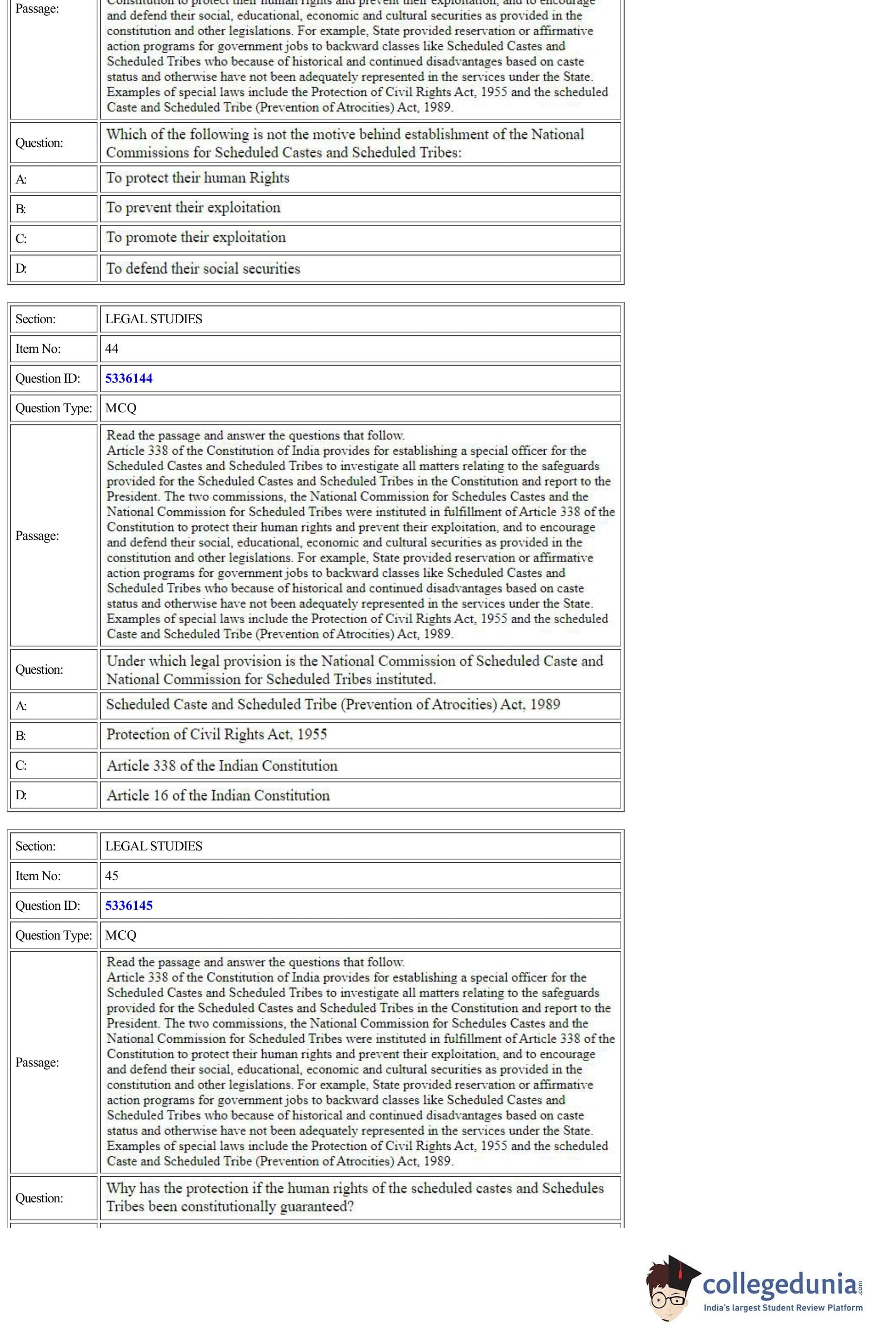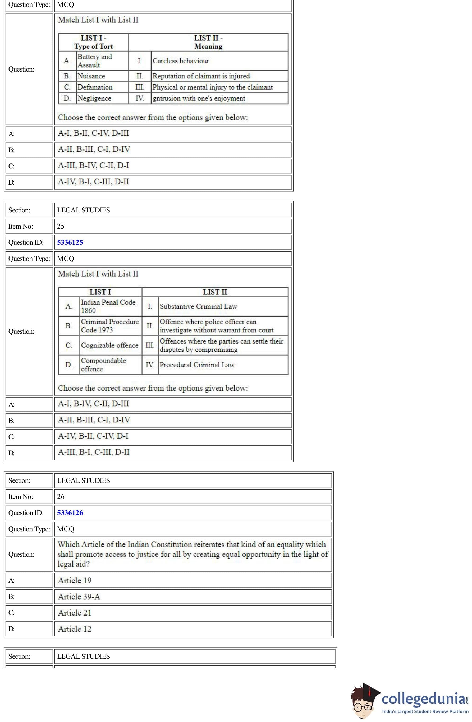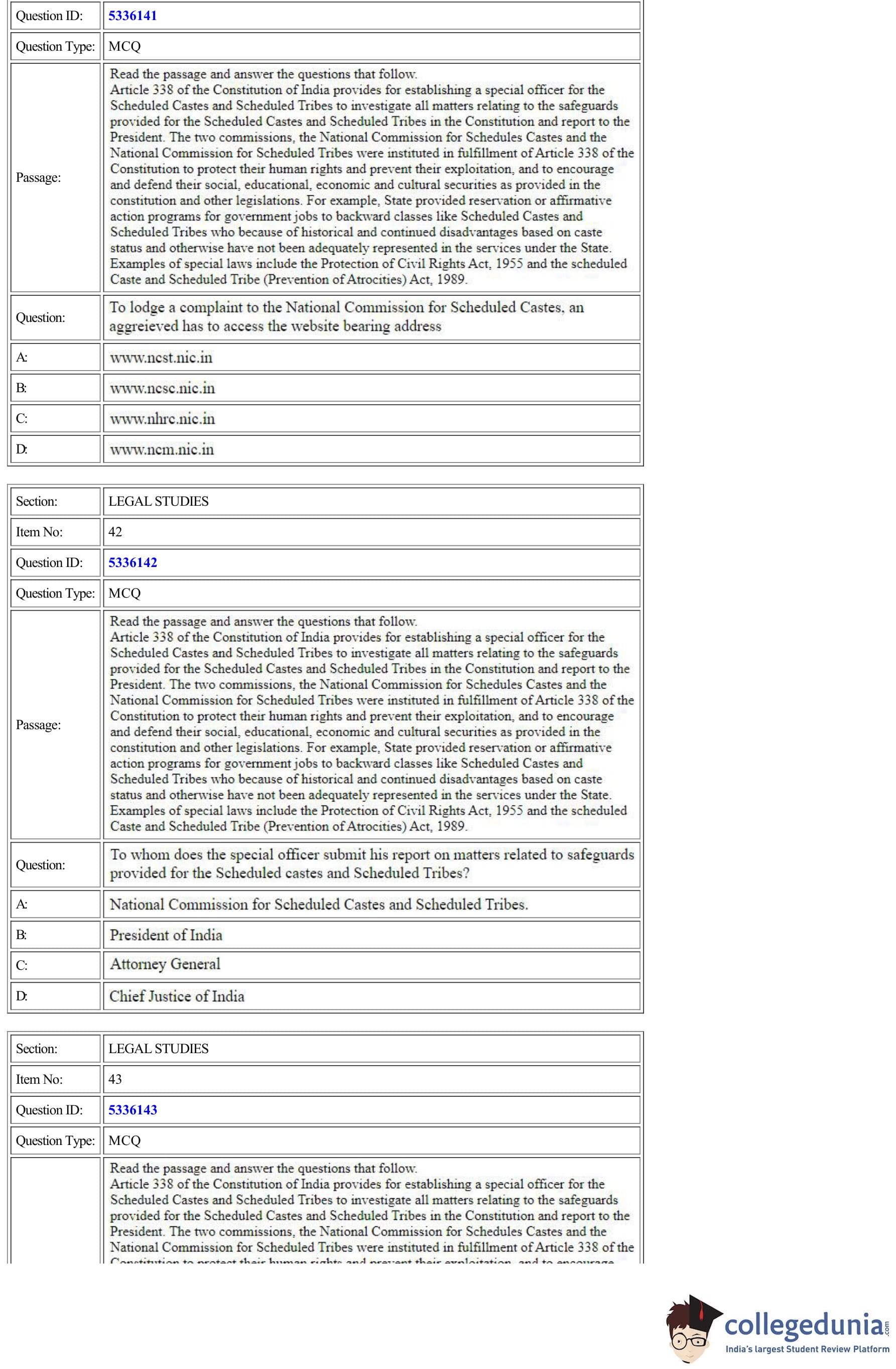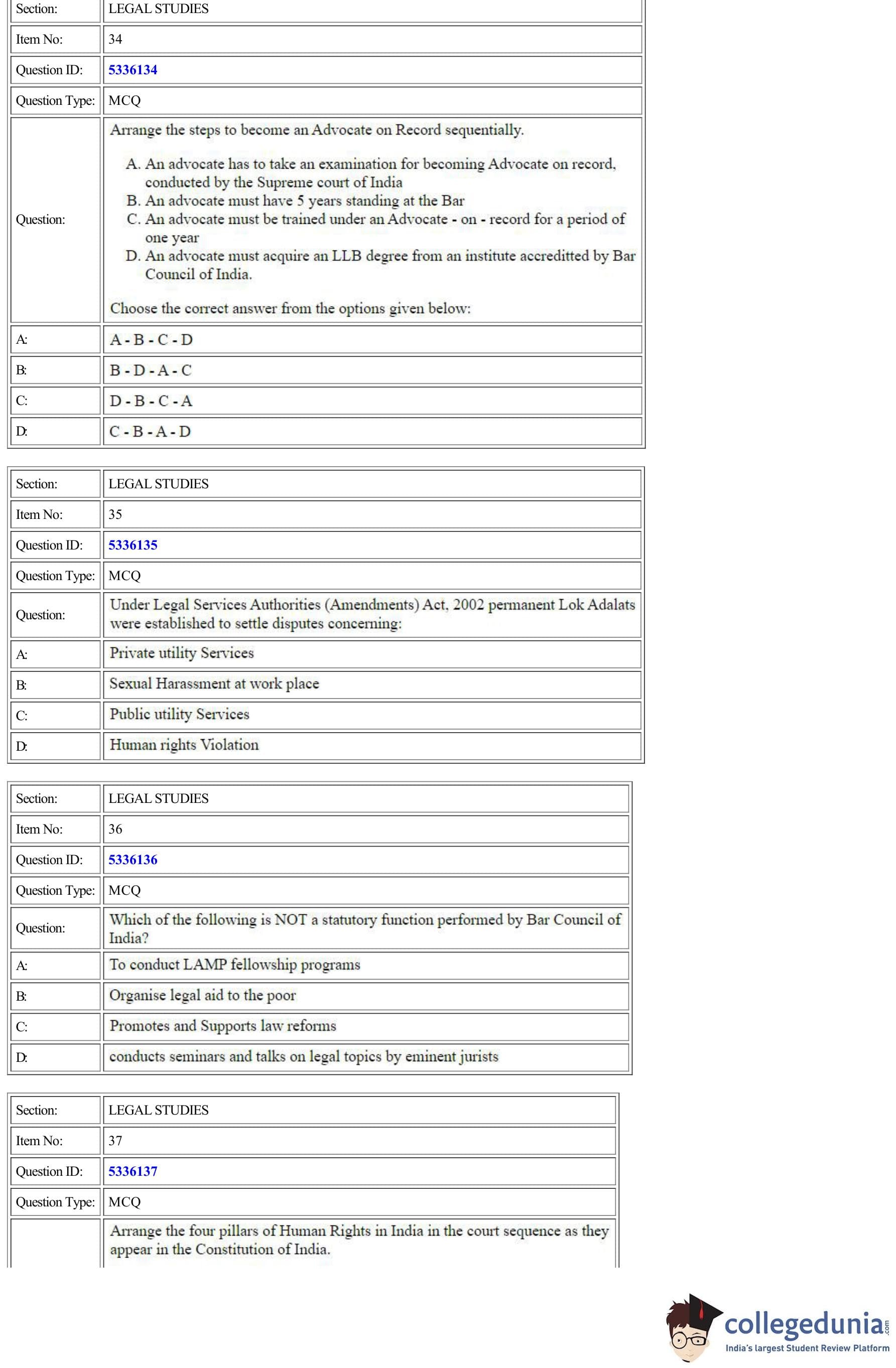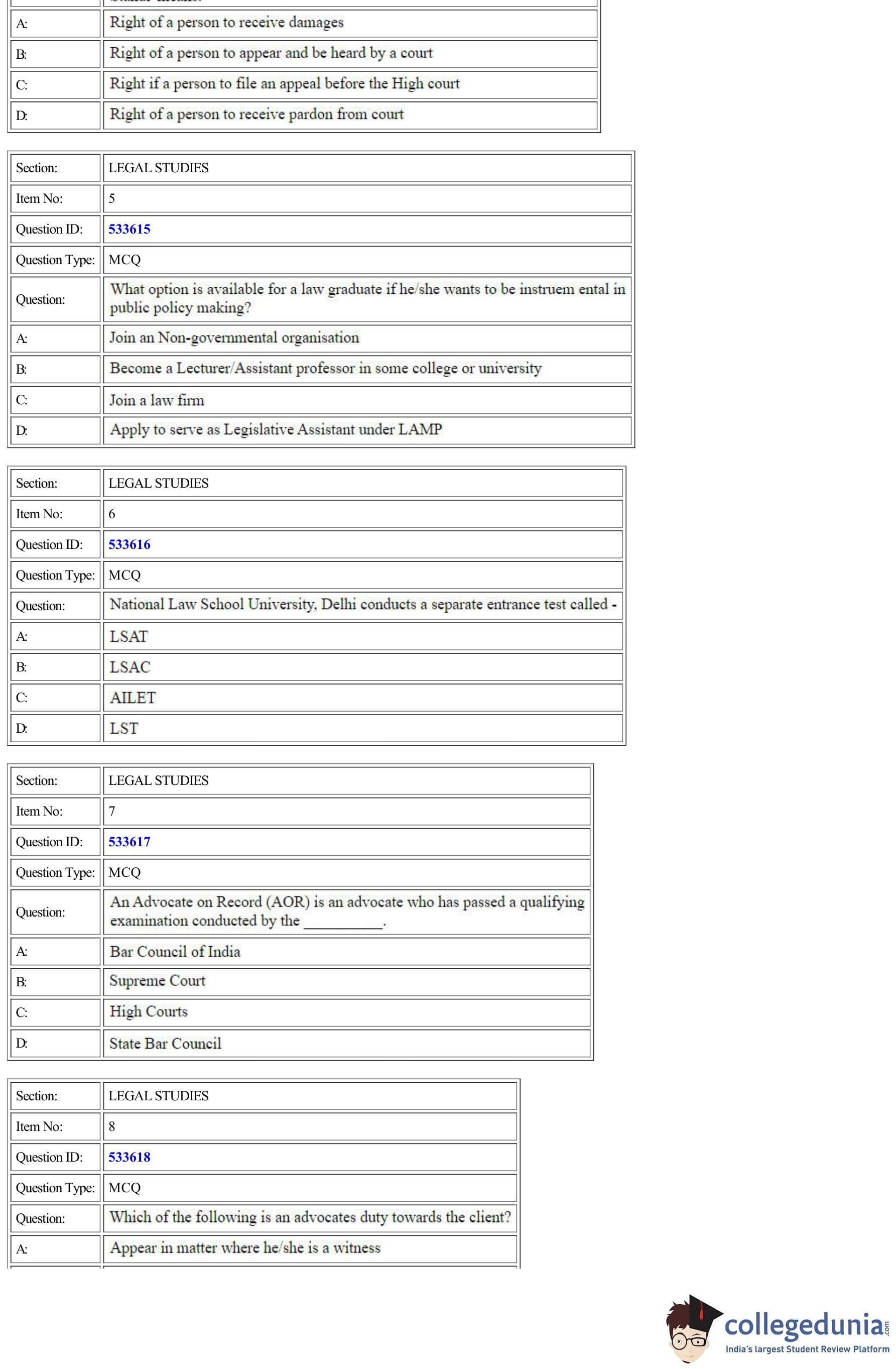 | CUET Legal Studies Question Paper PDF | CUET Legal Studies Answer Key PDF |