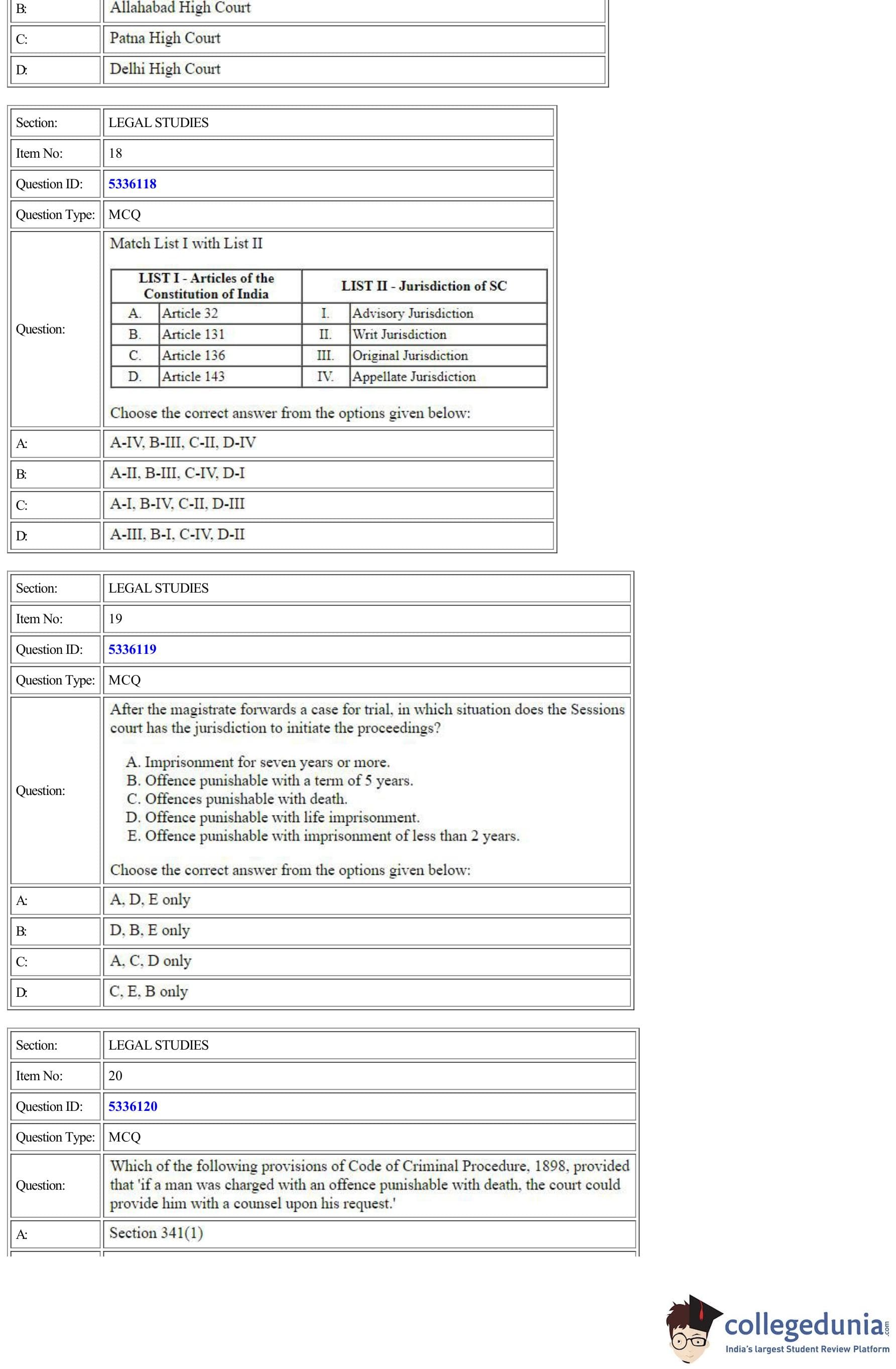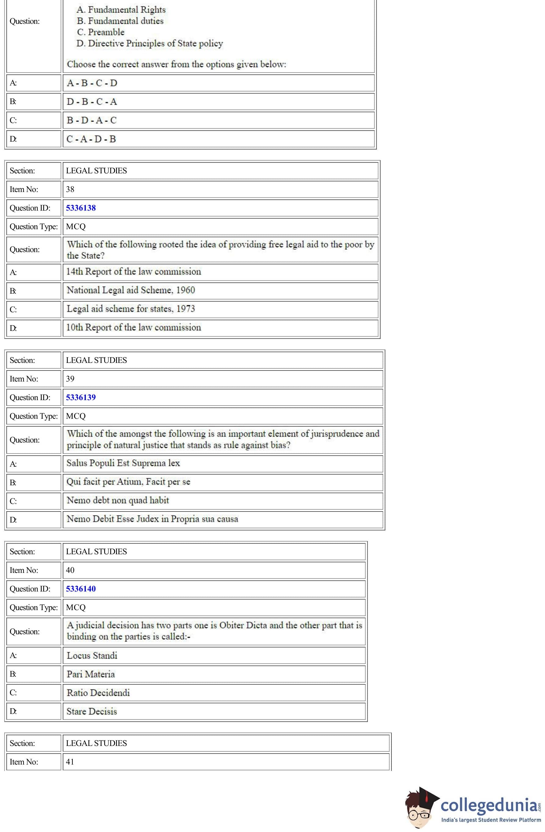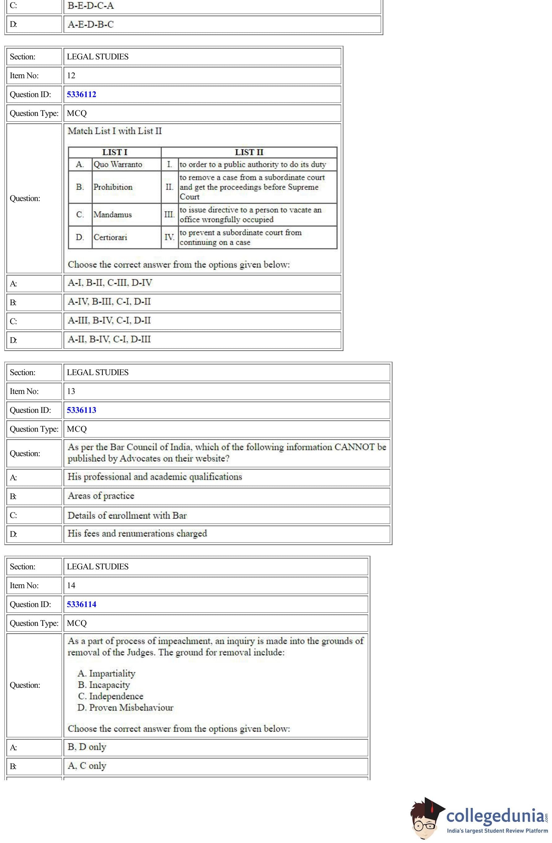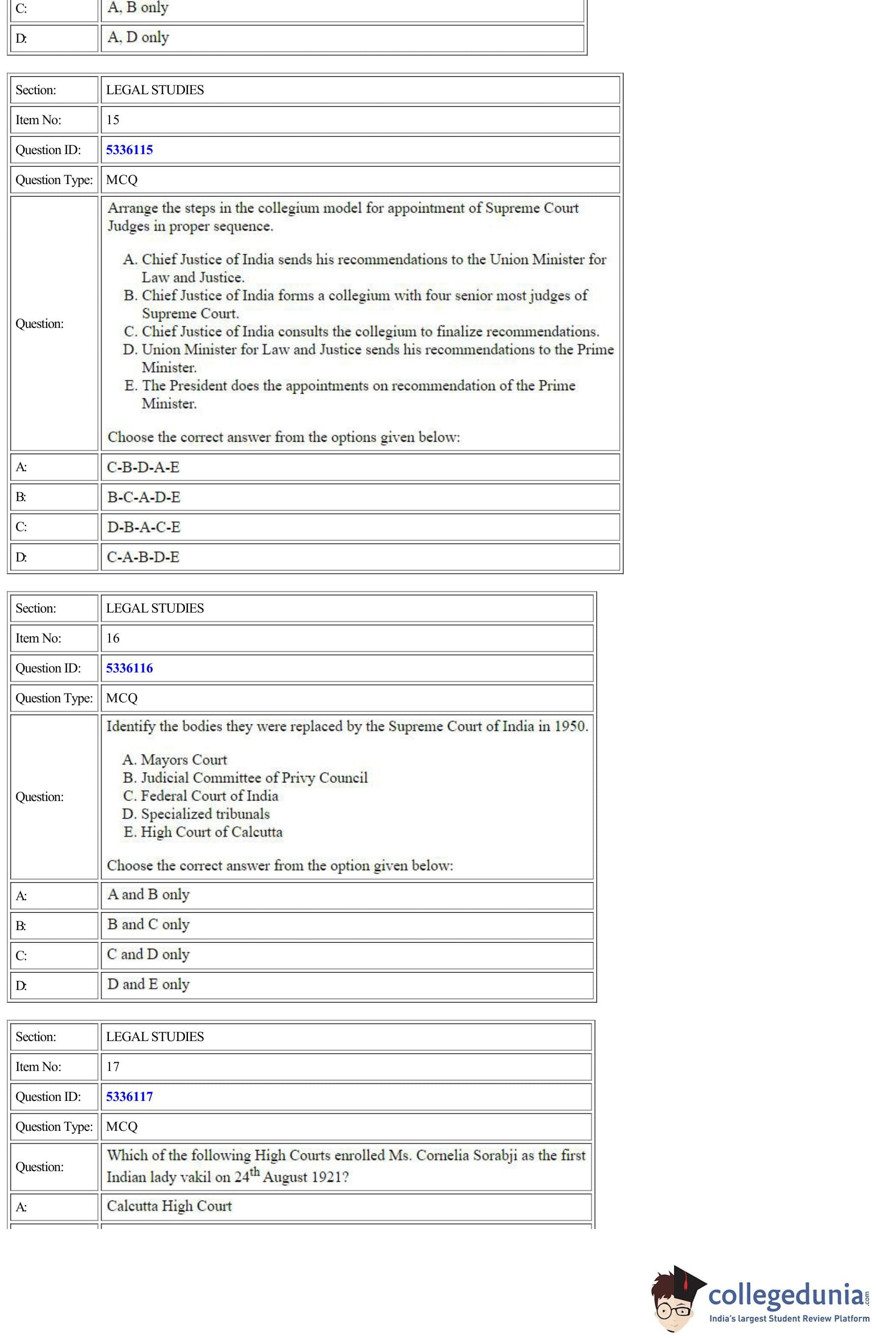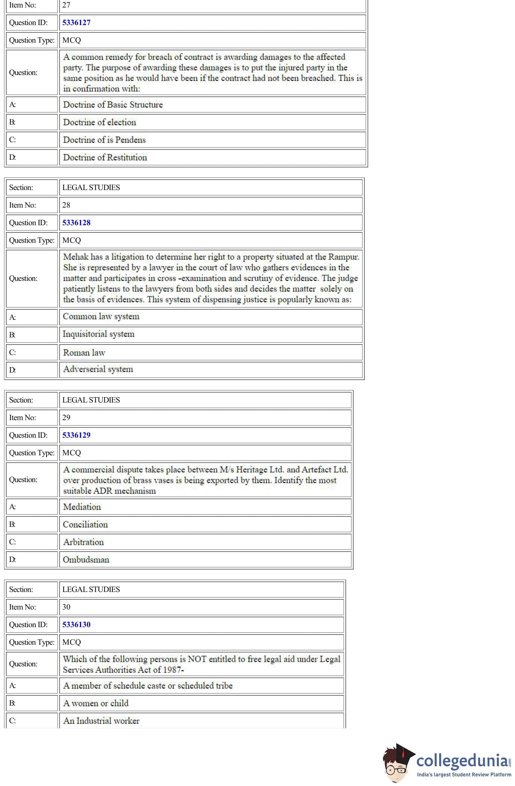 | CUET Legal Studies Question Paper PDF | CUET Legal Studies Answer Key PDF |
