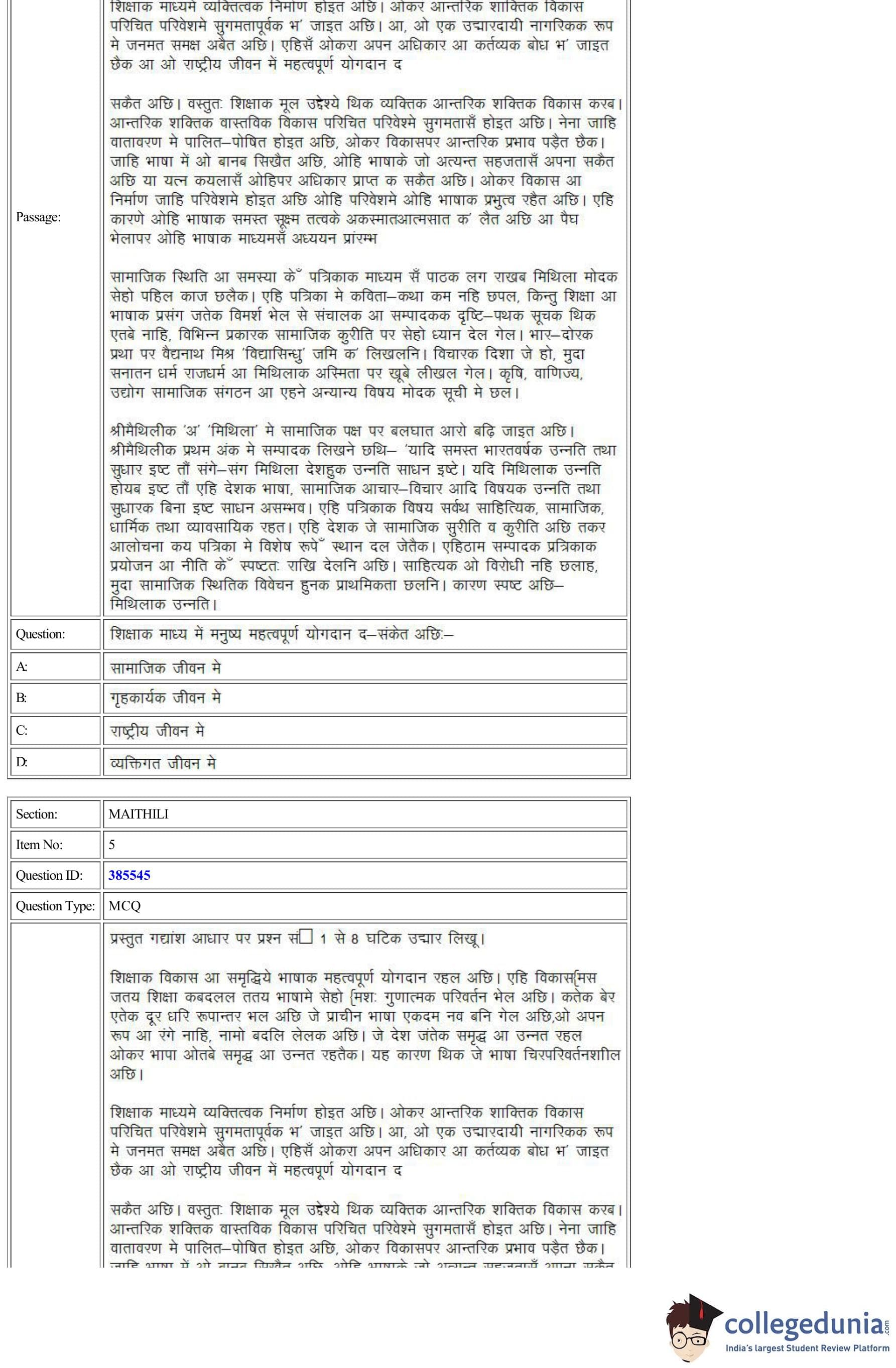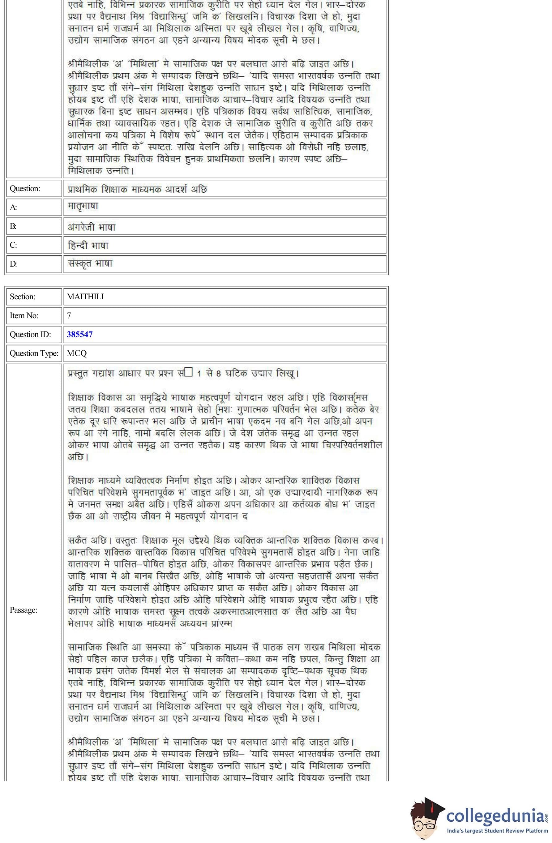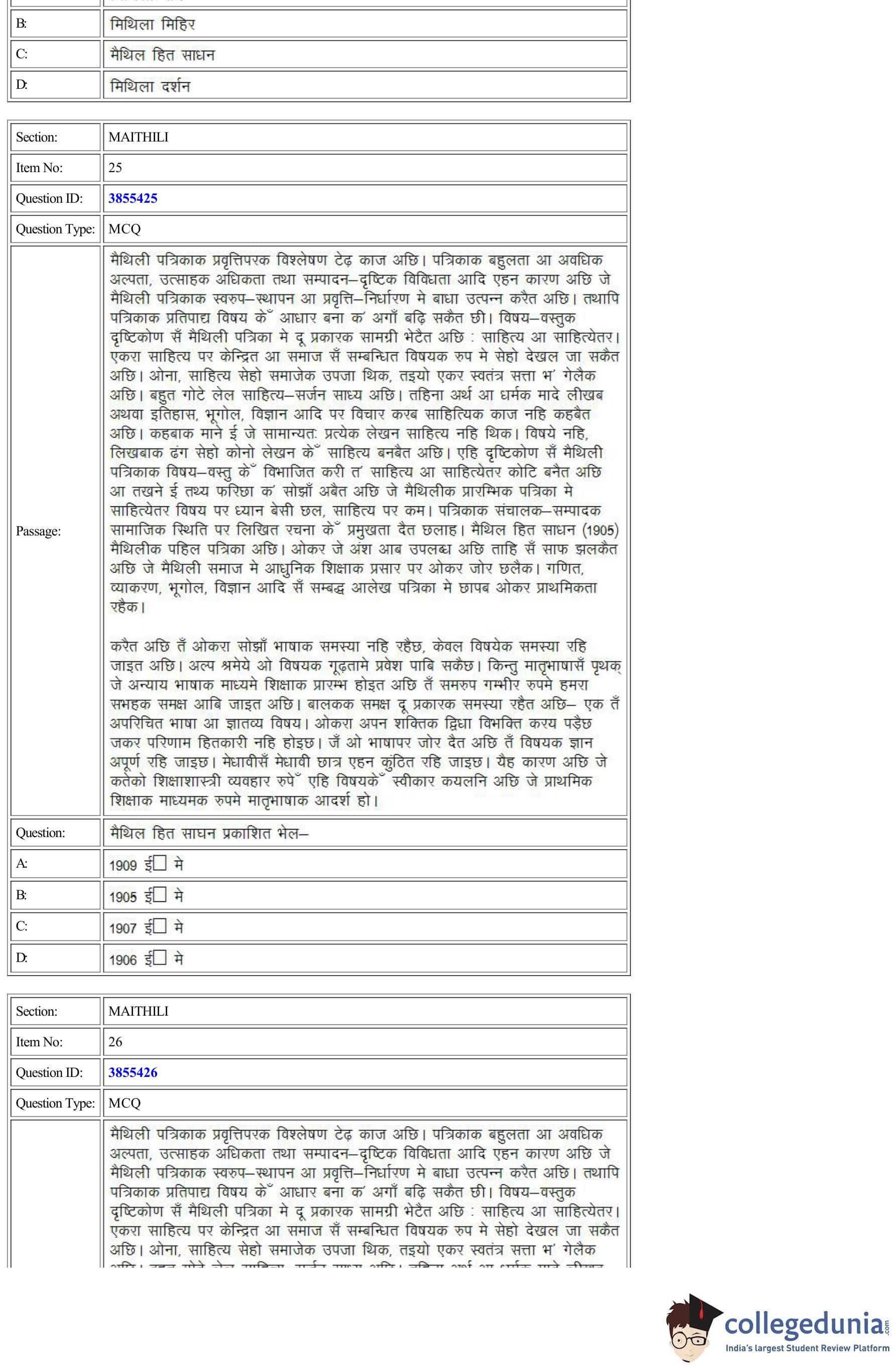 | CUET Maithili Question Paper PDF | CUET Maithili Answer Key PDF |