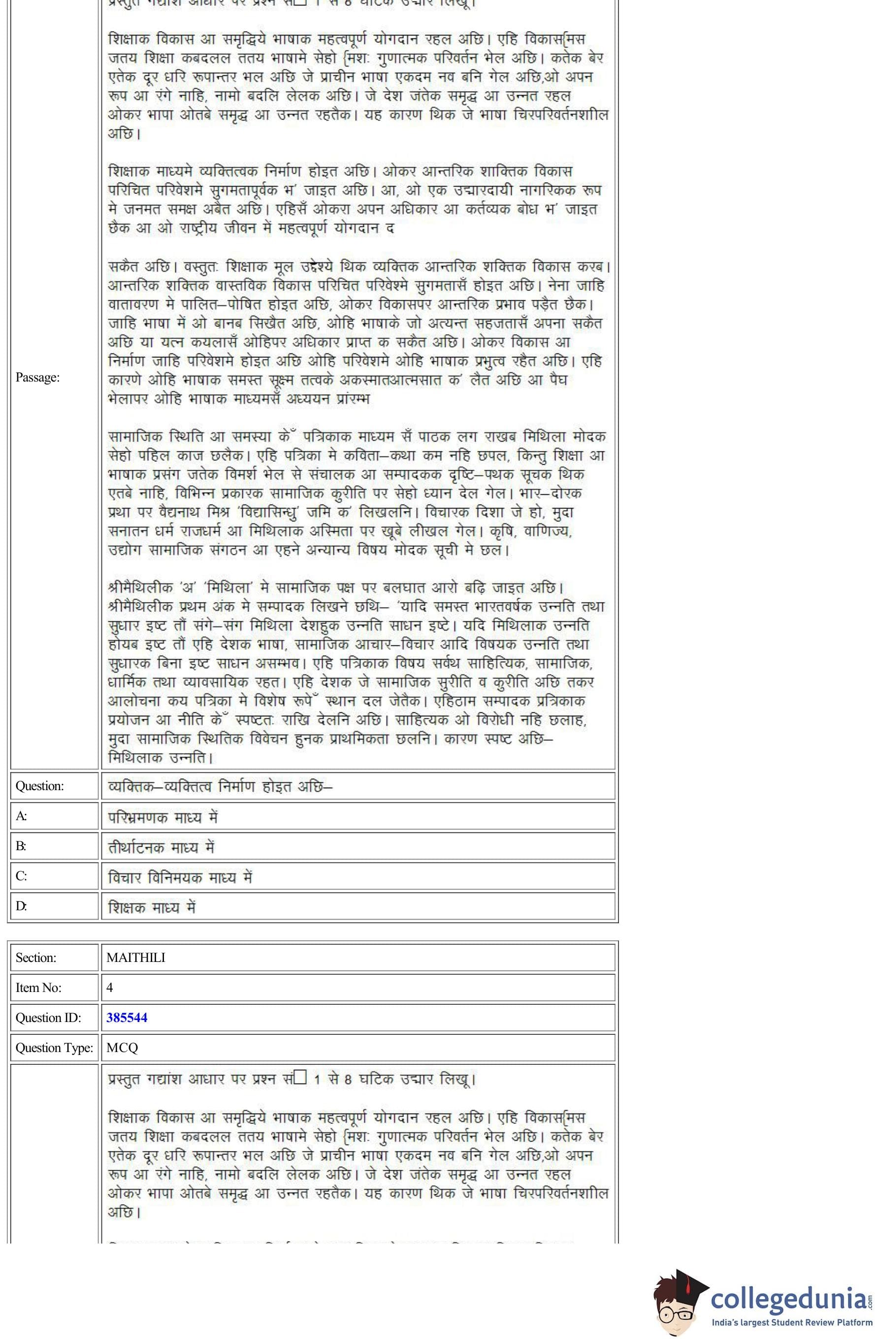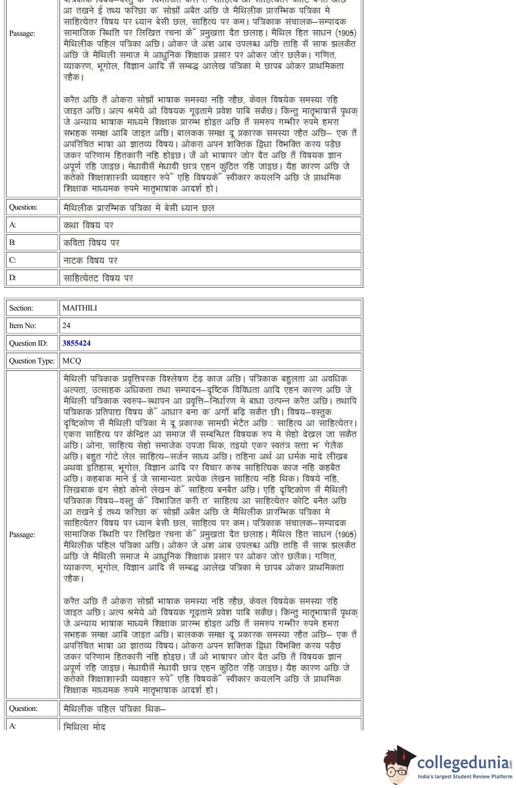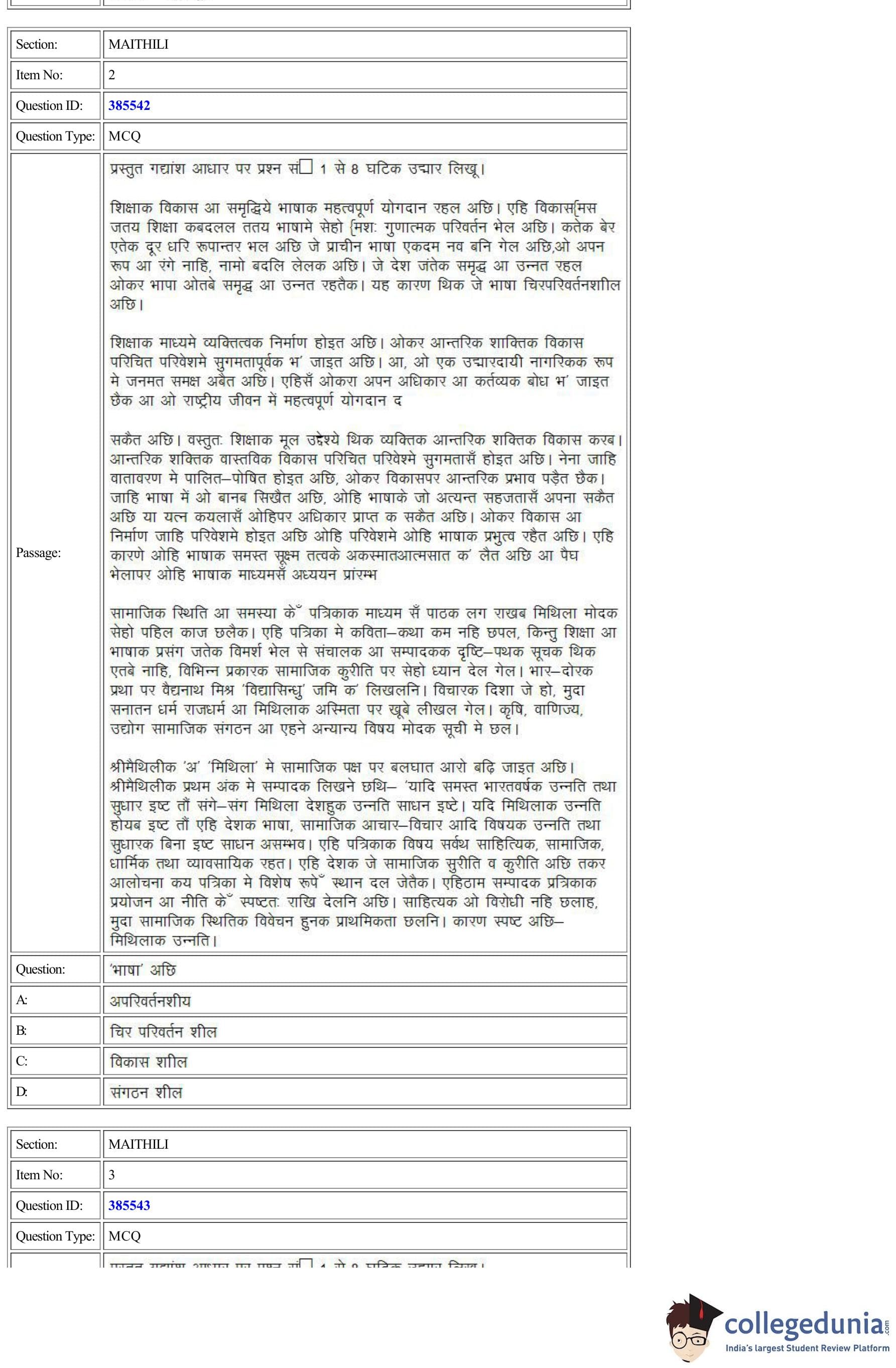 | CUET Maithili Question Paper PDF | CUET Maithili Answer Key PDF |