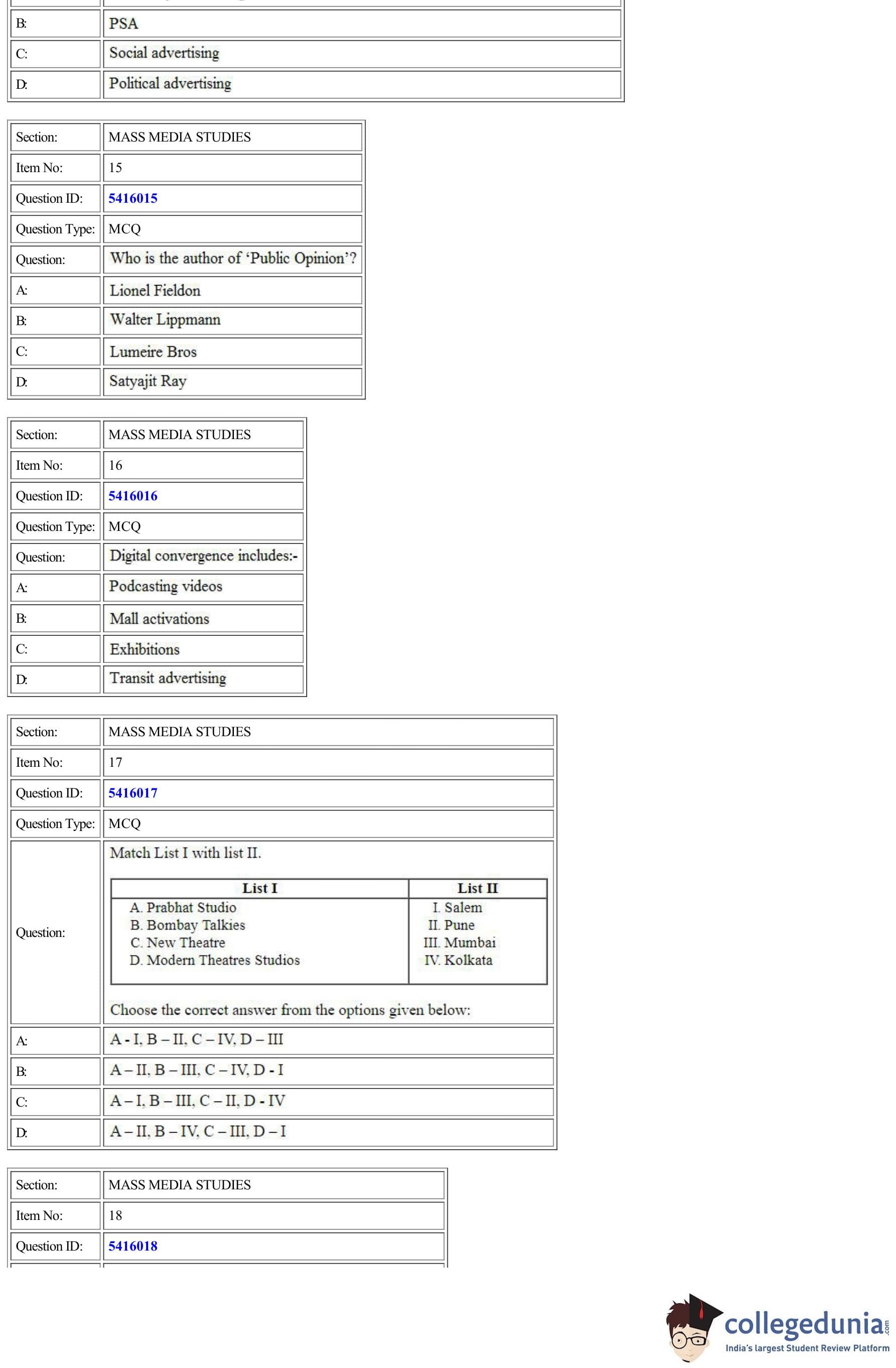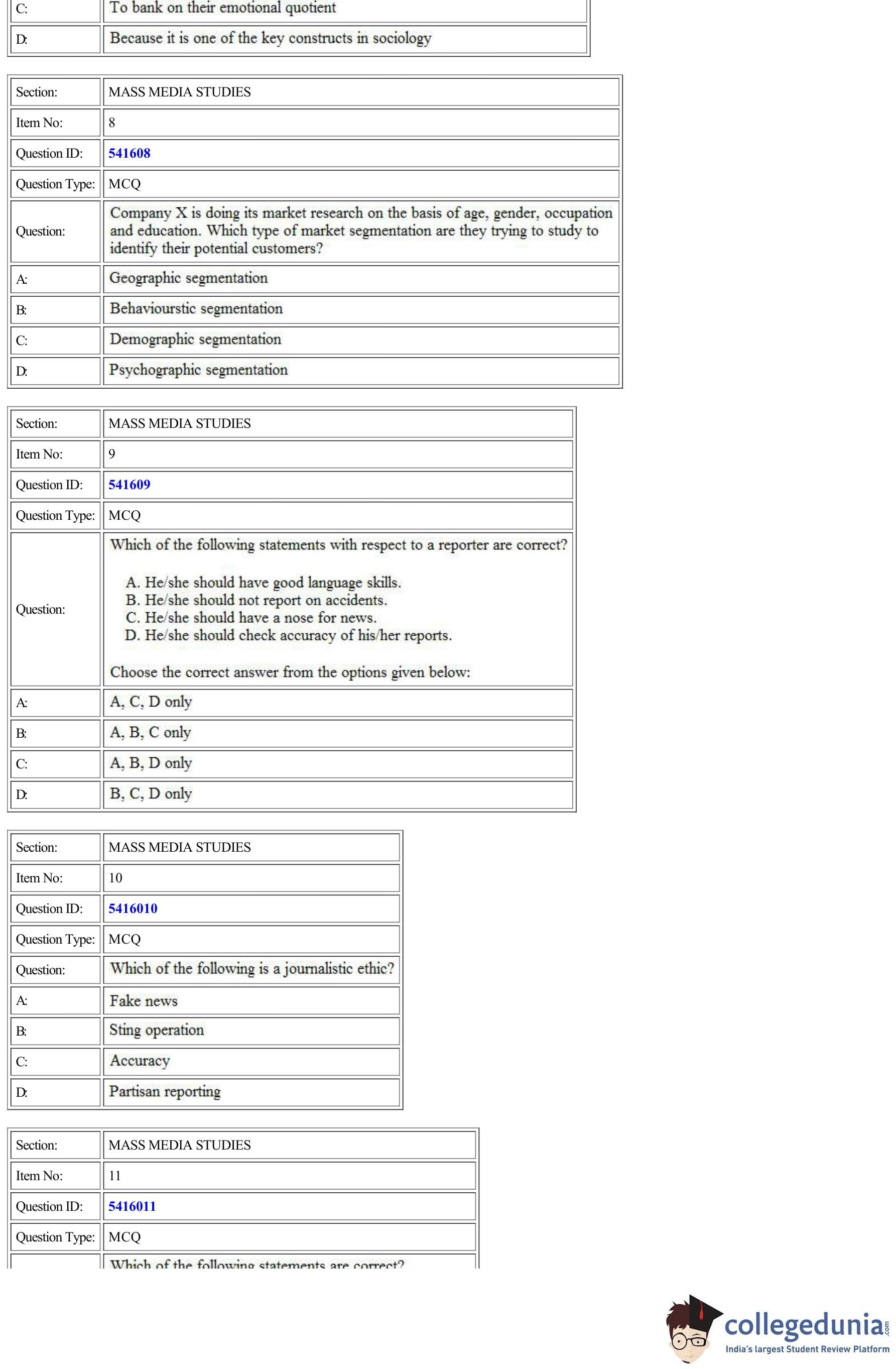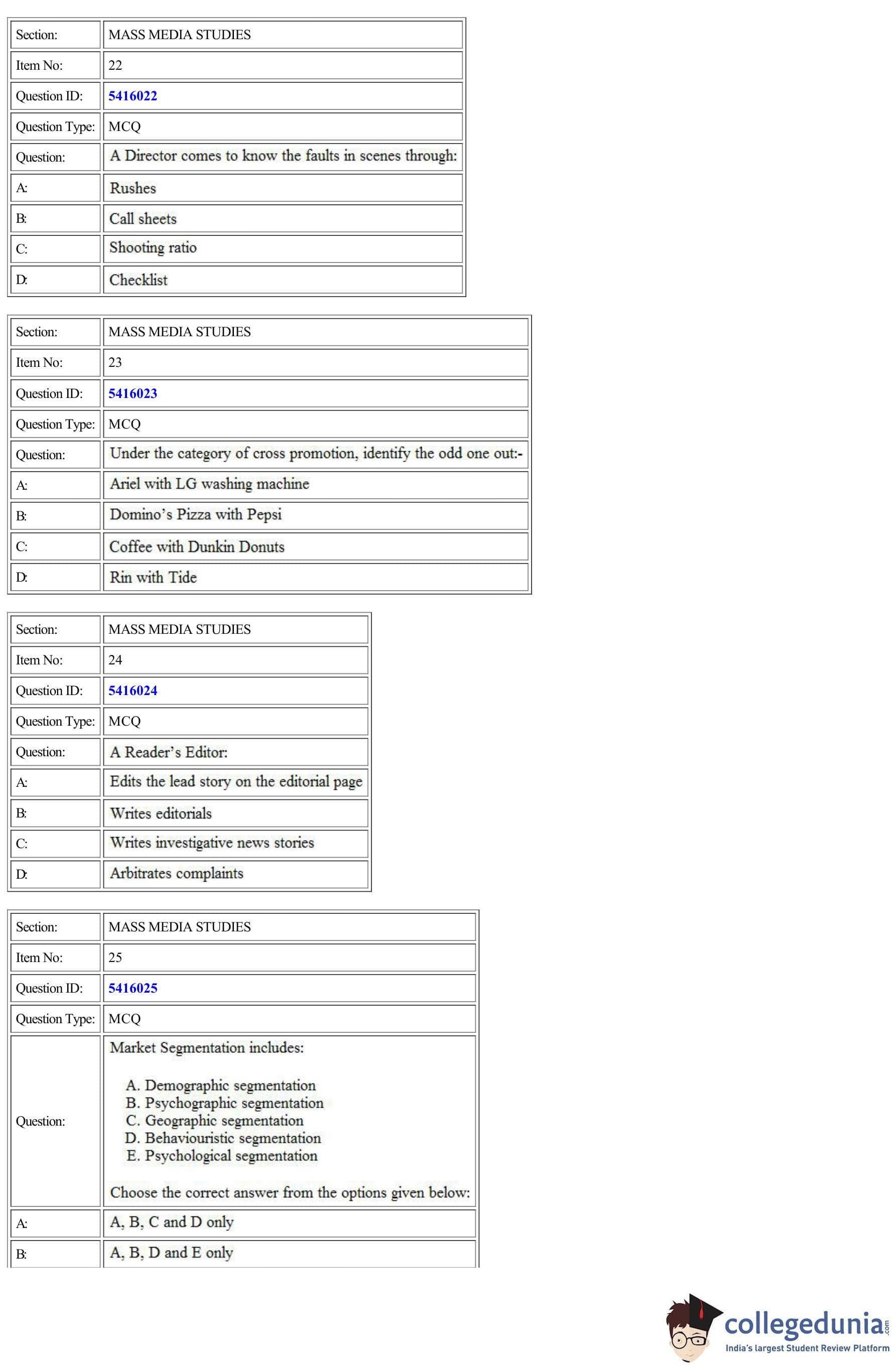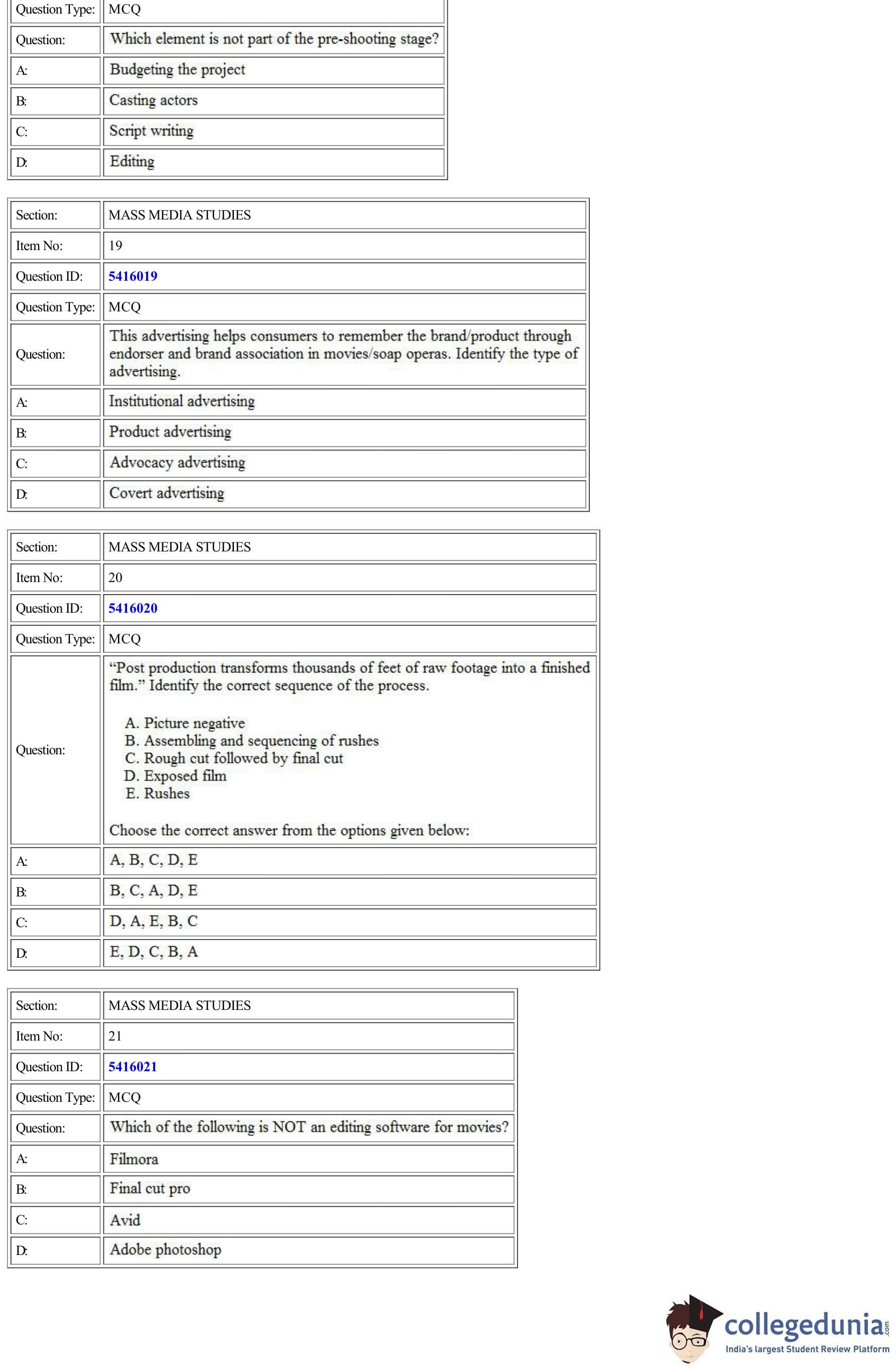 | CUET Mass Media Studies Question Paper PDF | CUET Mass Media Studies Answer Key PDF |
