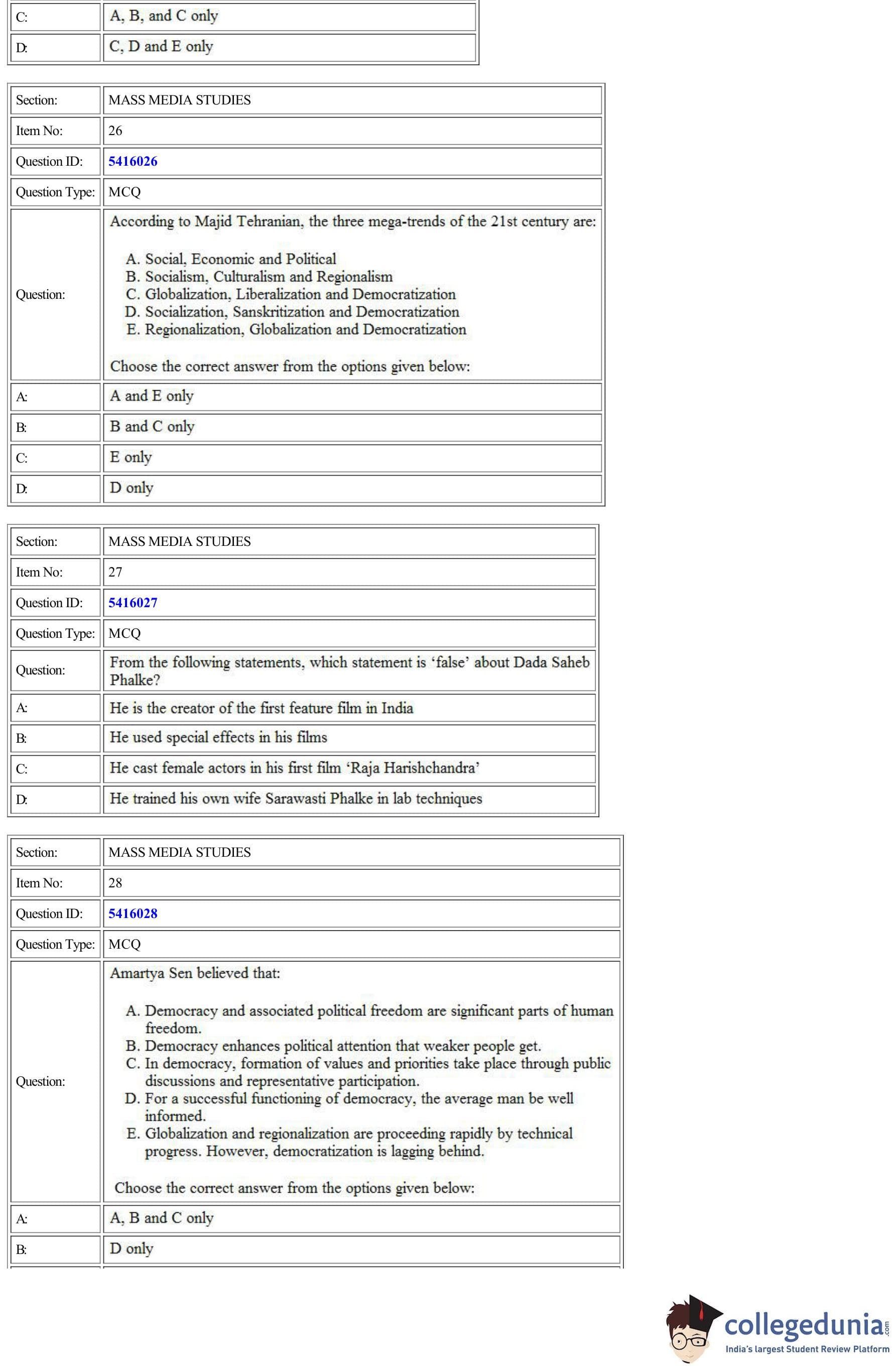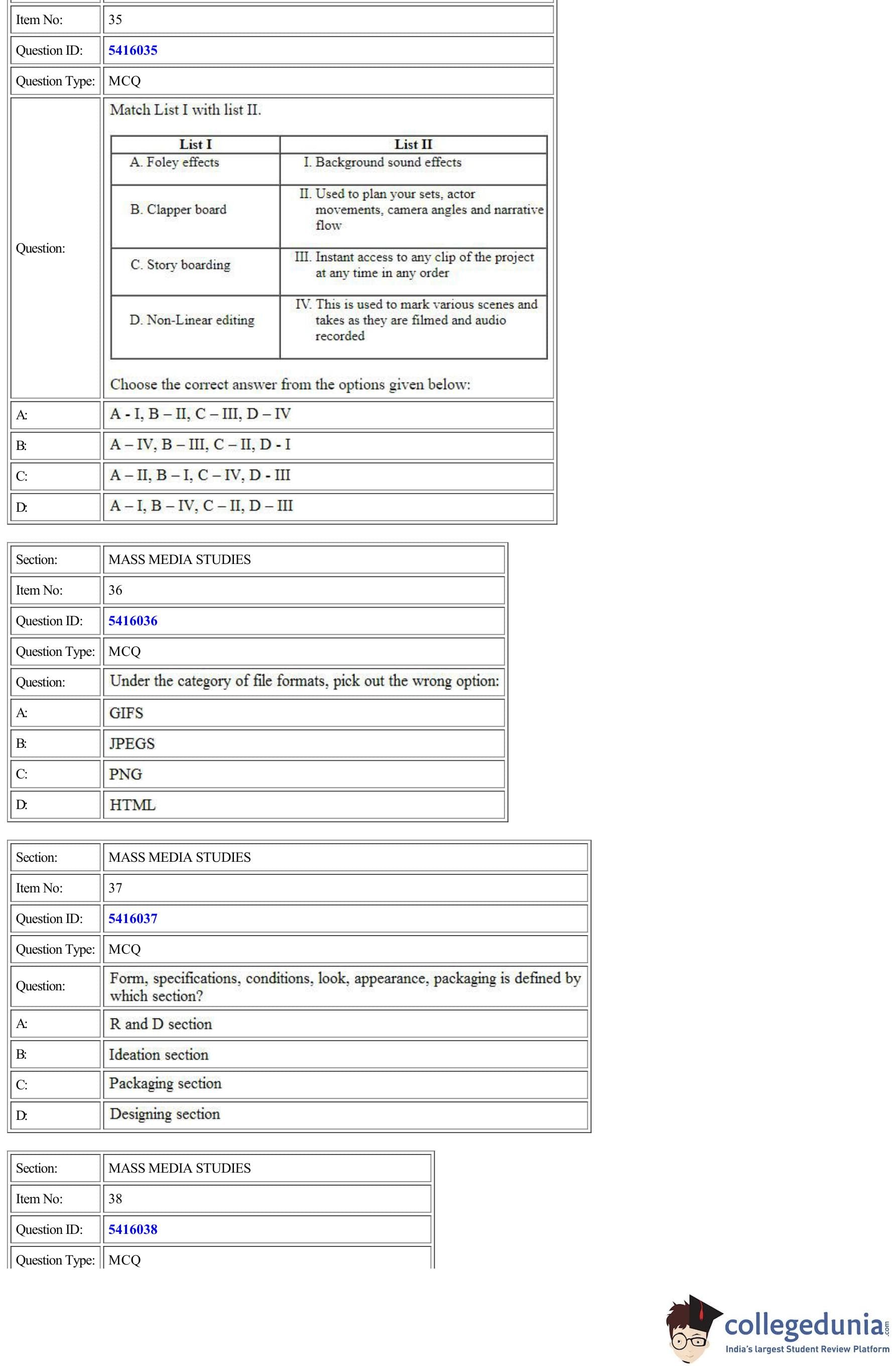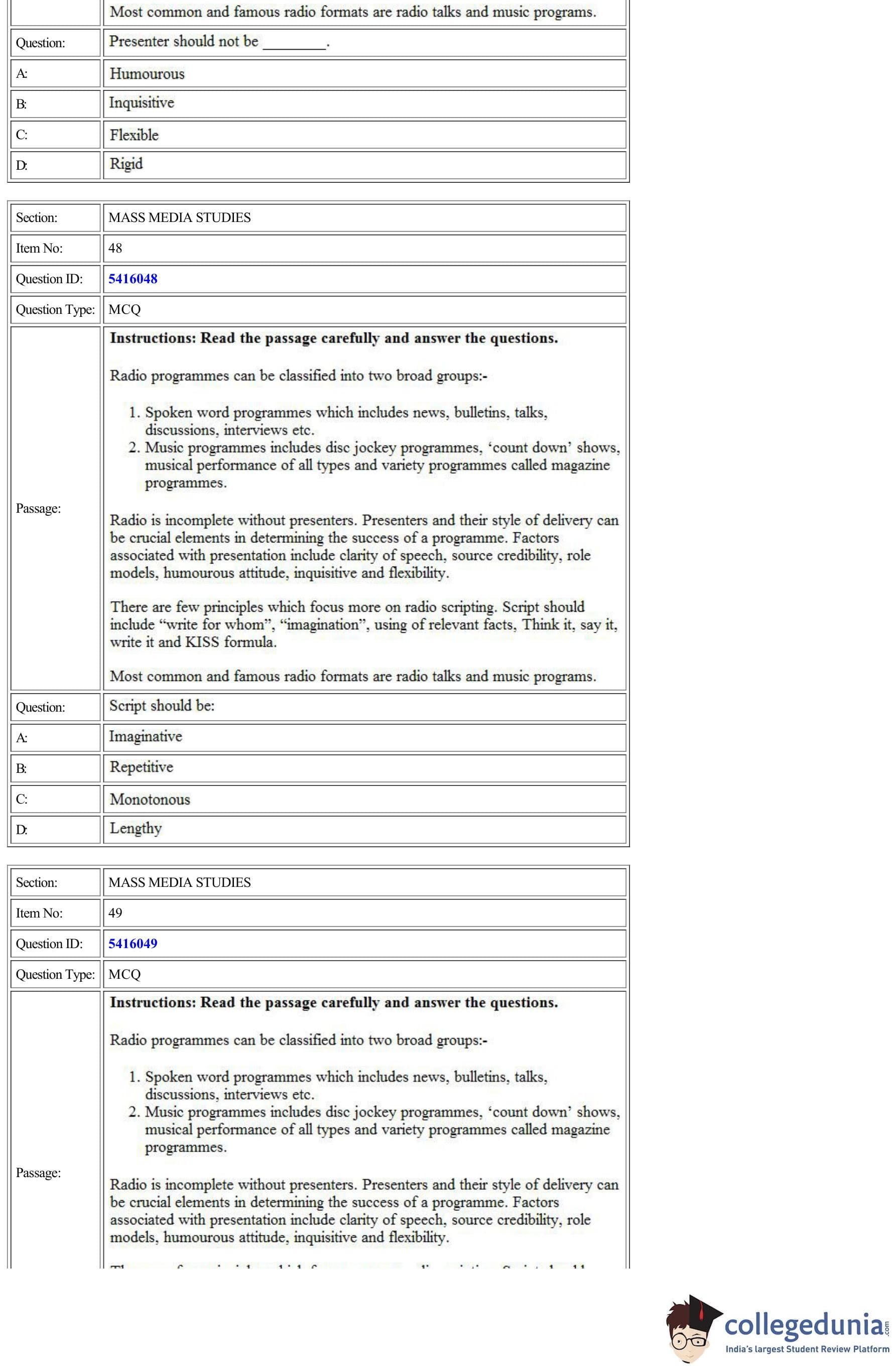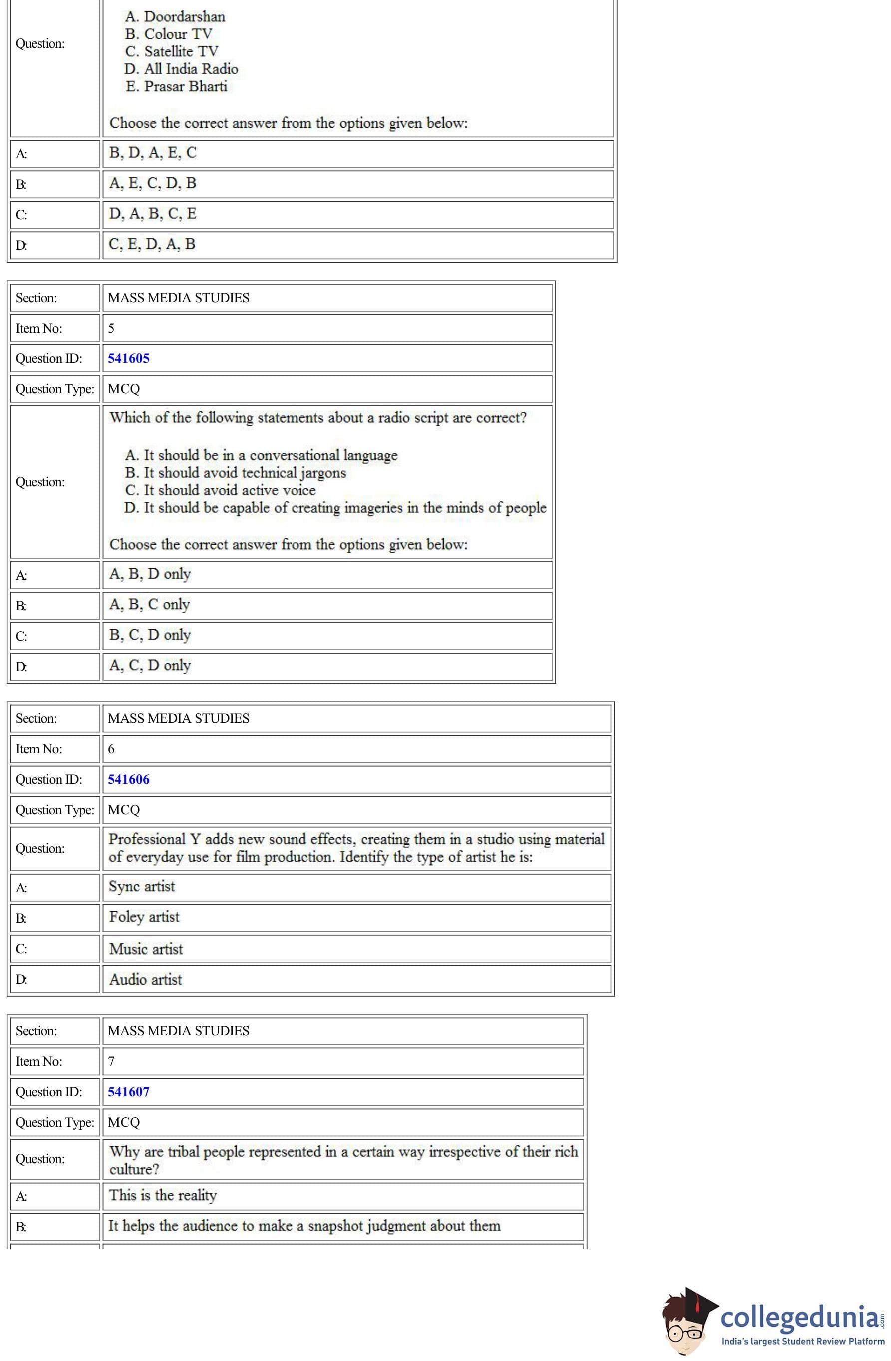 | CUET Mass Media Studies Question Paper PDF | CUET Mass Media Studies Answer Key PDF |