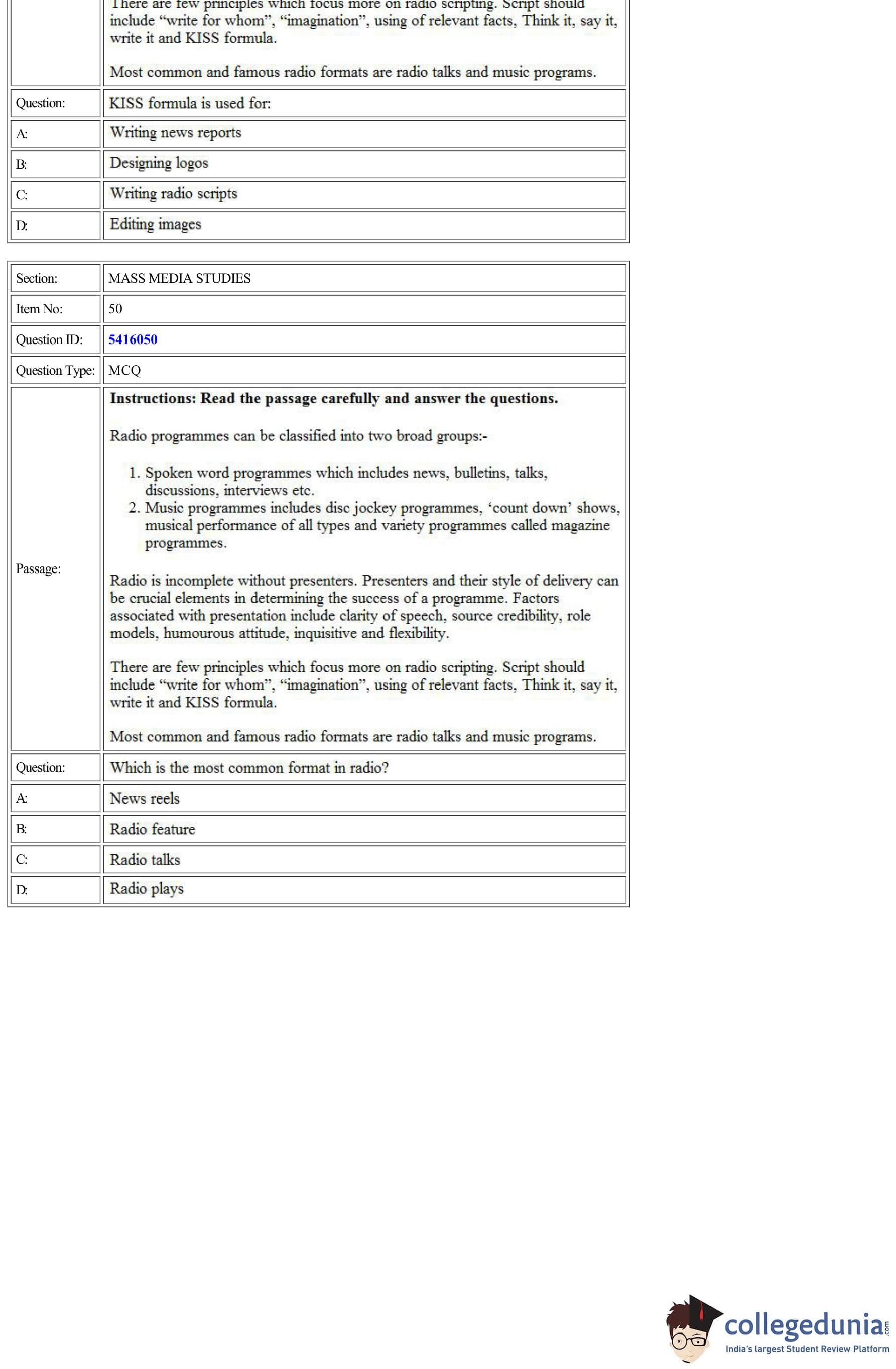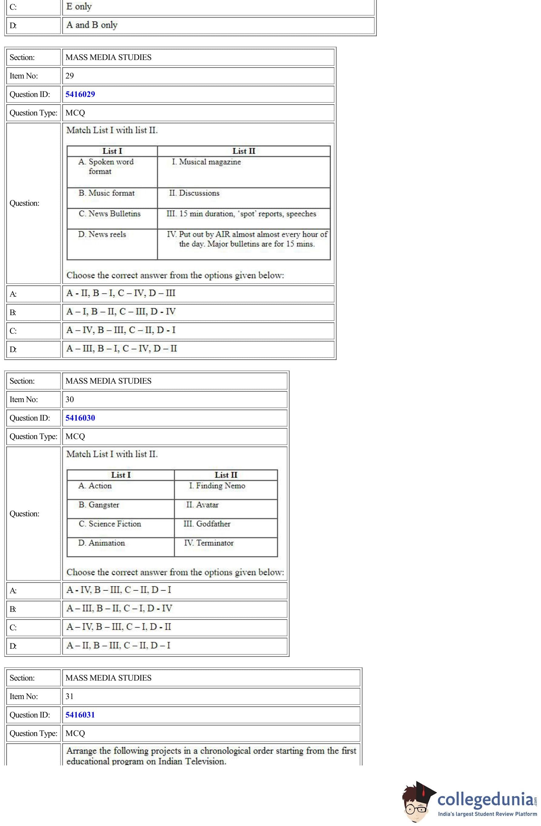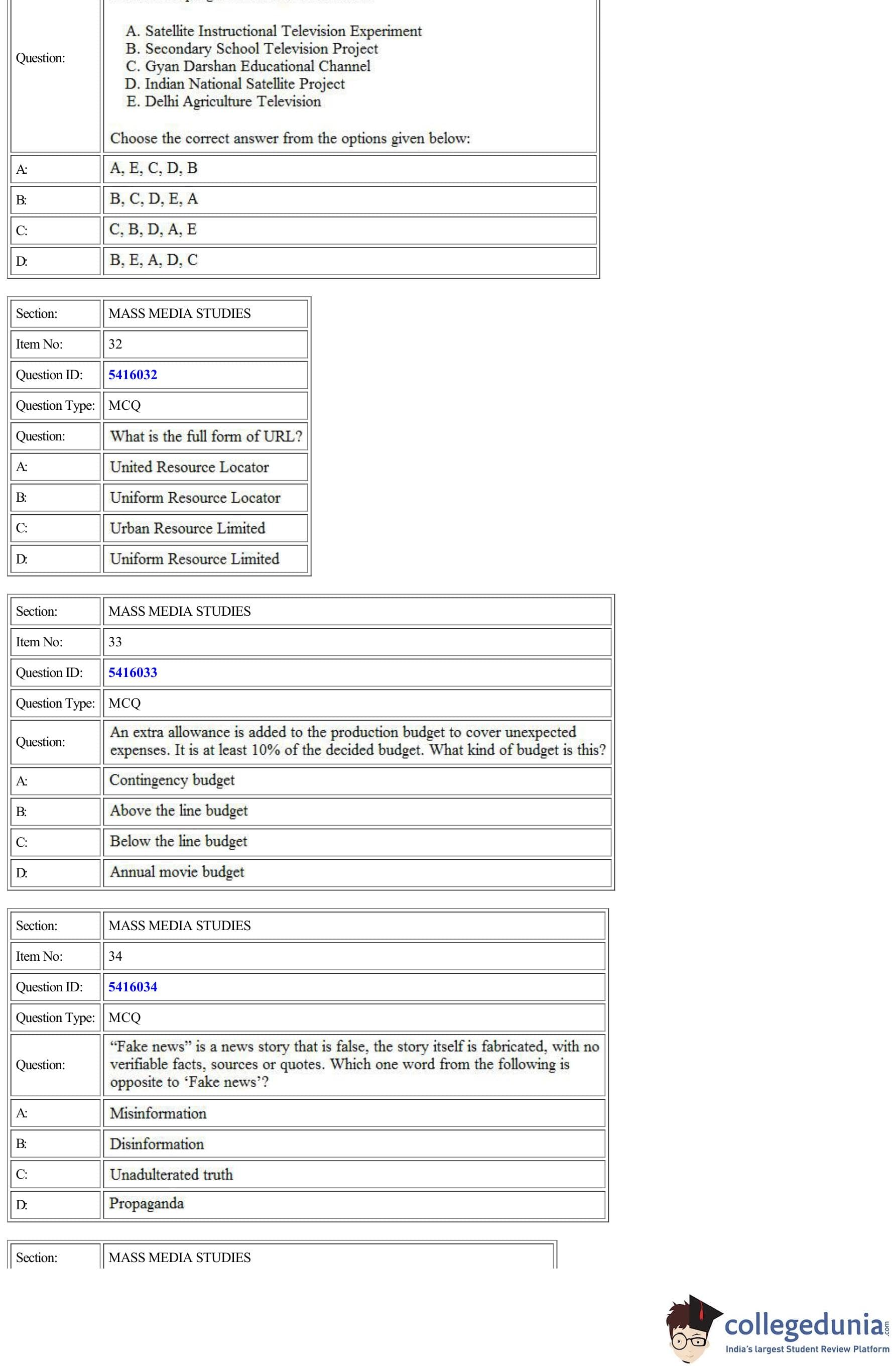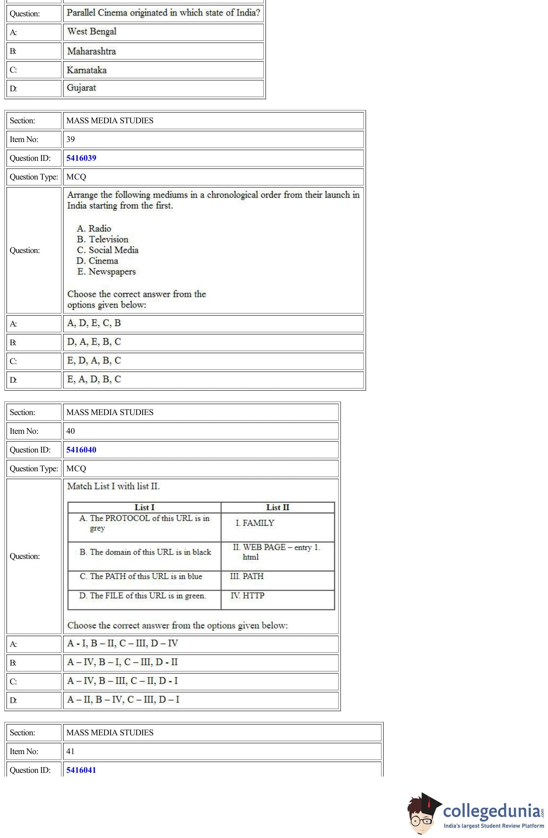 | CUET Mass Media Studies Question Paper PDF | CUET Mass Media Studies Answer Key PDF |