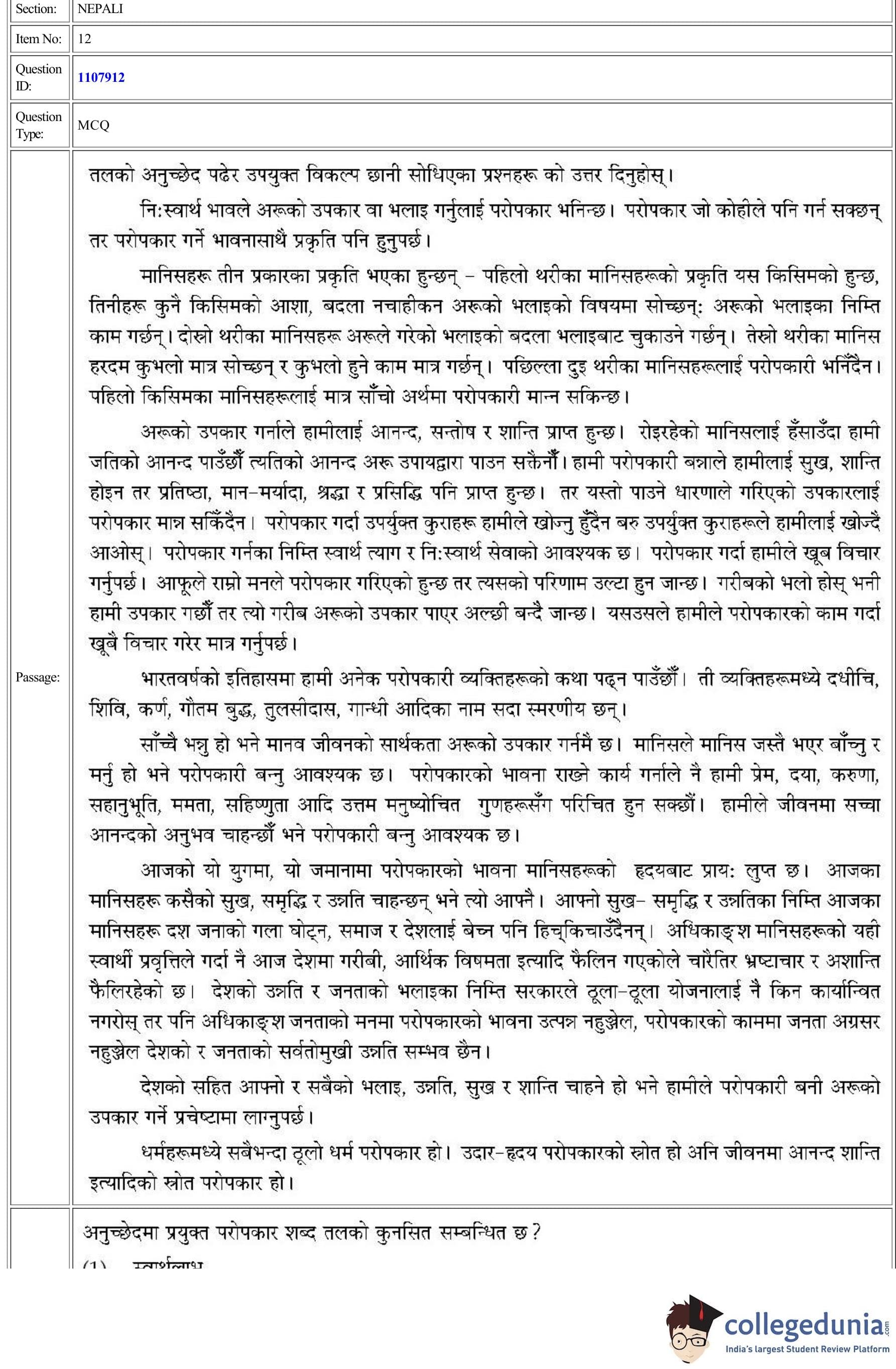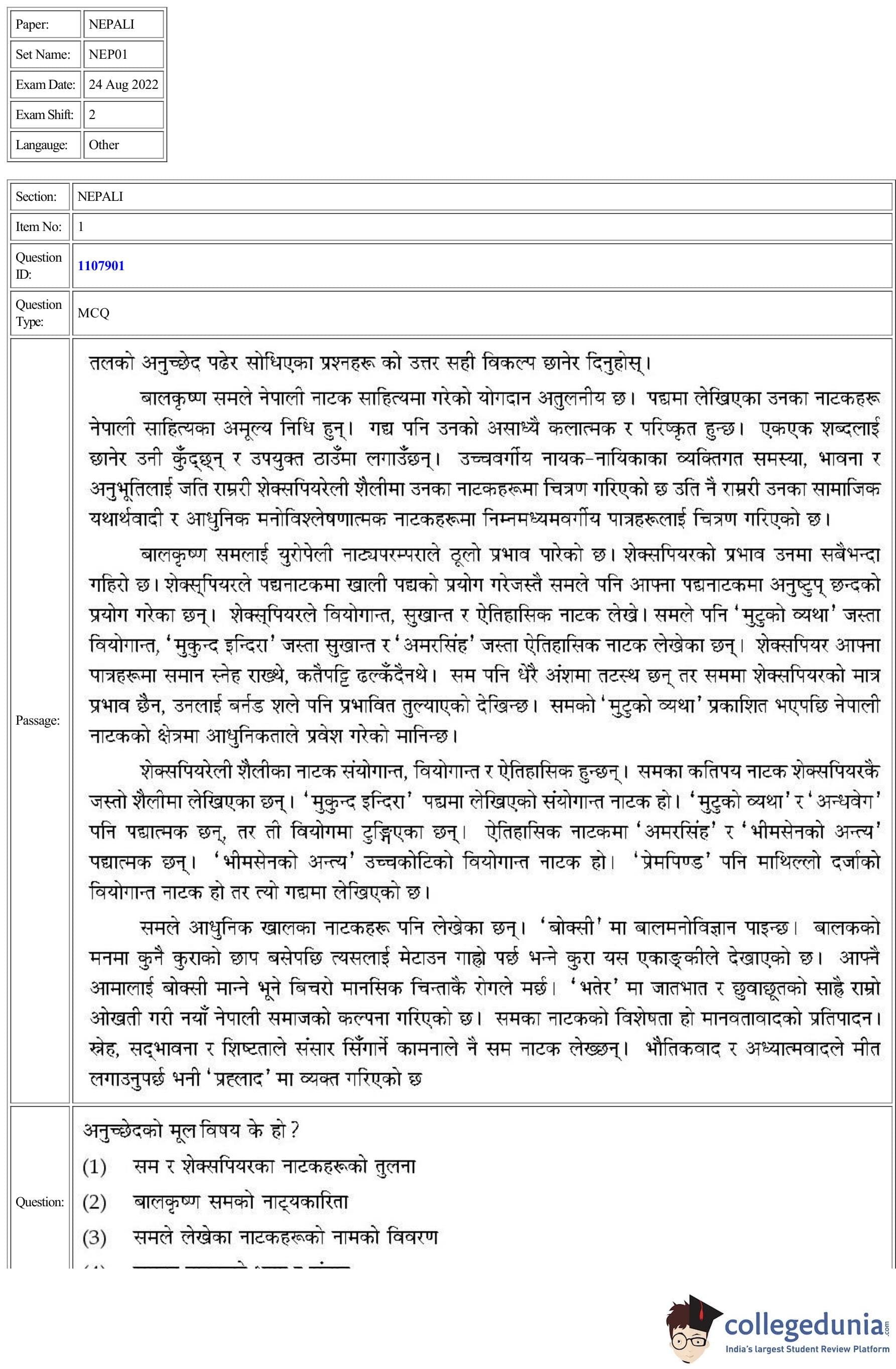 CUET 2022 Nepali Question Paper with Answer Key PDF