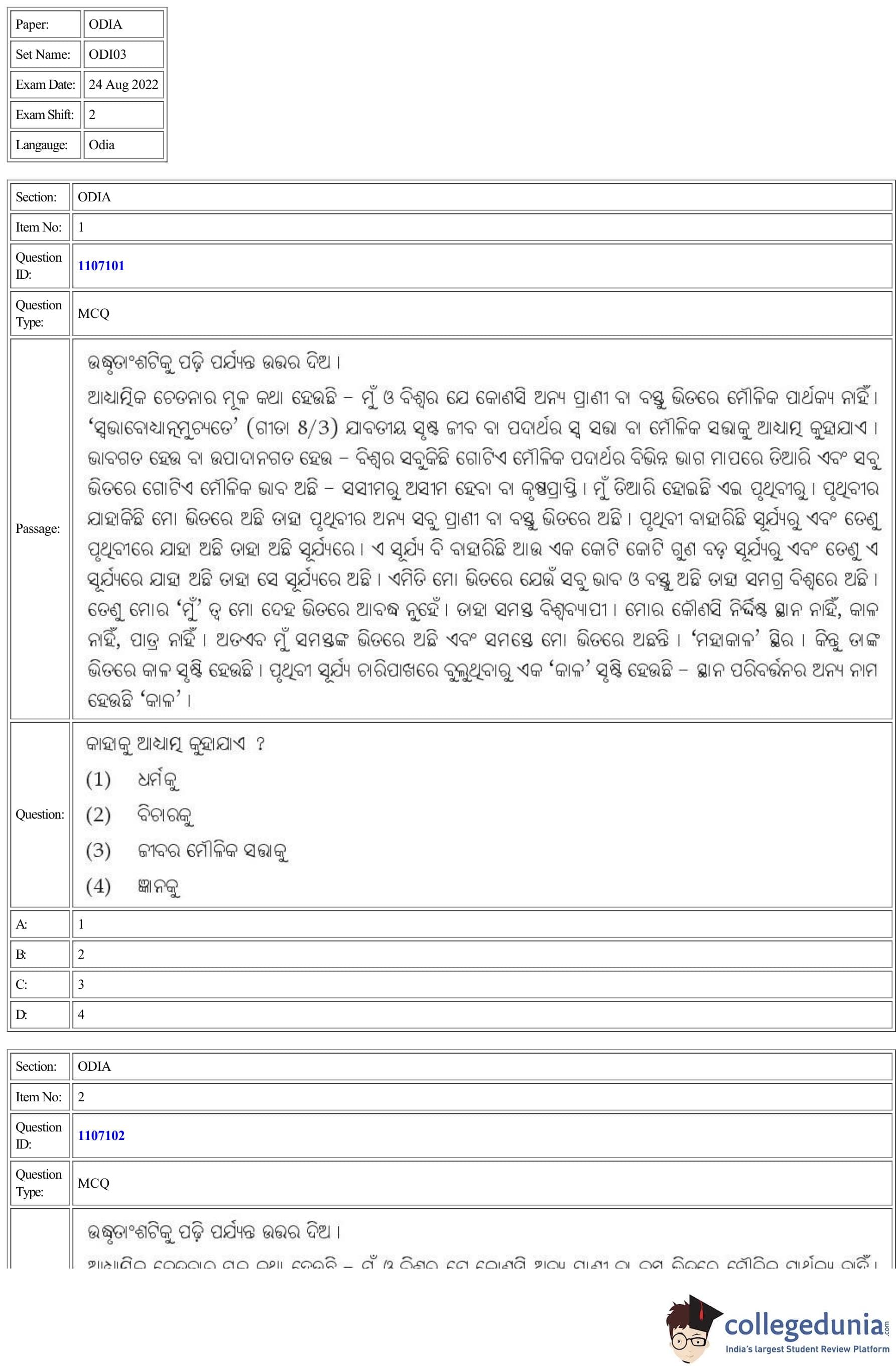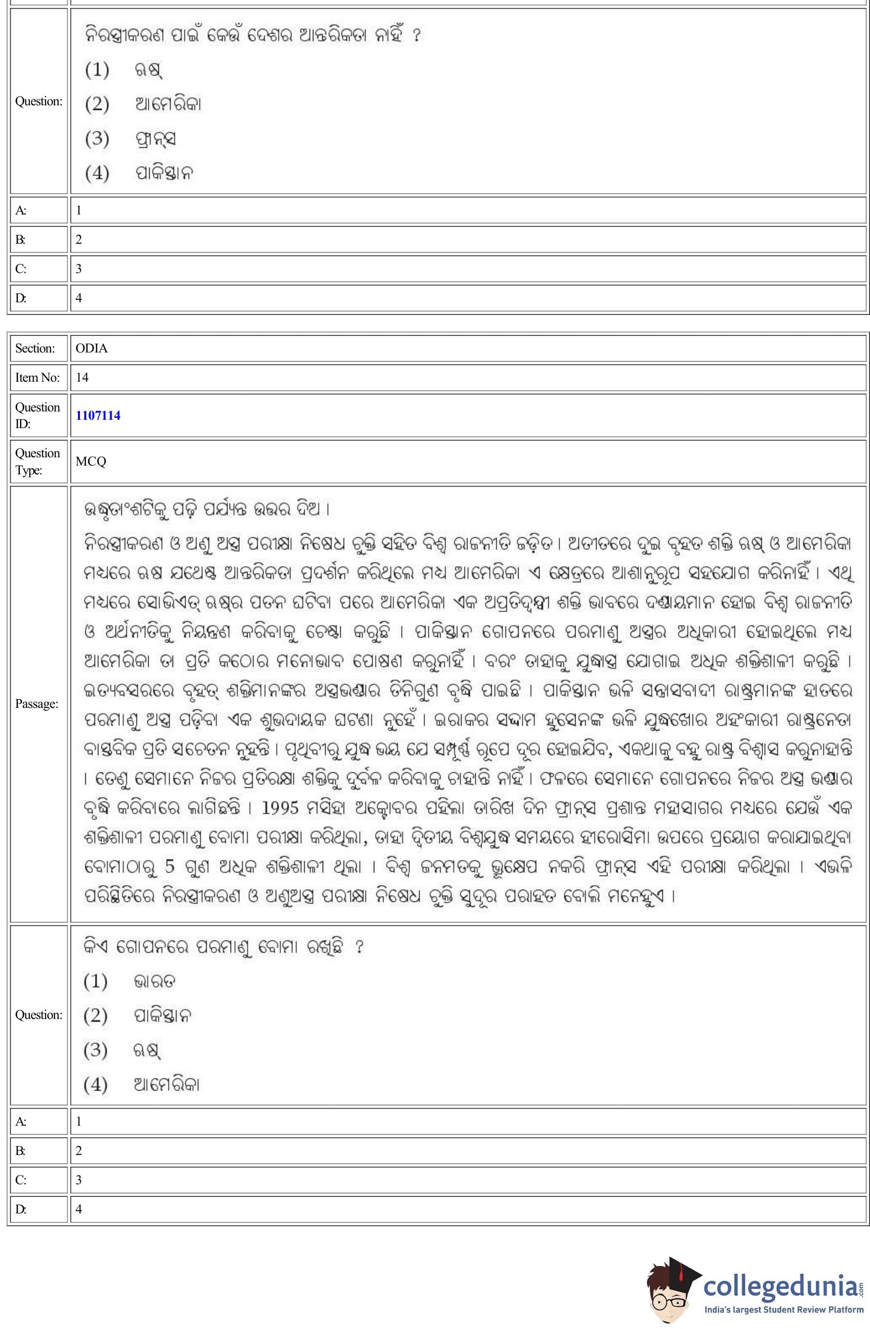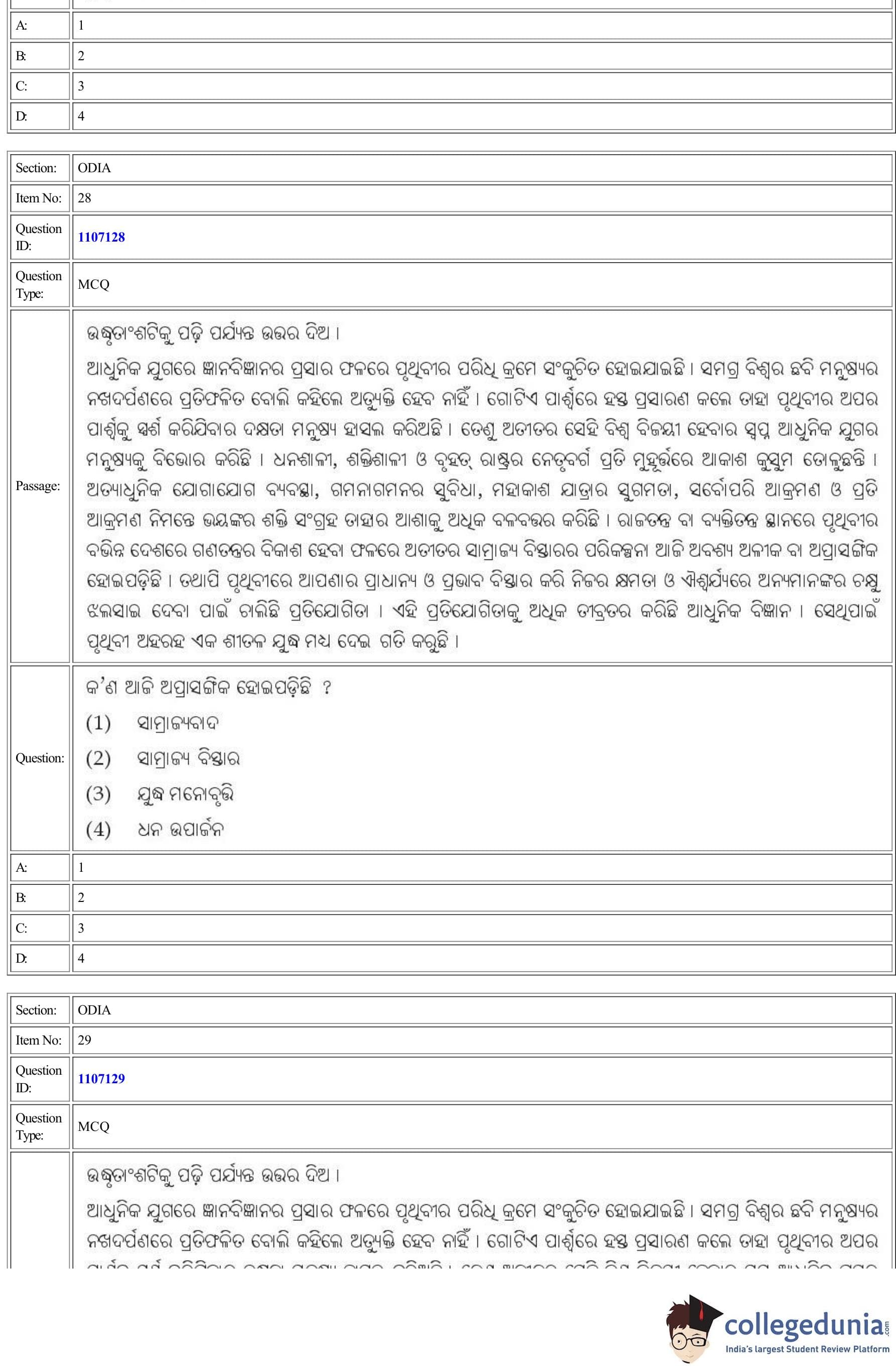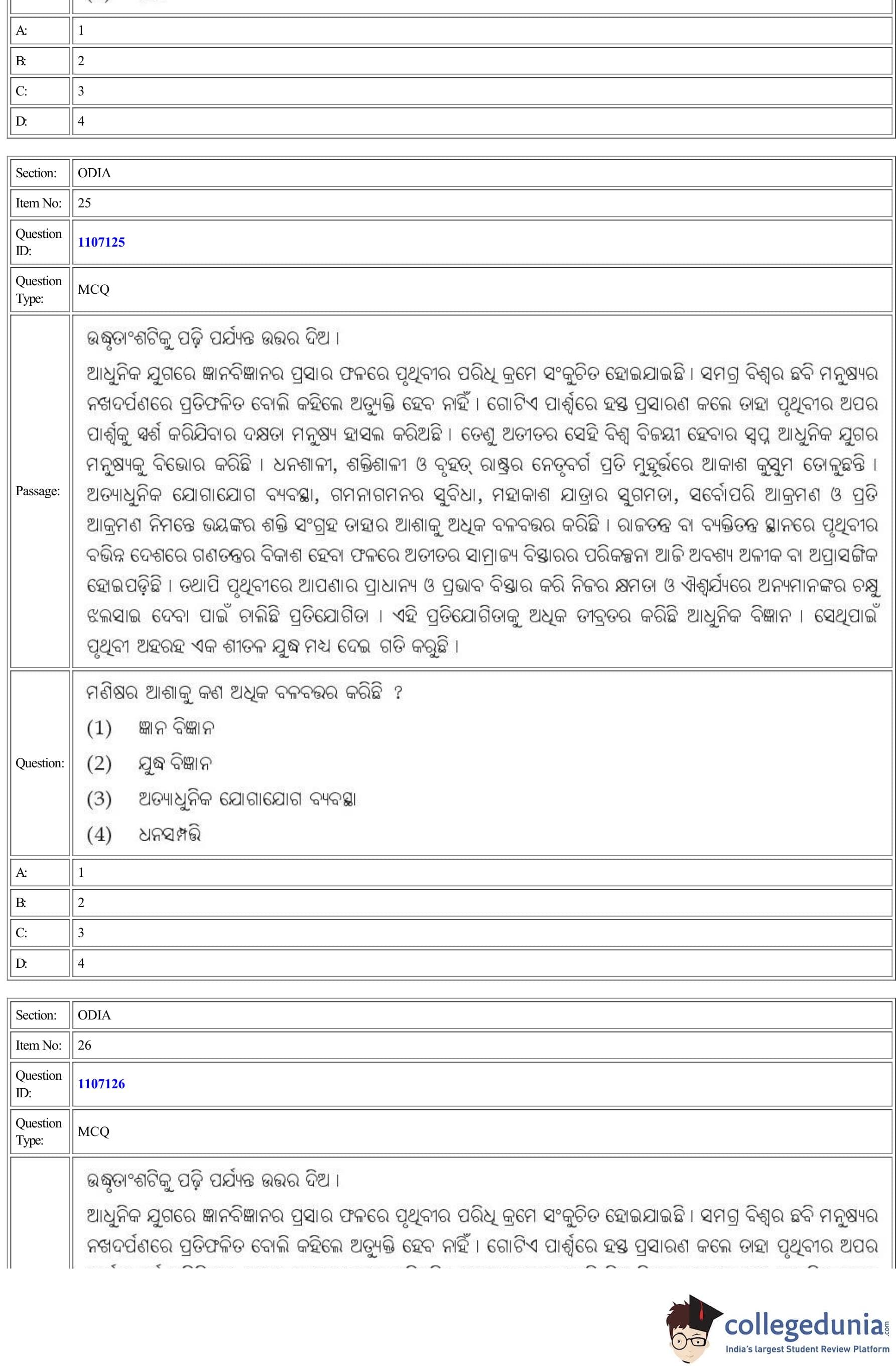 | CUET Odia Question Paper PDF | CUET Odia Answer Key PDF |