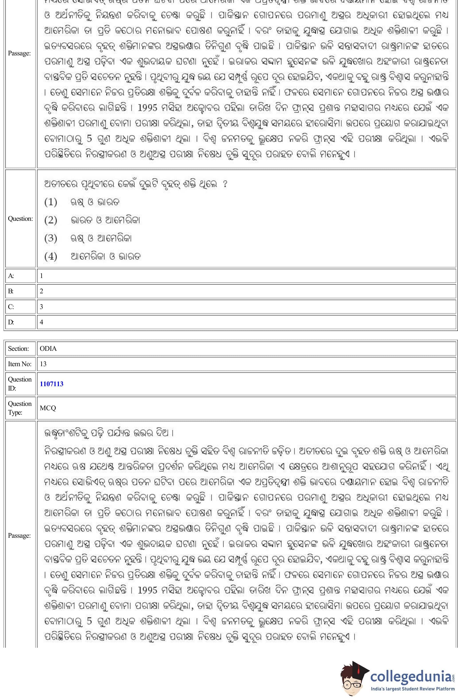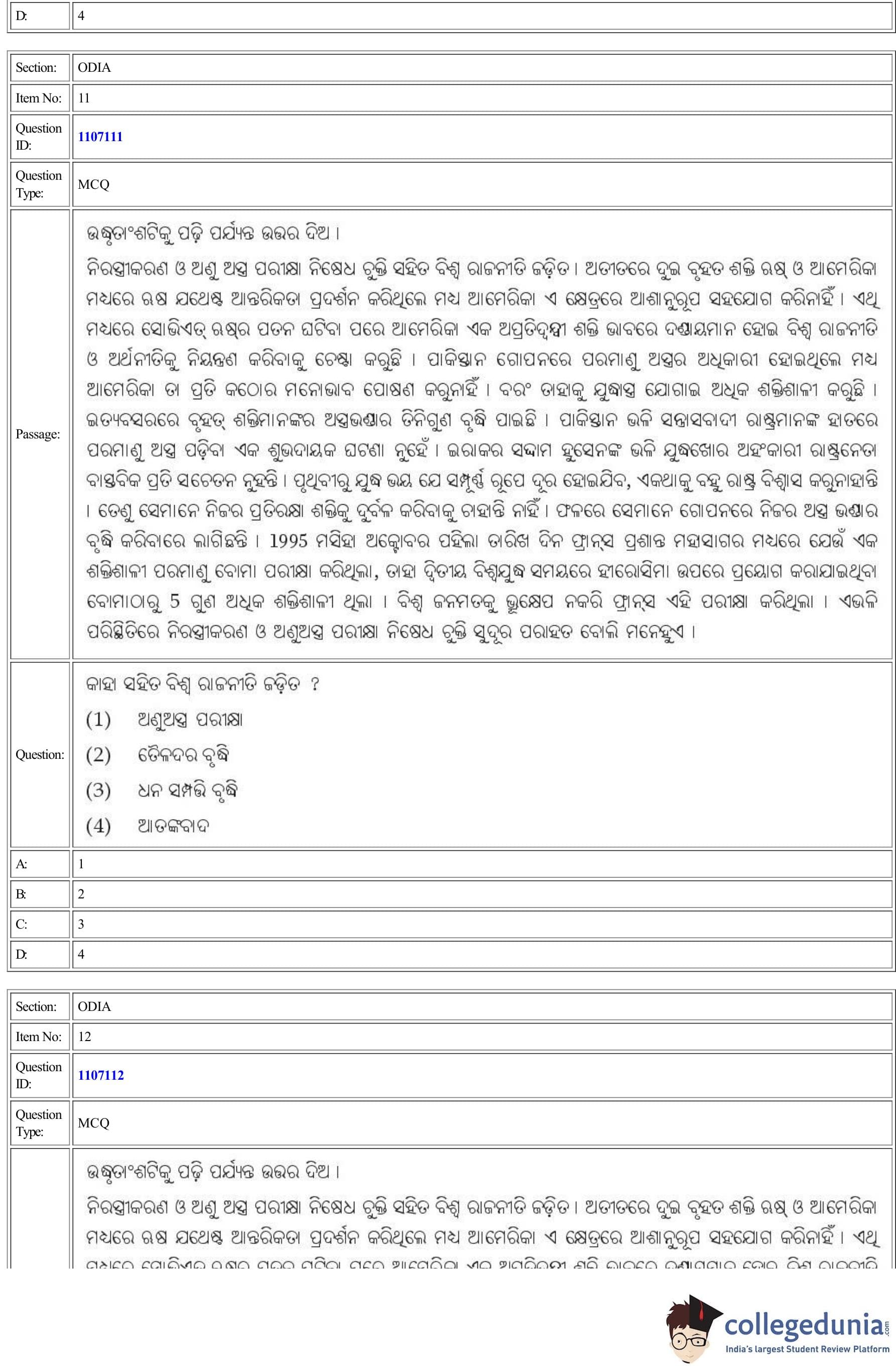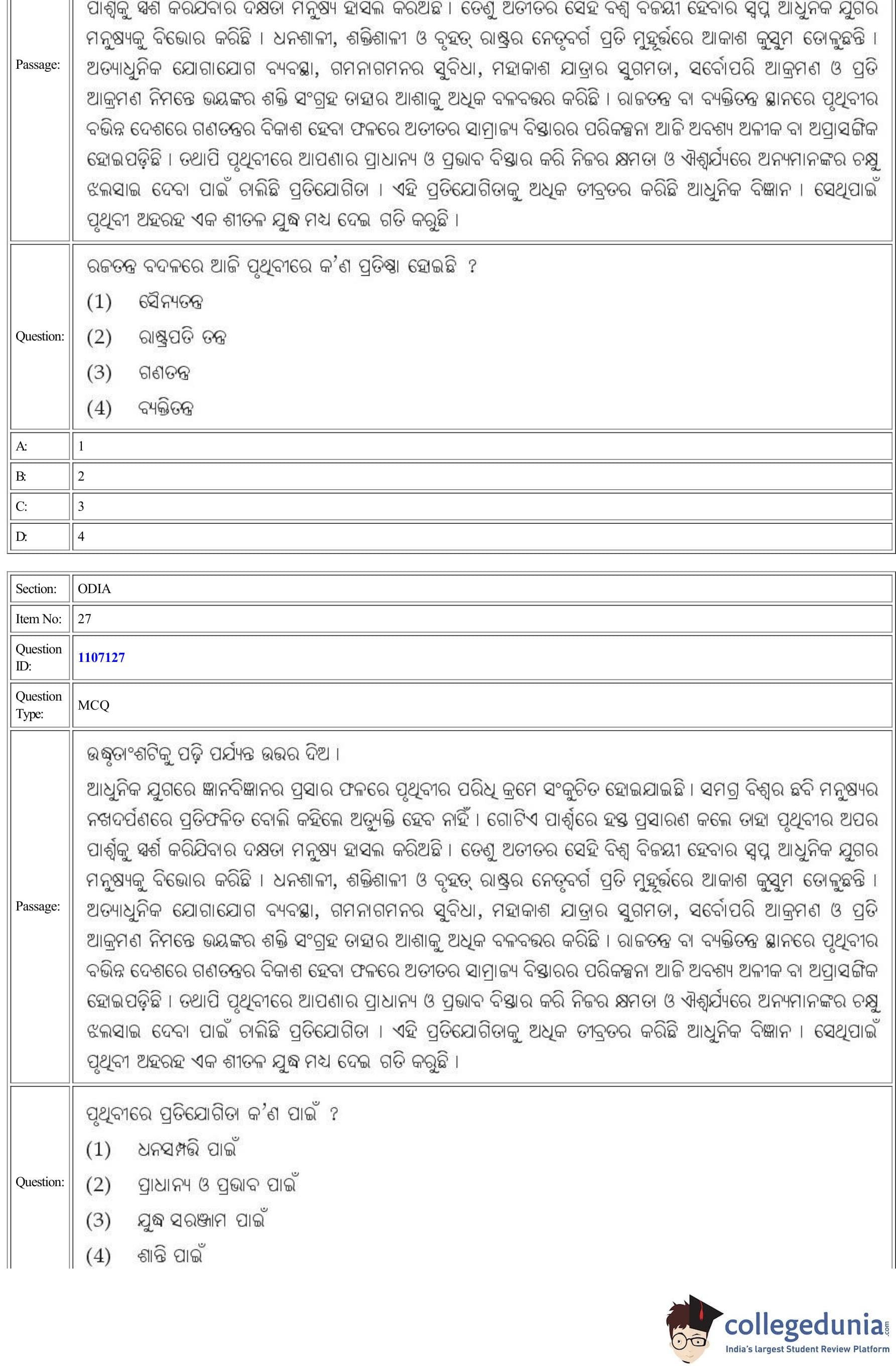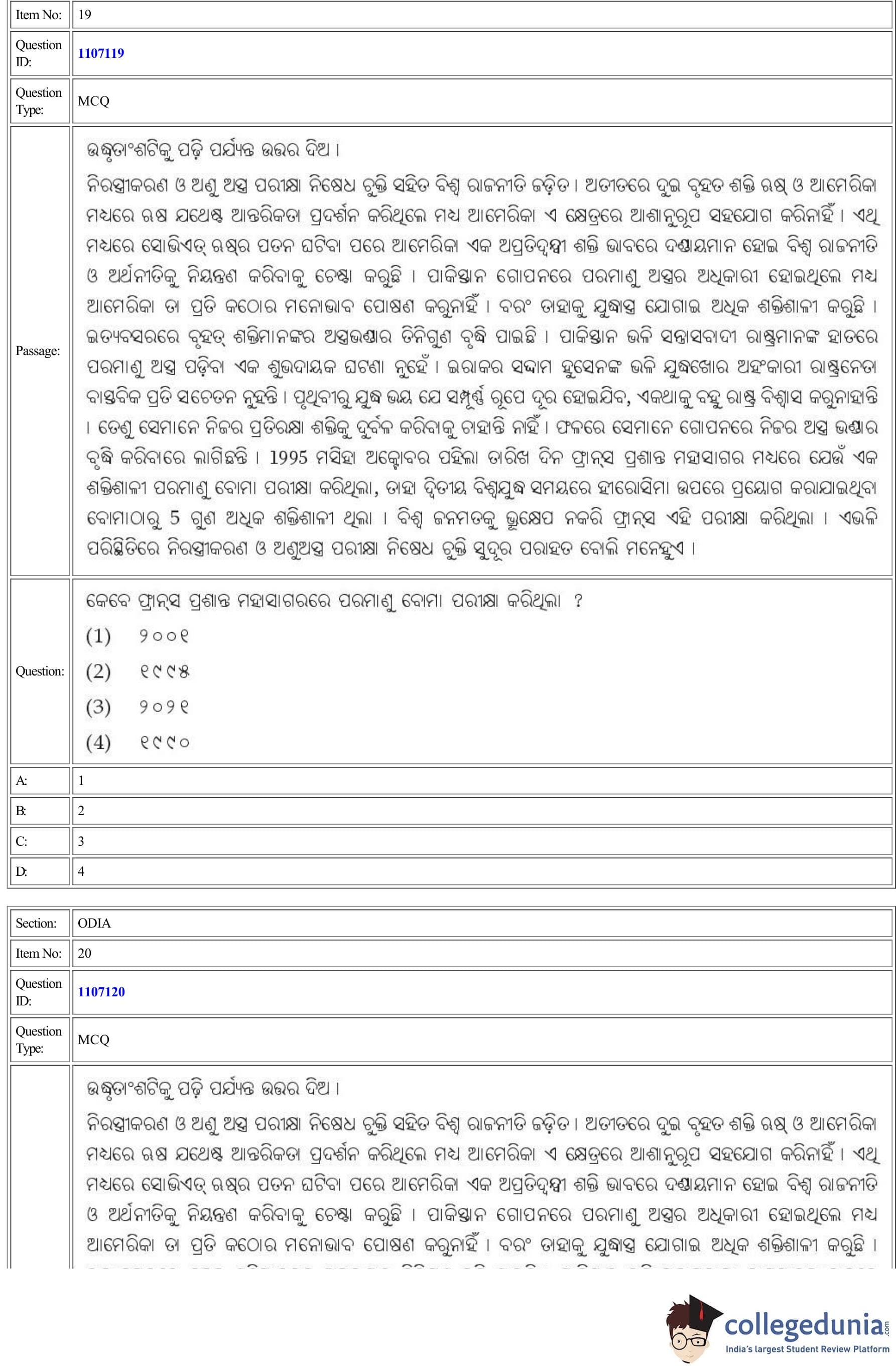 | CUET Odia Question Paper PDF | CUET Odia Answer Key PDF |