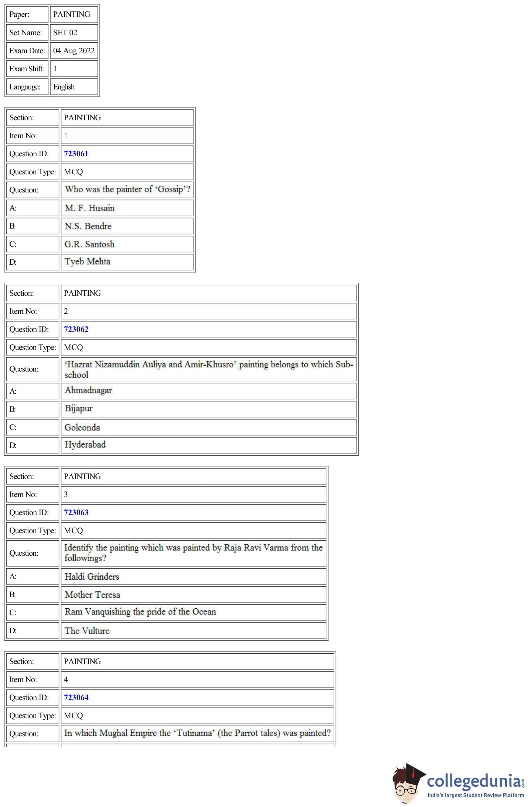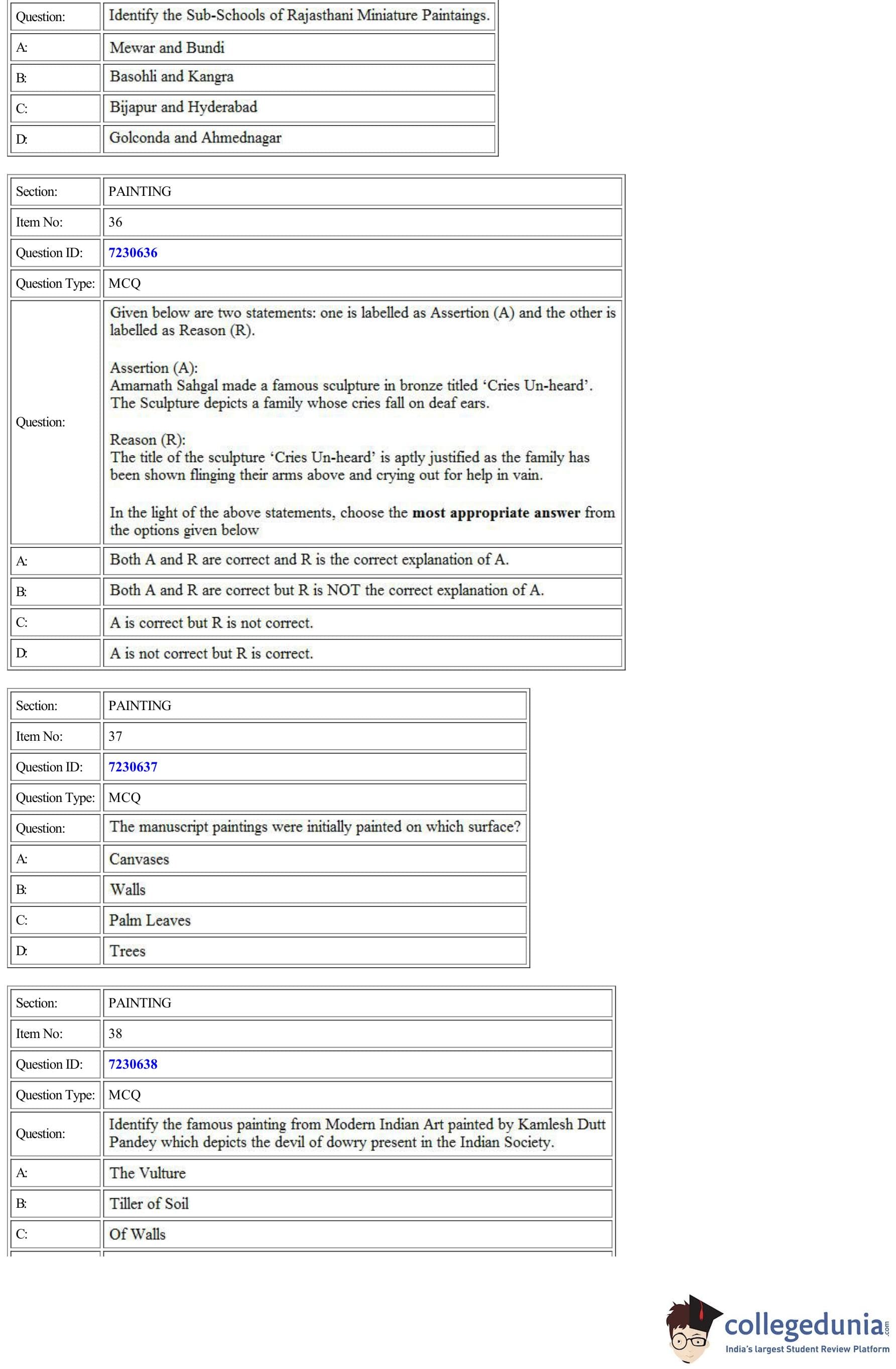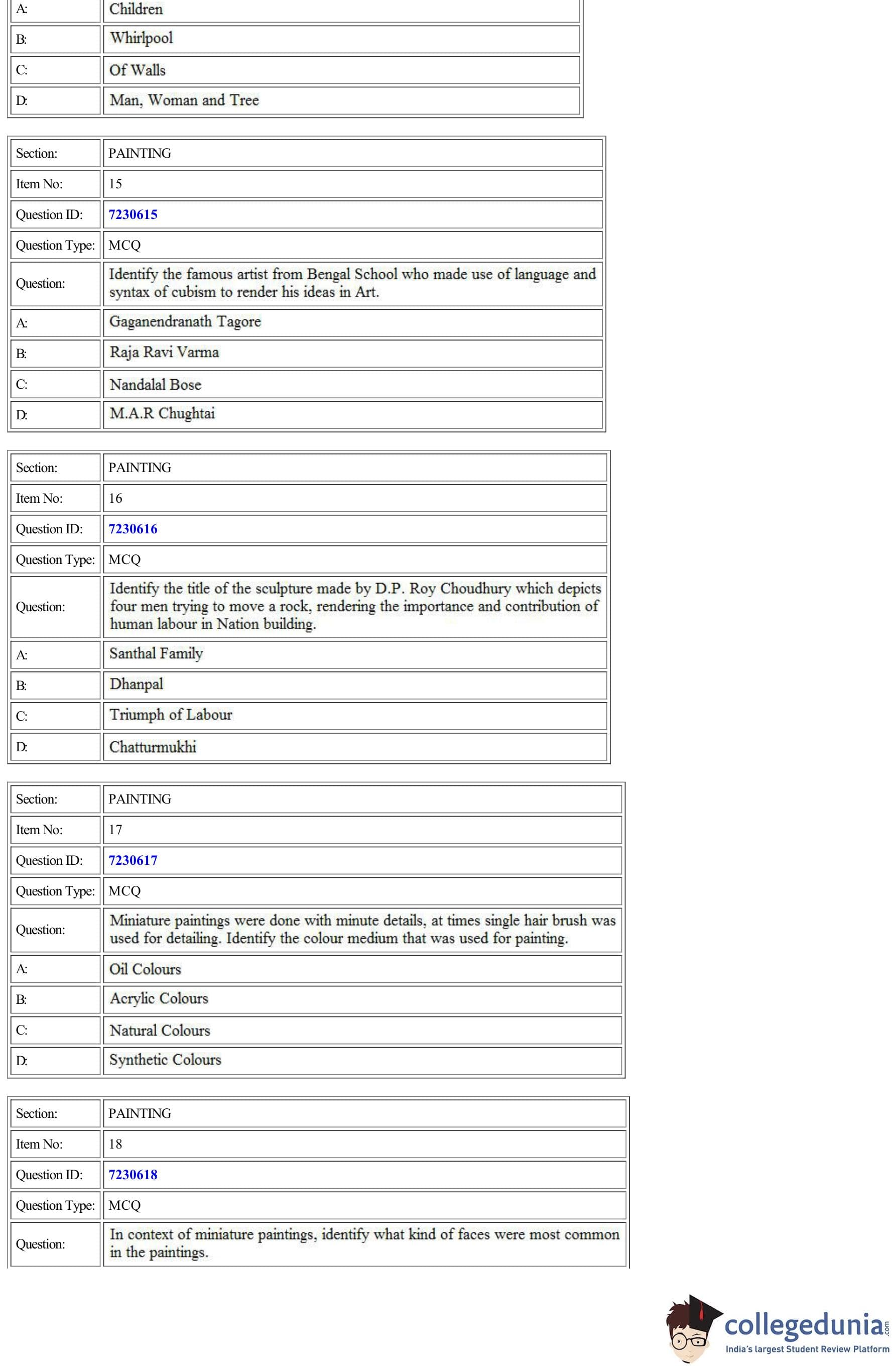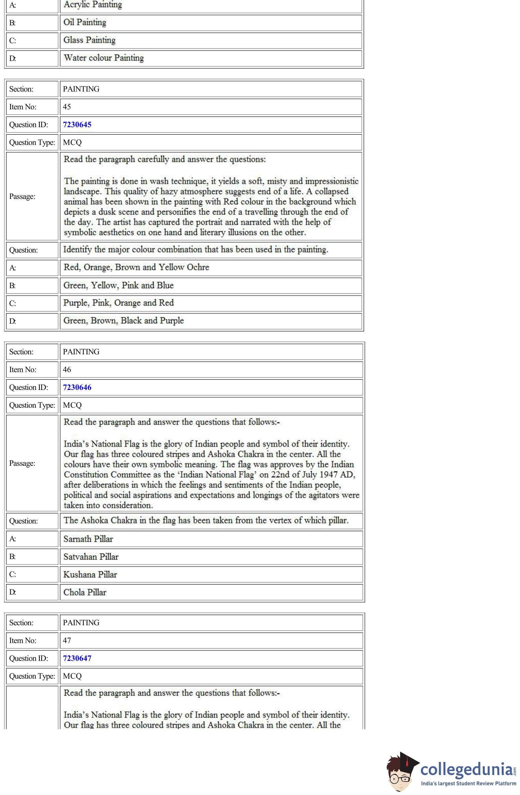 | CUET Painting Question Paper PDF | CUET Painting Answer Key PDF |