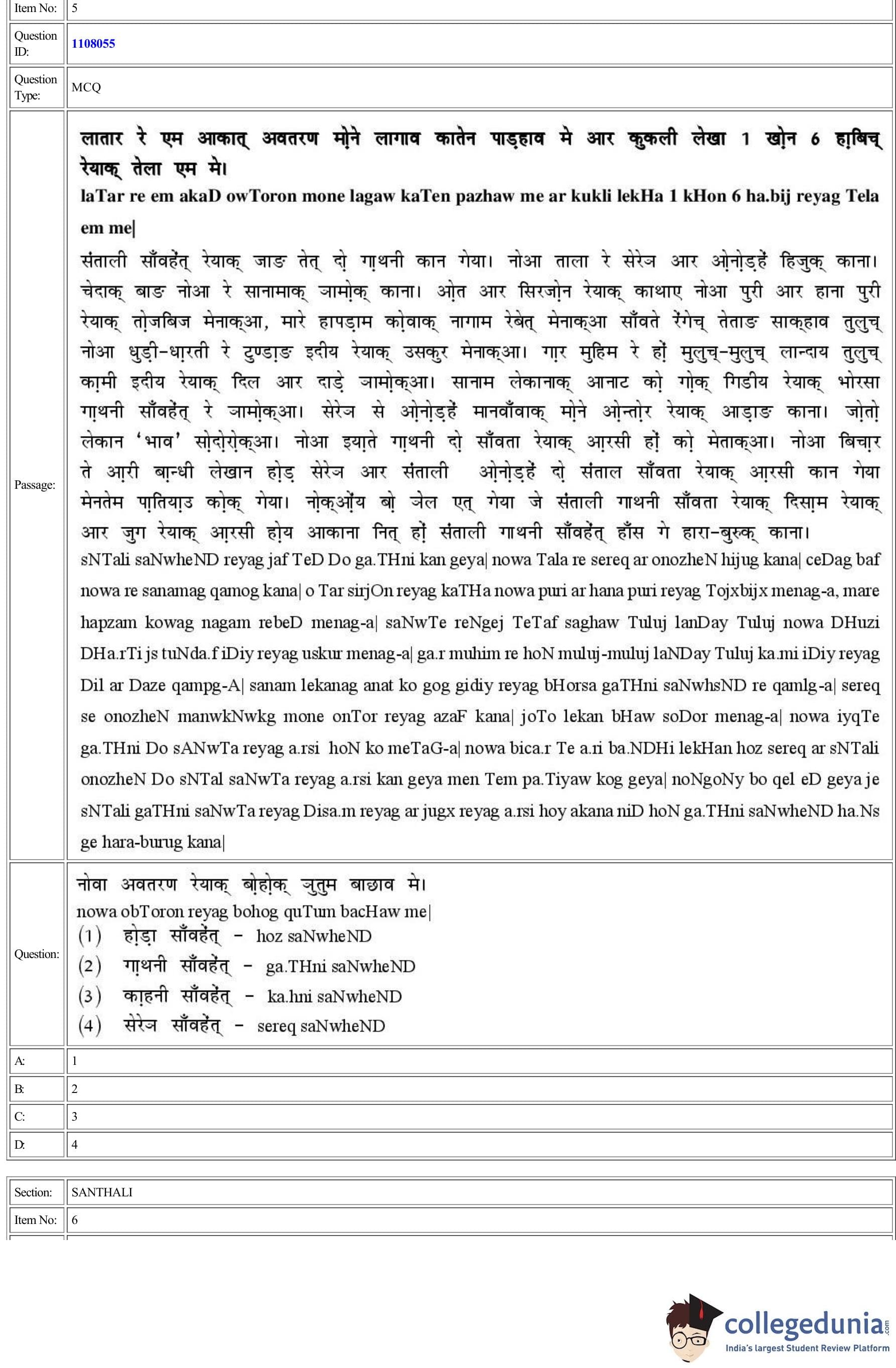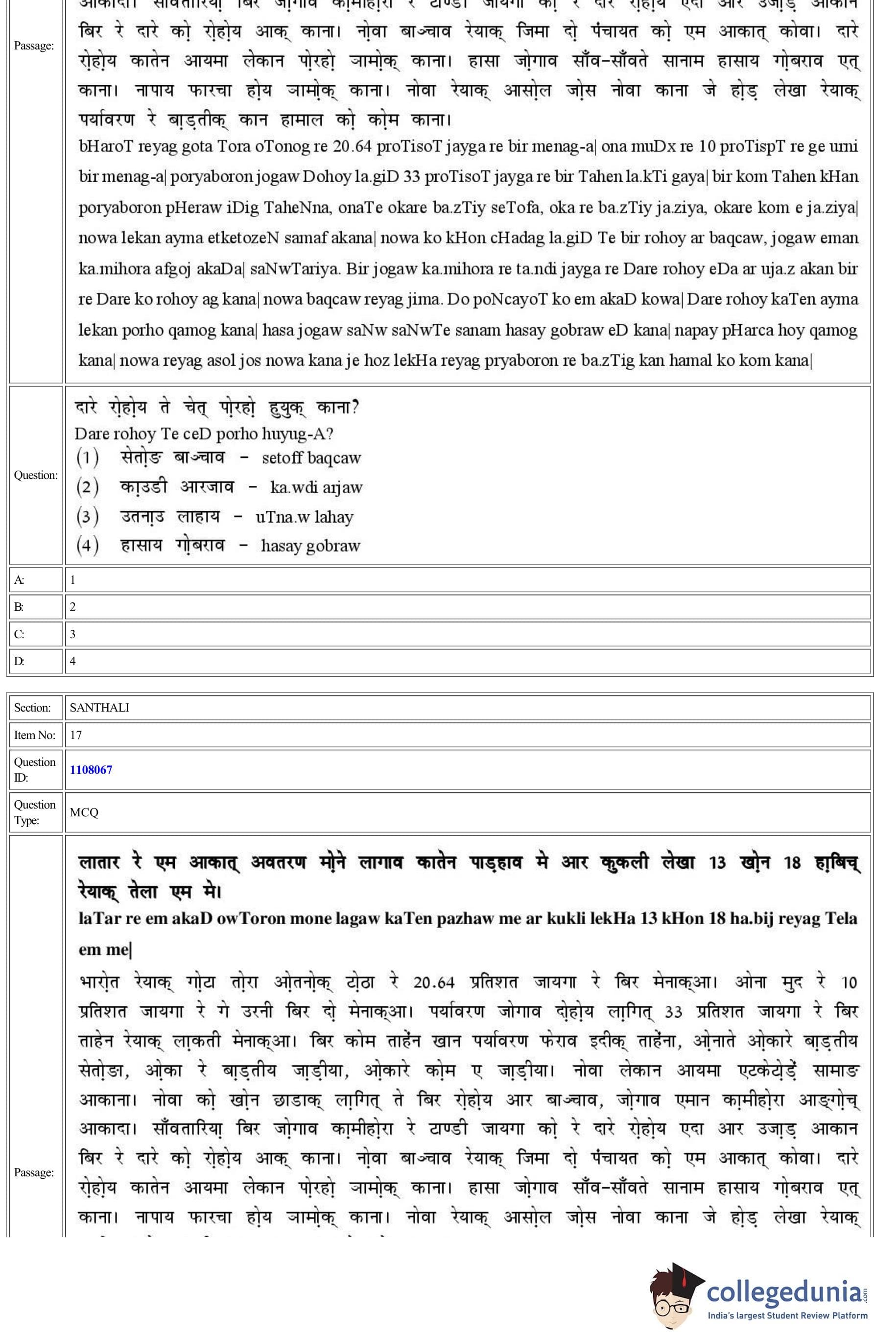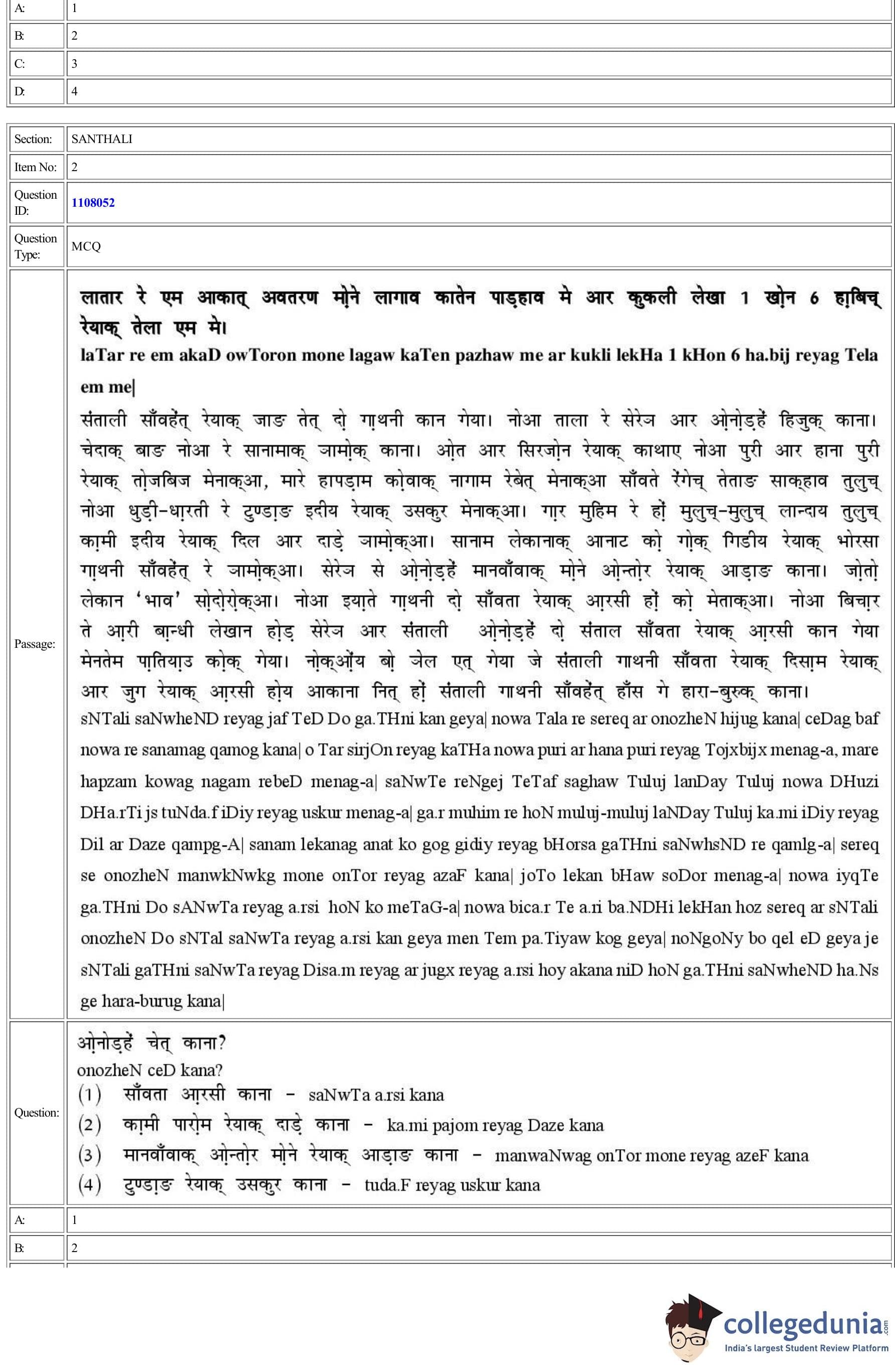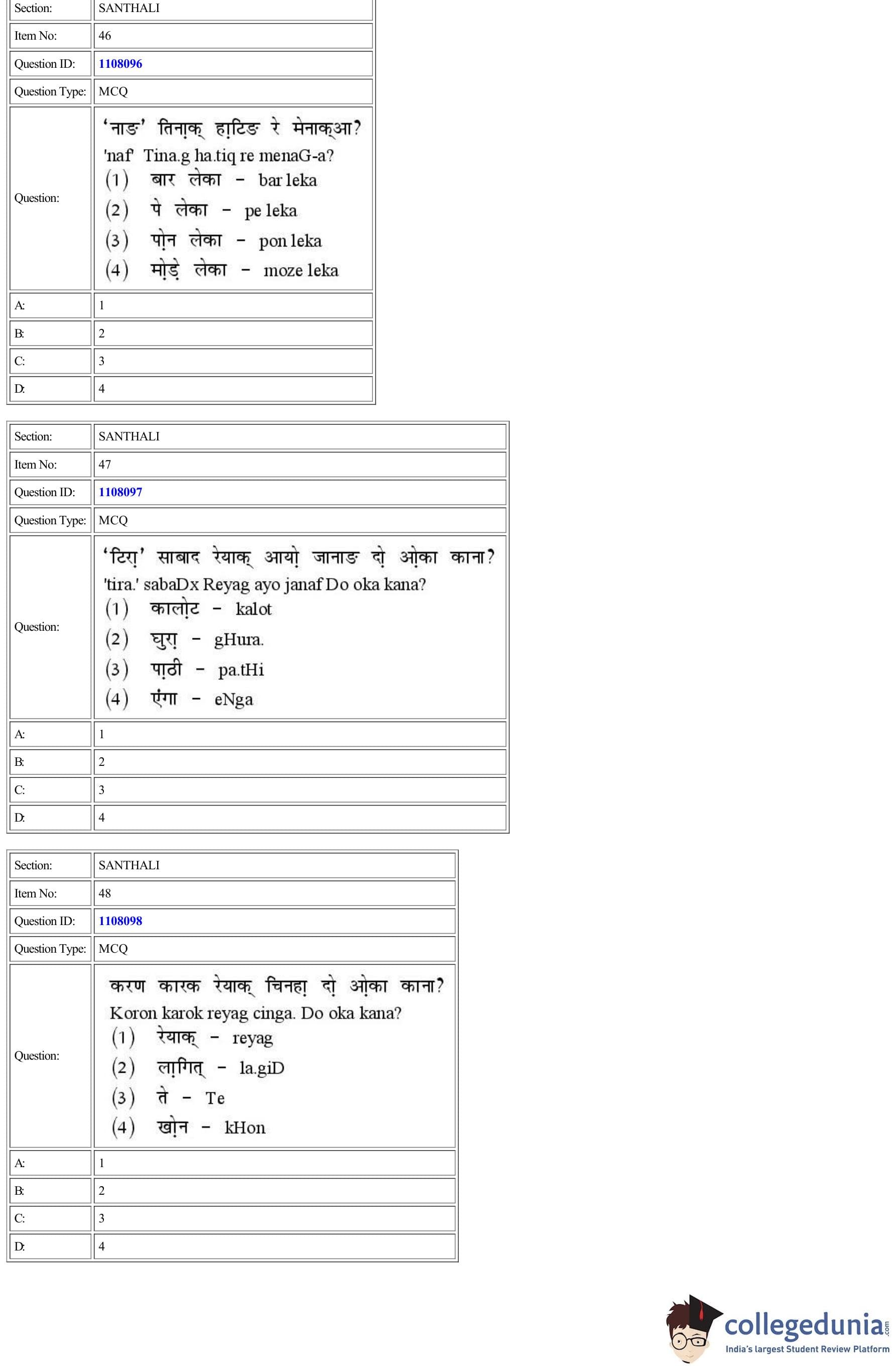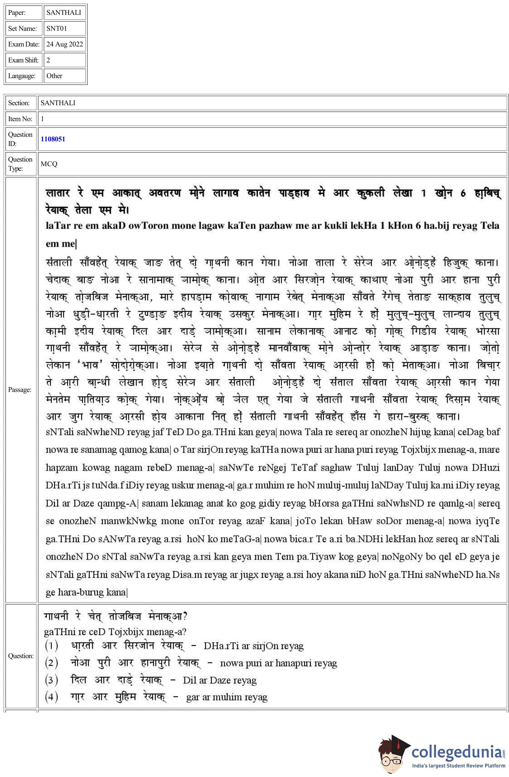 CUET 2022 Santhali Question Paper with Answer Key PDF