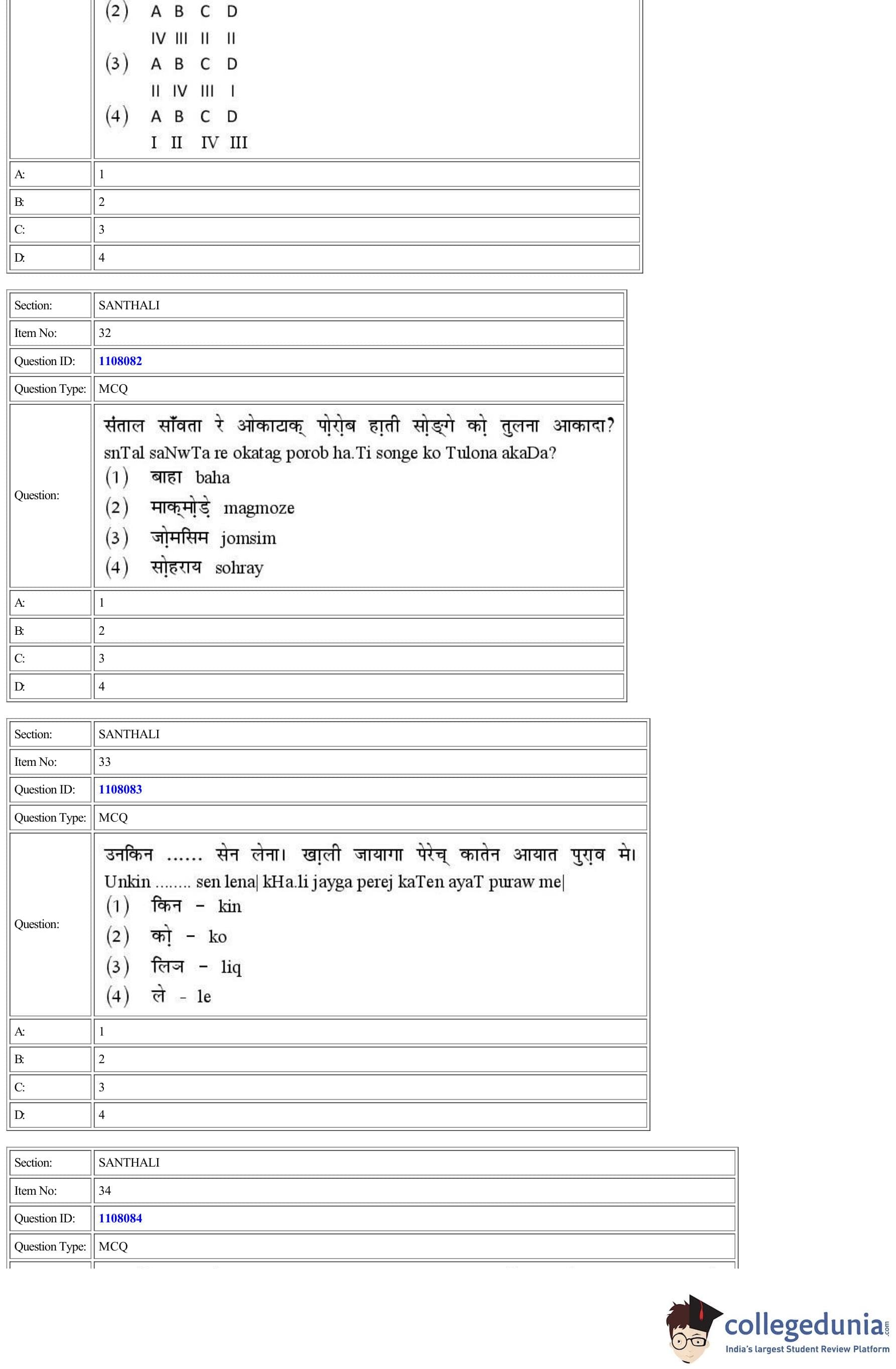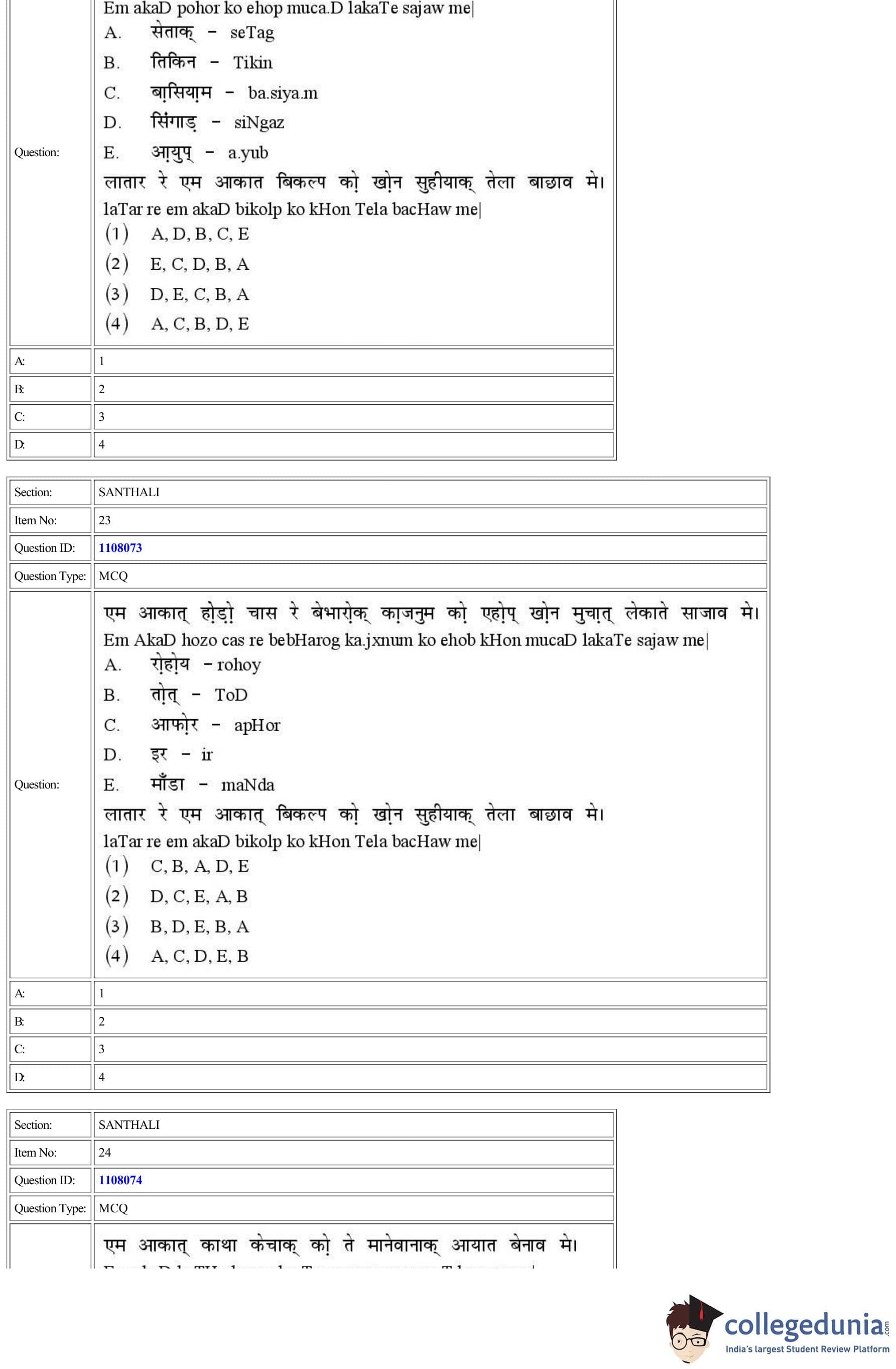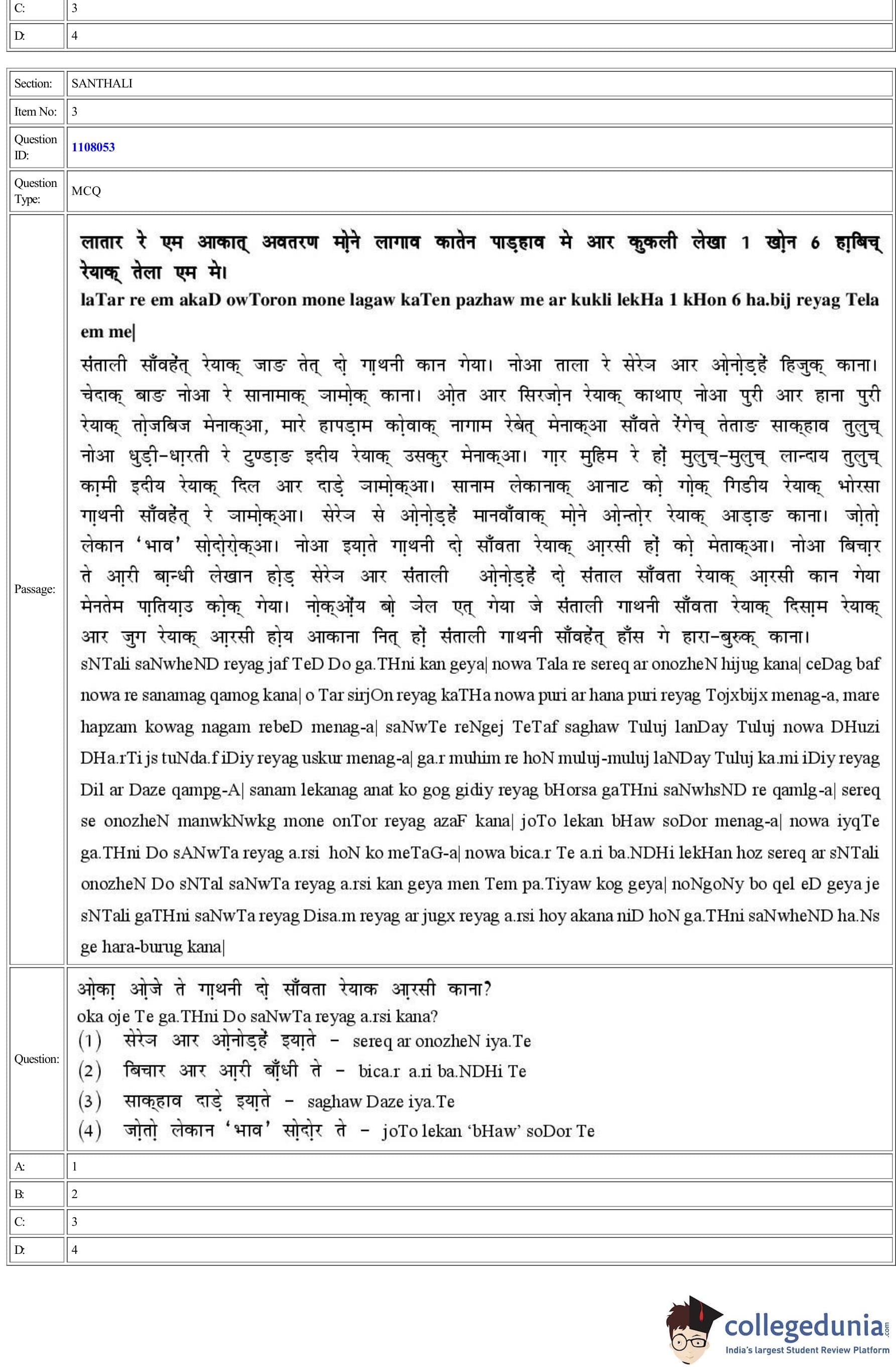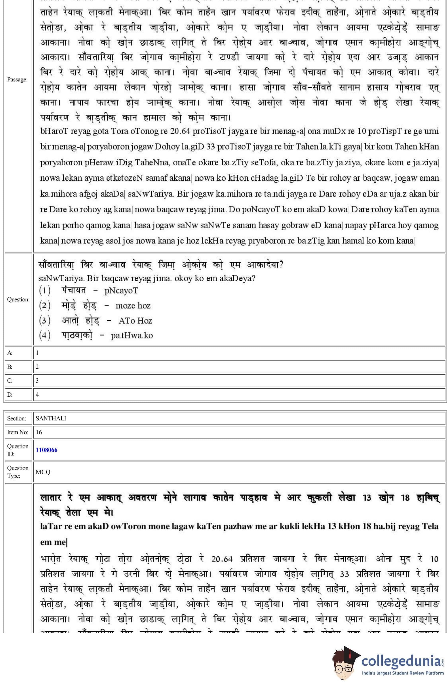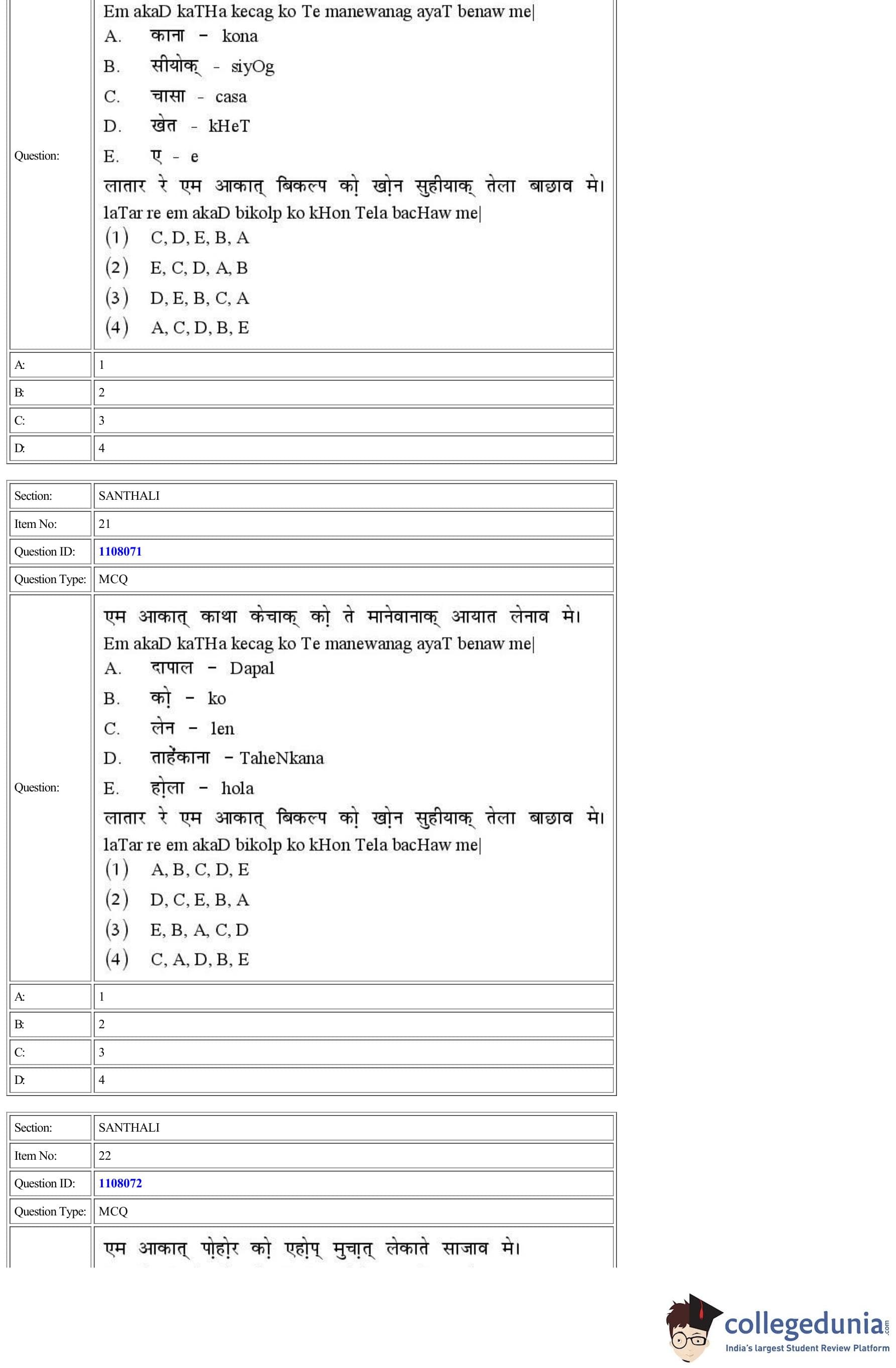 CUET 2022 Santhali Question Paper with Answer Key PDF