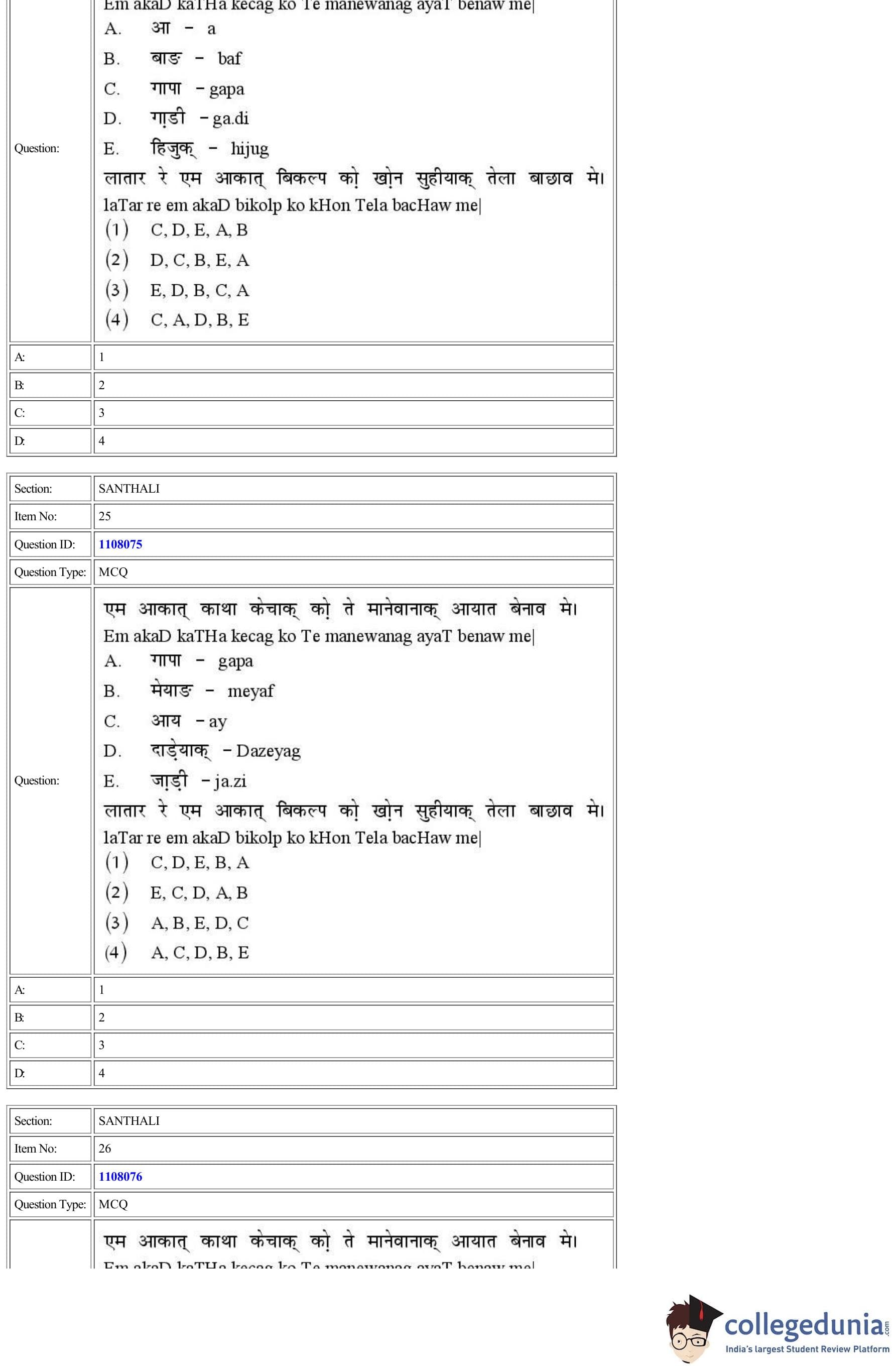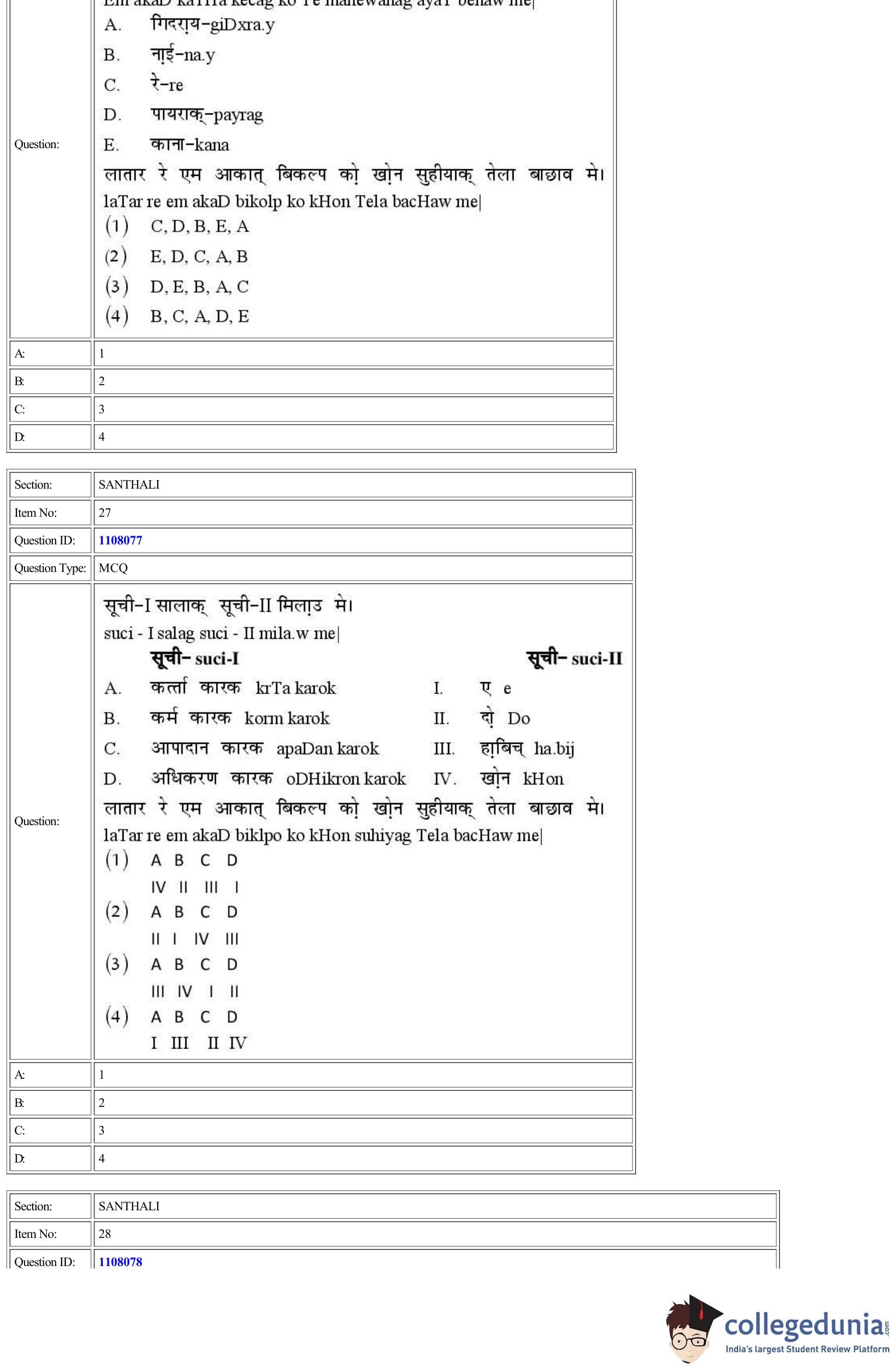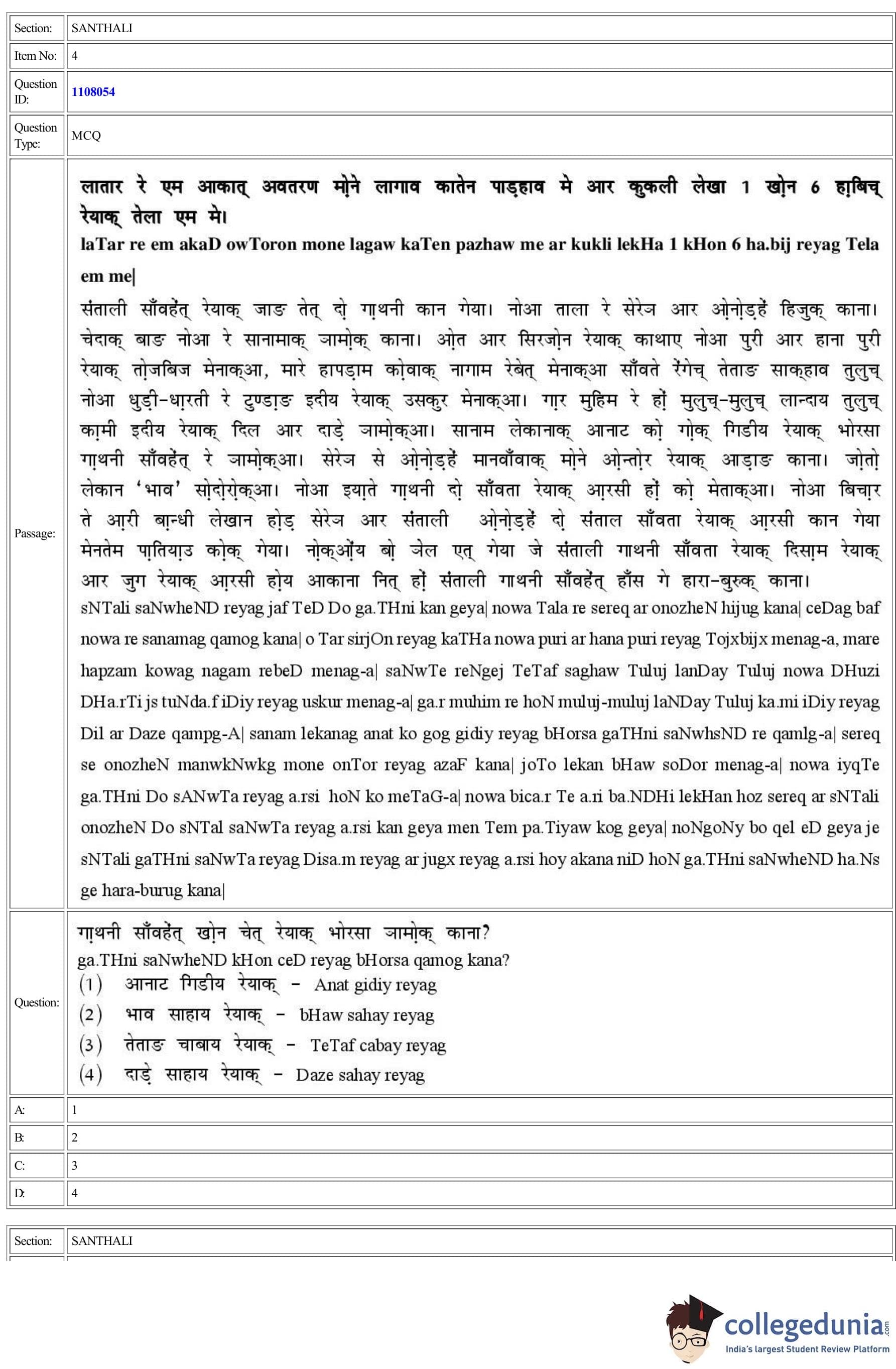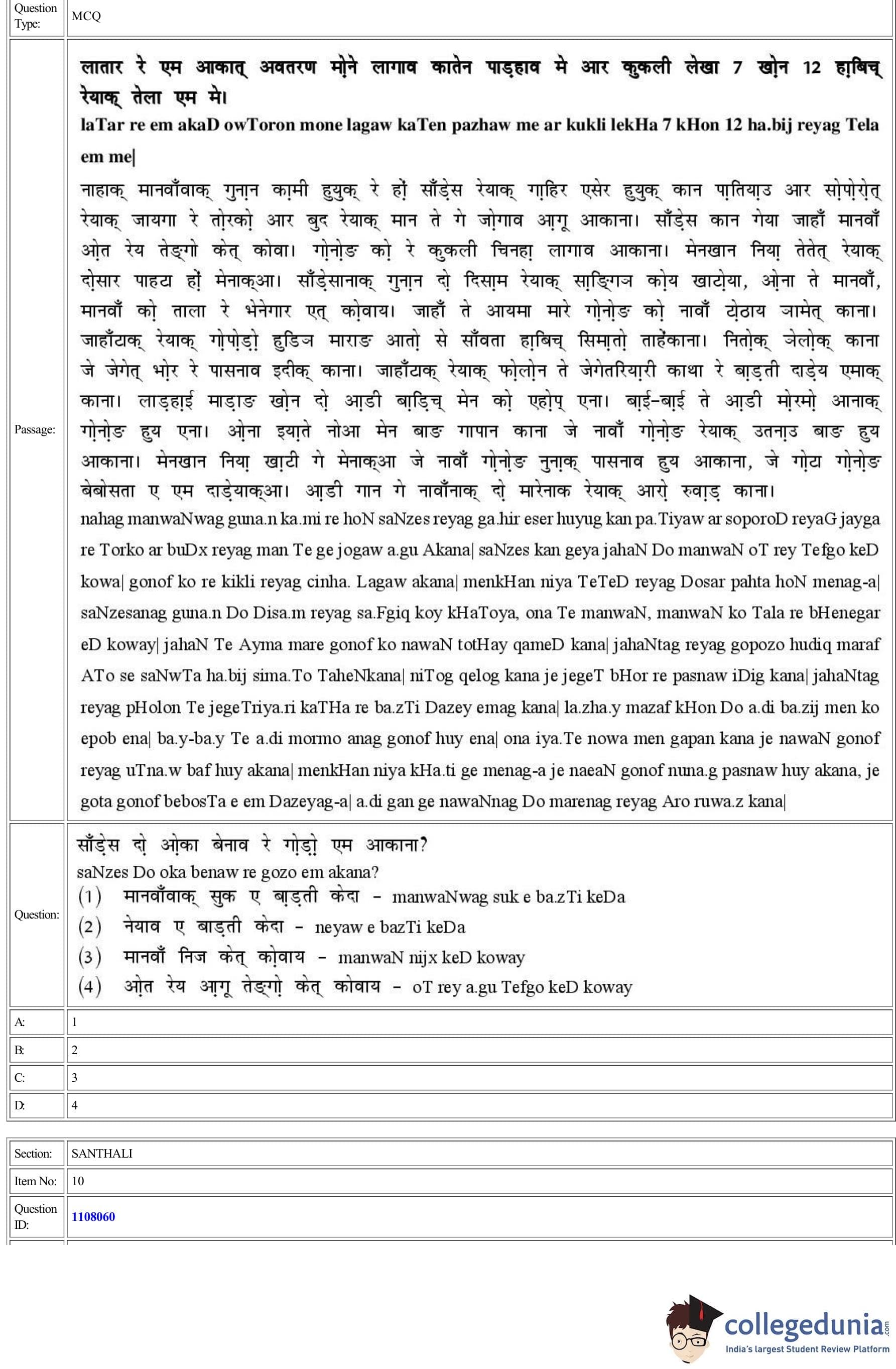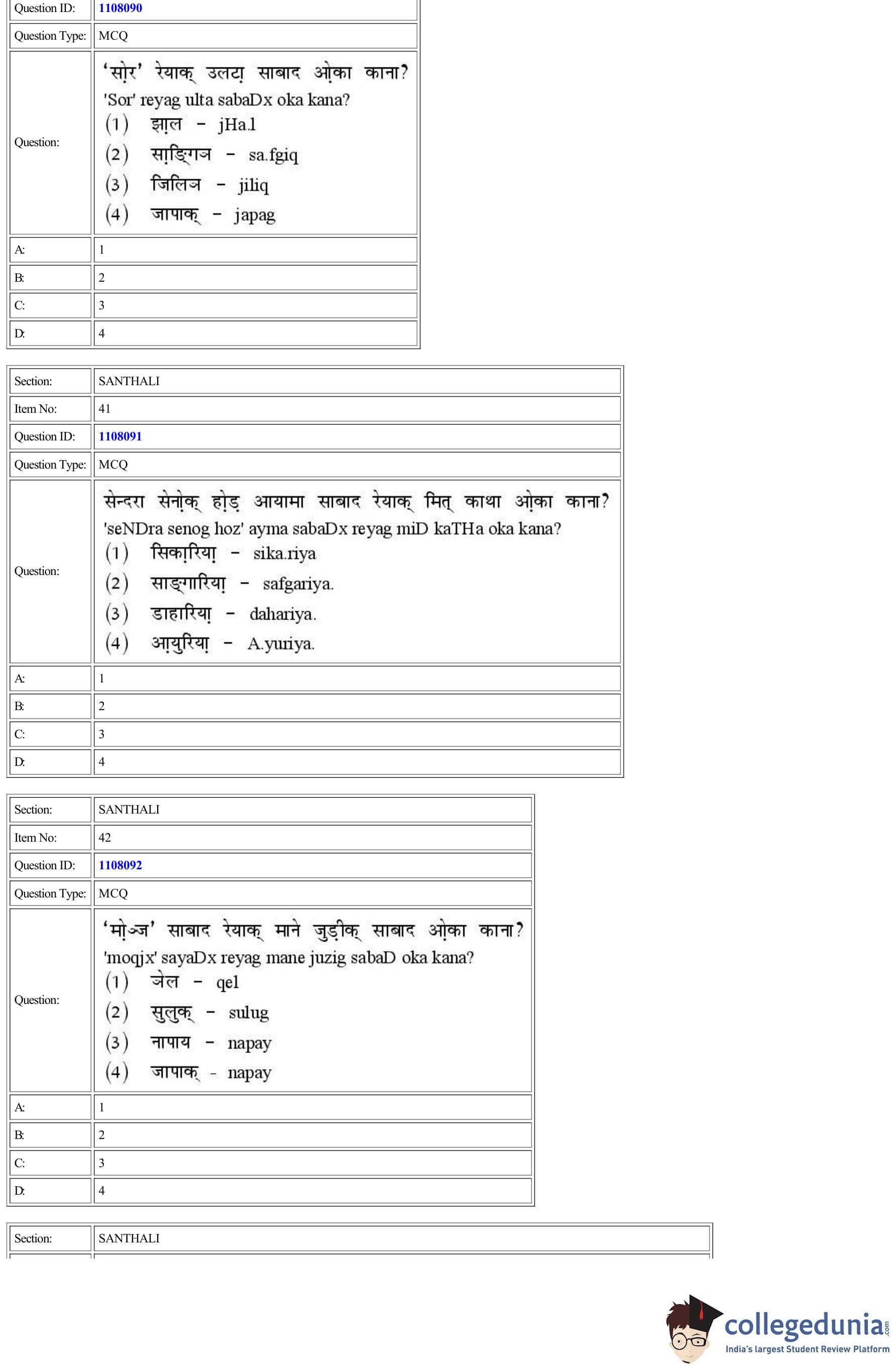 CUET 2022 Santhali Question Paper with Answer Key PDF