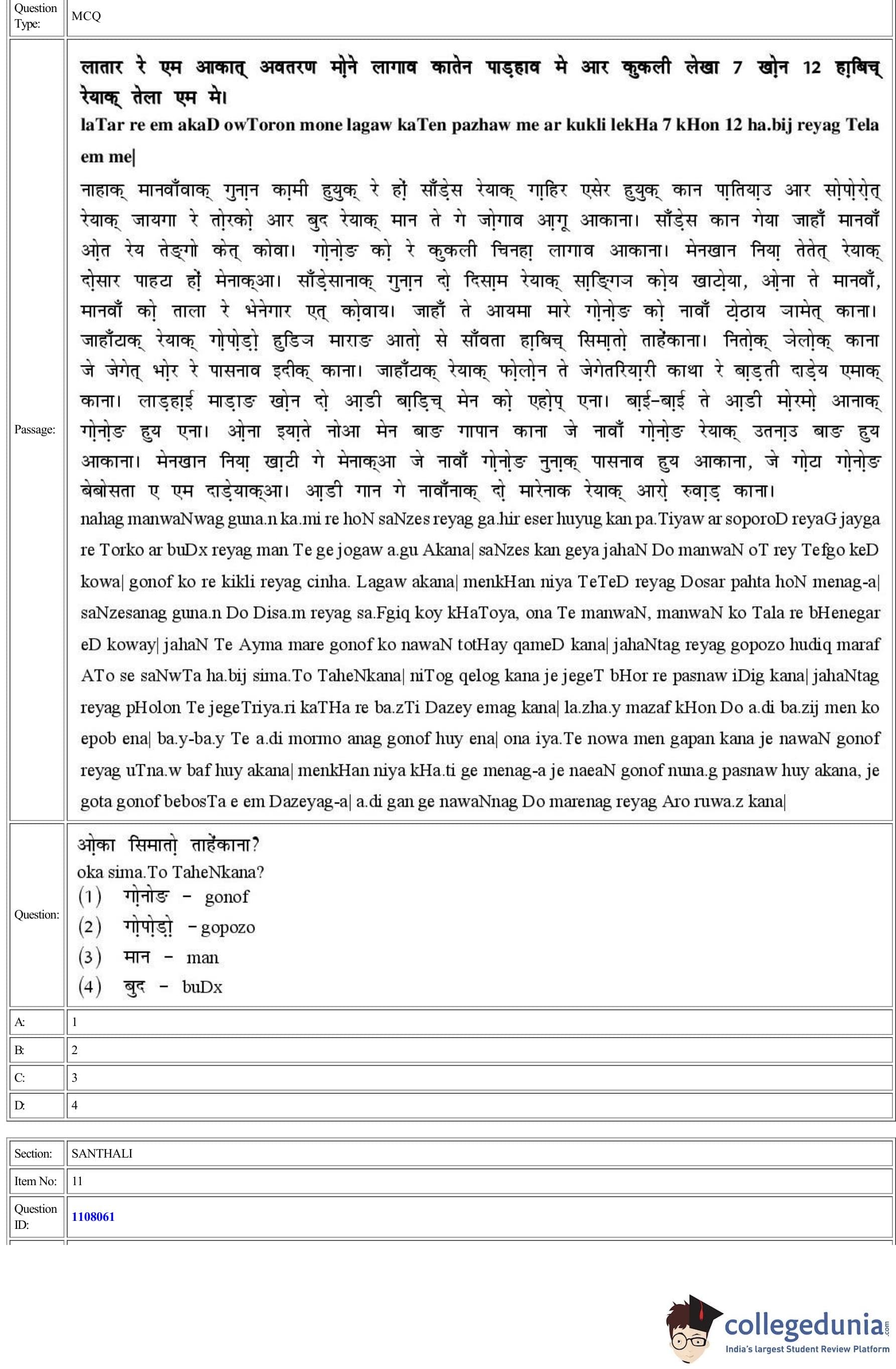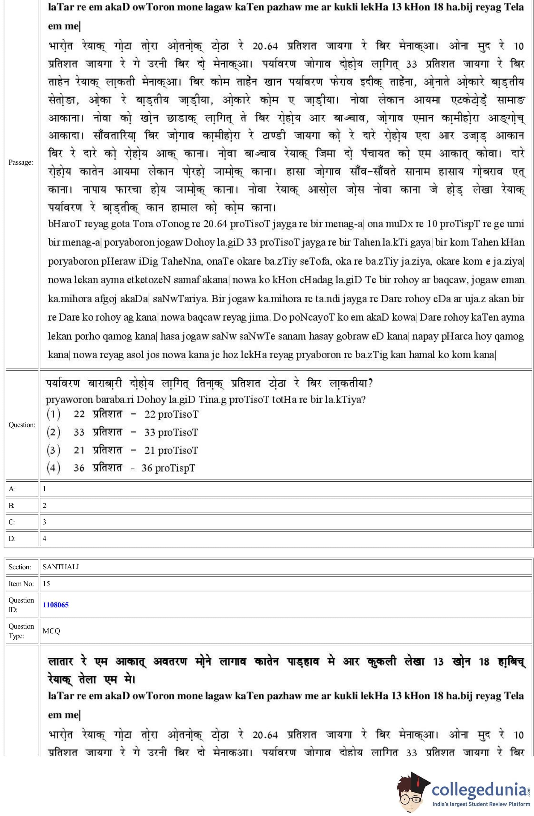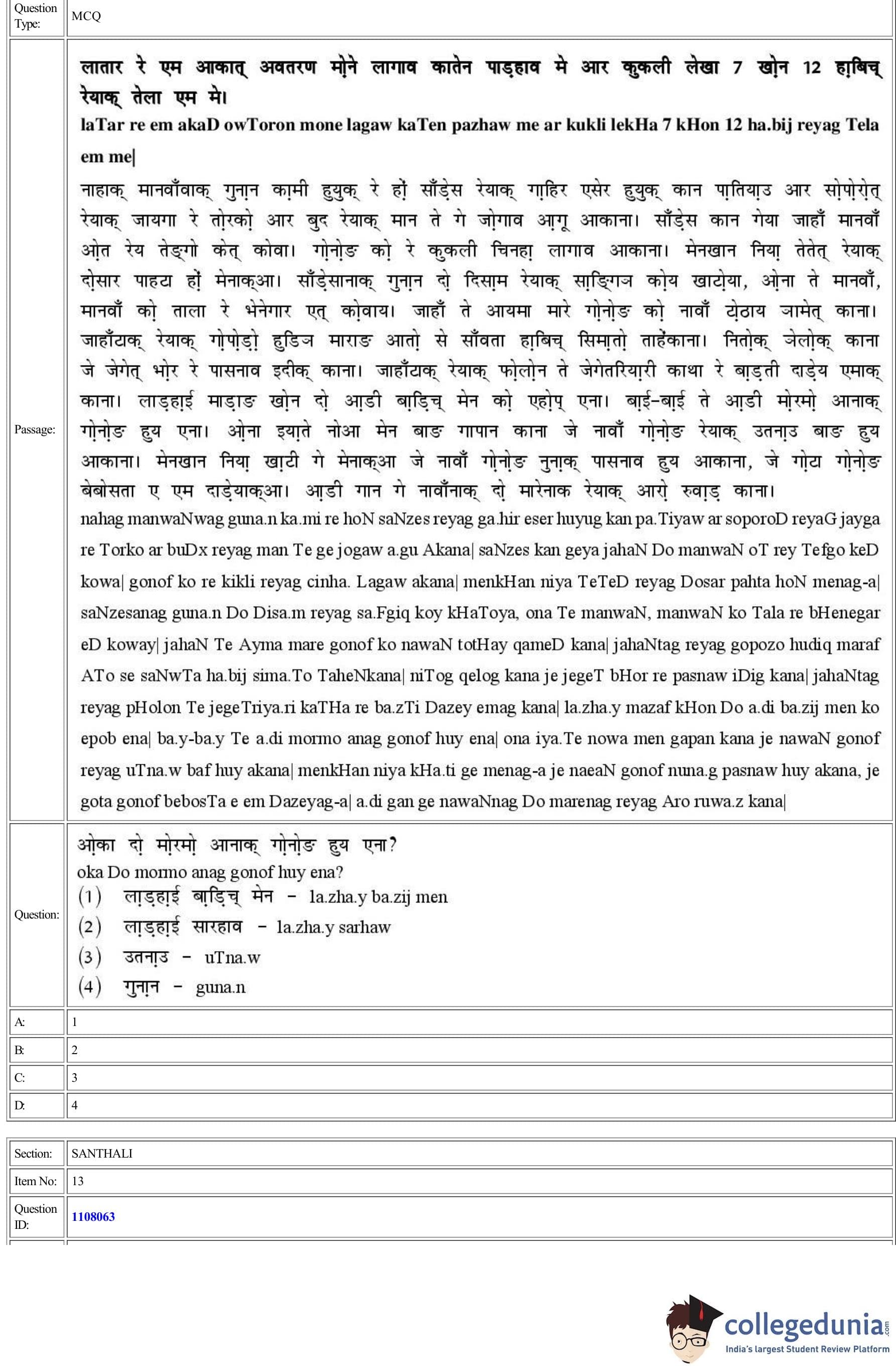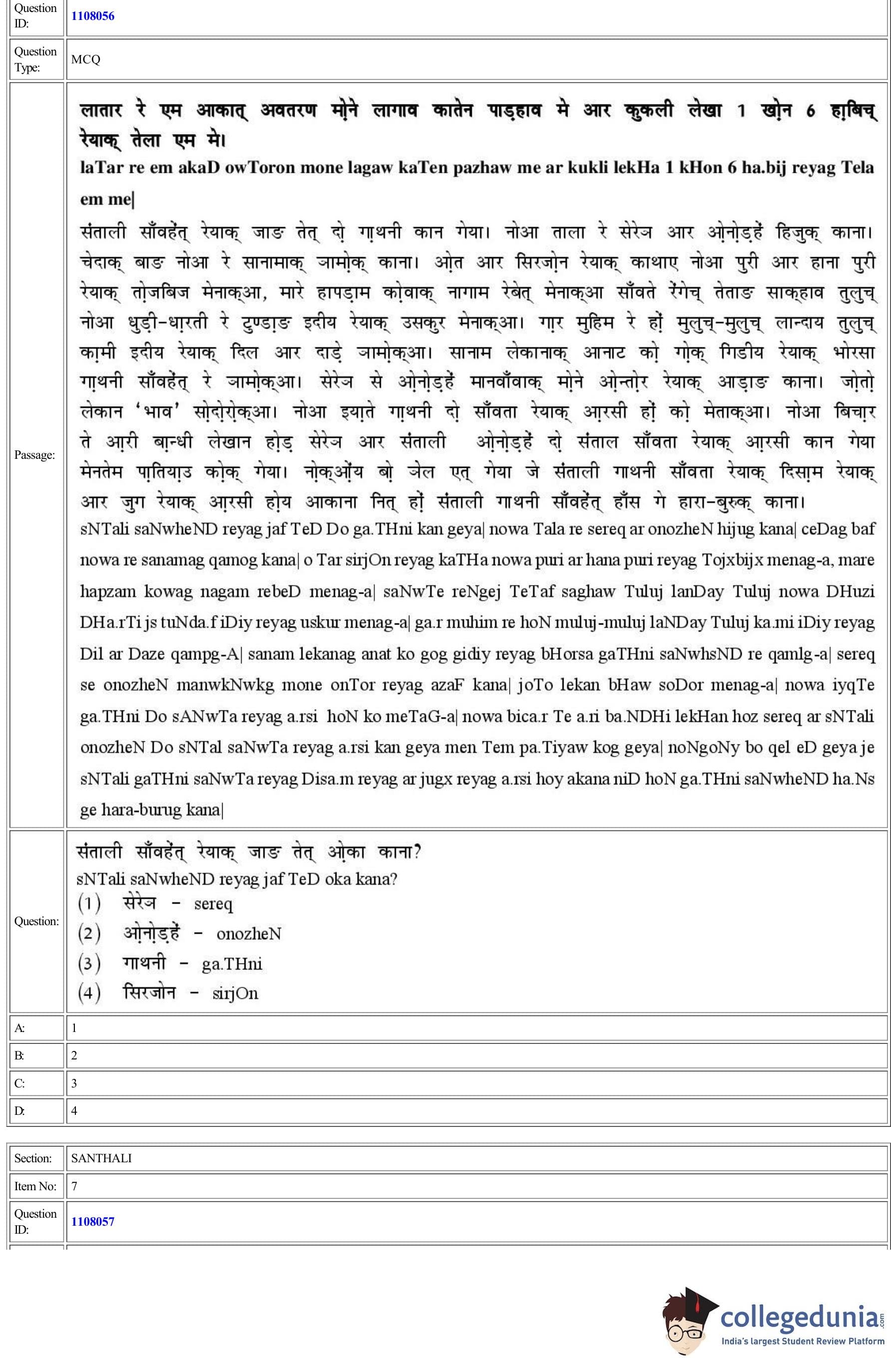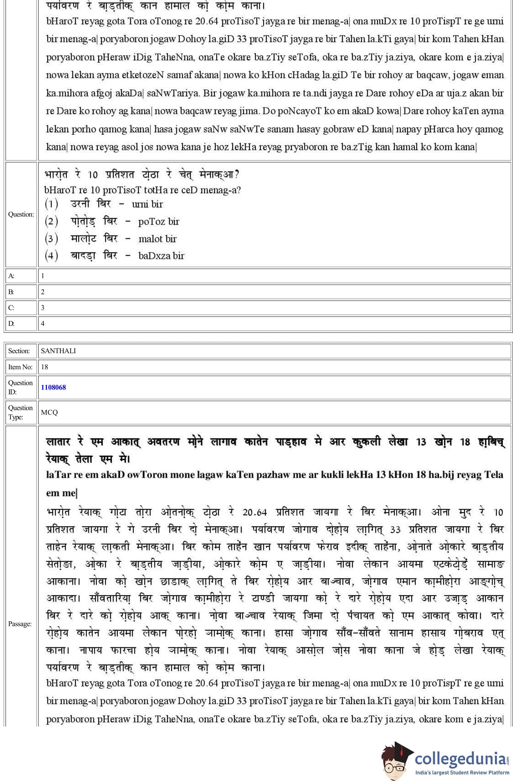 CUET 2022 Santhali Question Paper with Answer Key PDF