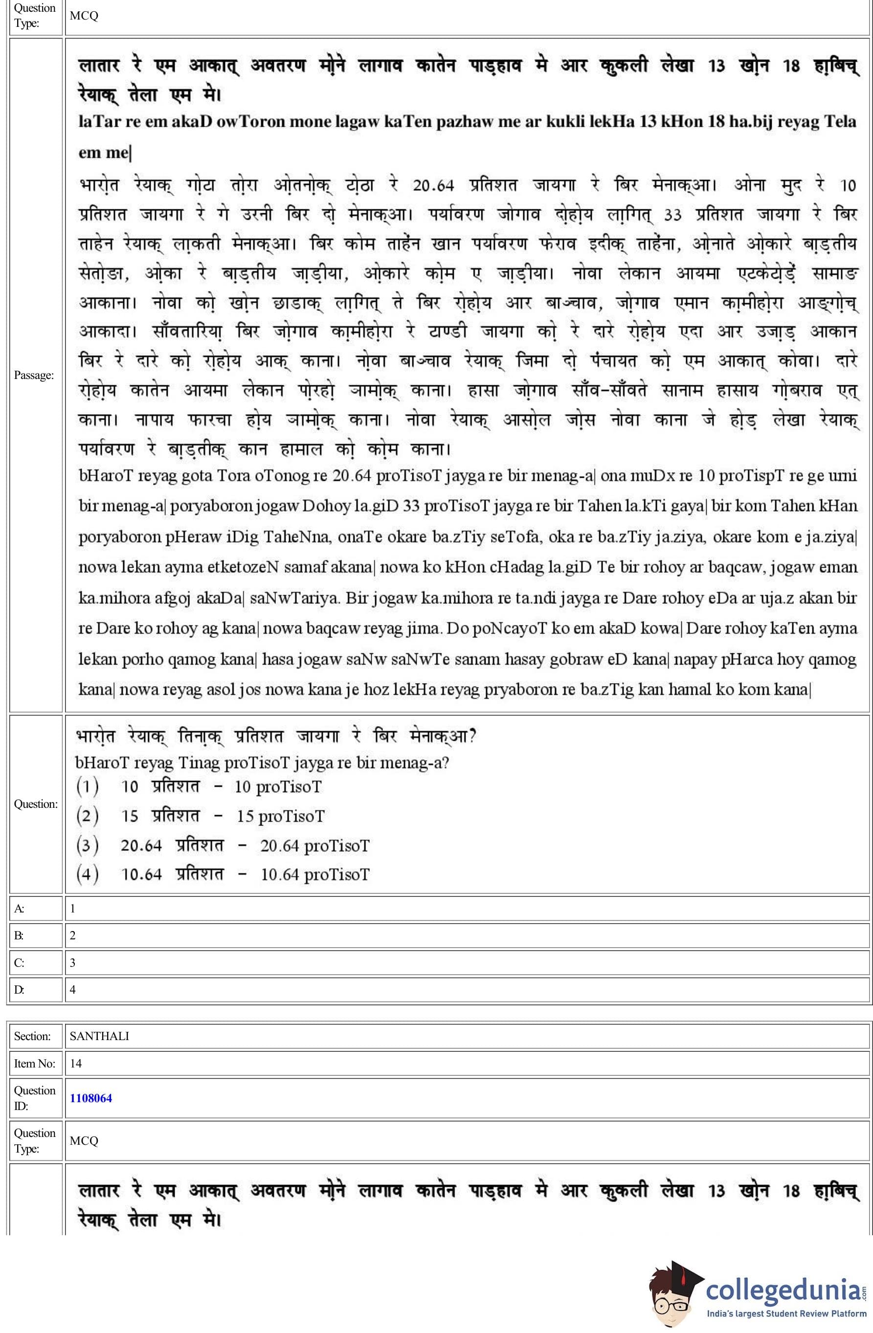 CUET Santhali Question Paper 2022 is available for download. CUET 2022 Santhali paper was conducted by National Testing Agency (NTA) on August 24, 2022 in Shift 2. The question paper comprised a total of 50 questions.