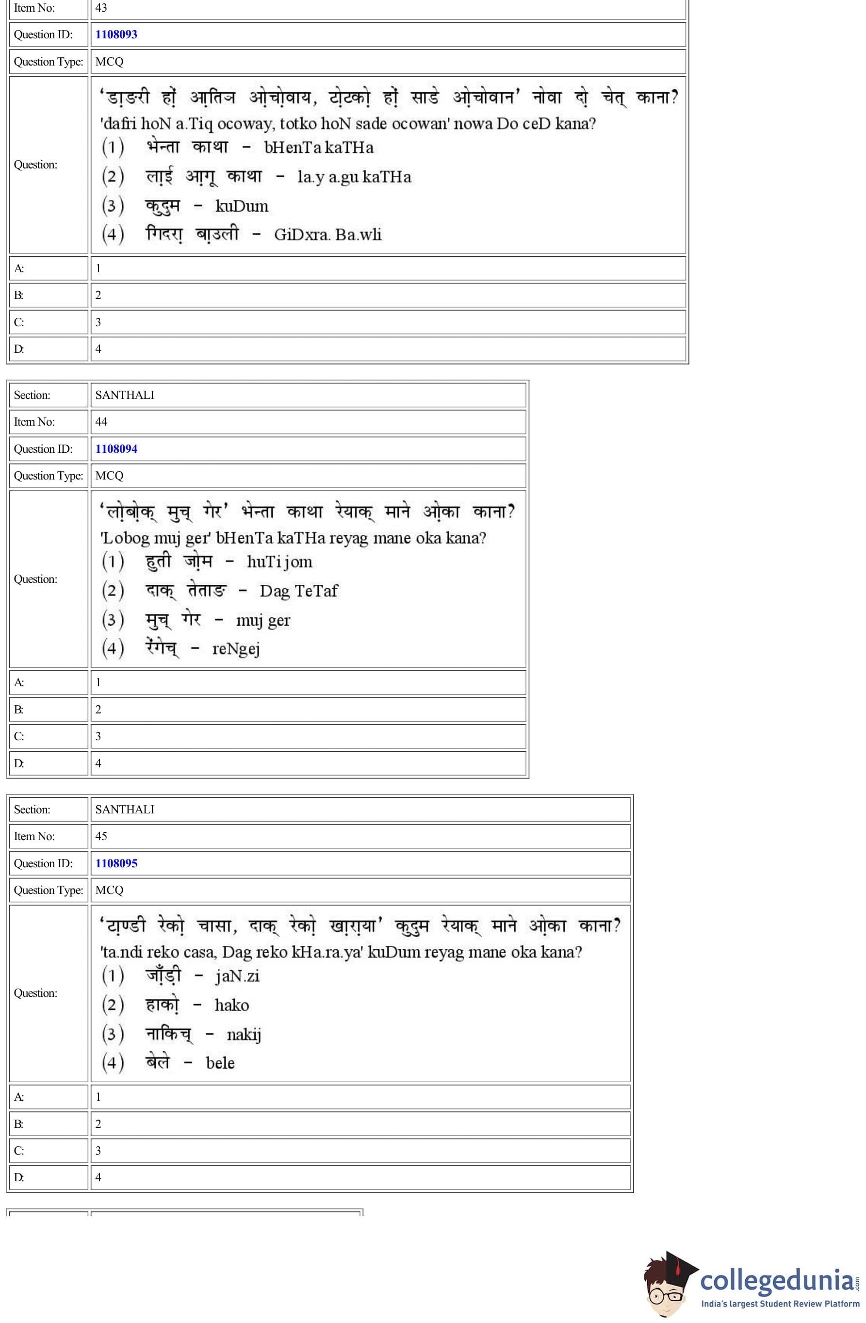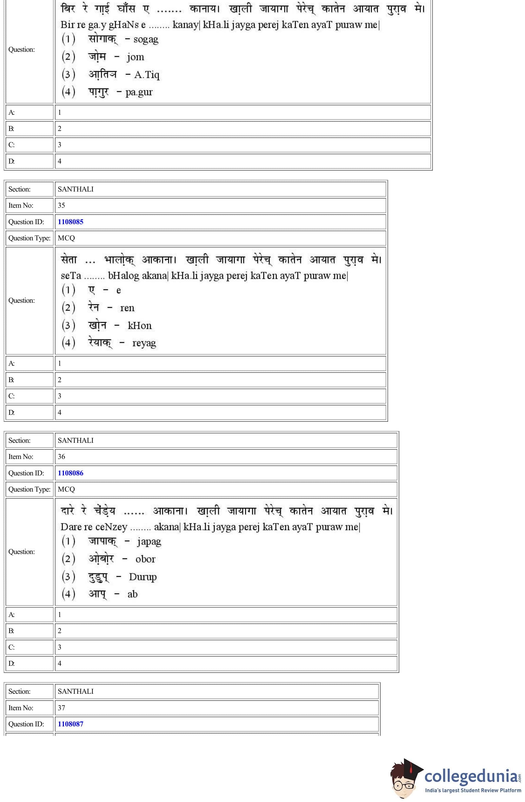 | CUET Santhali Question Paper PDF | CUET Santhali Answer Key PDF |