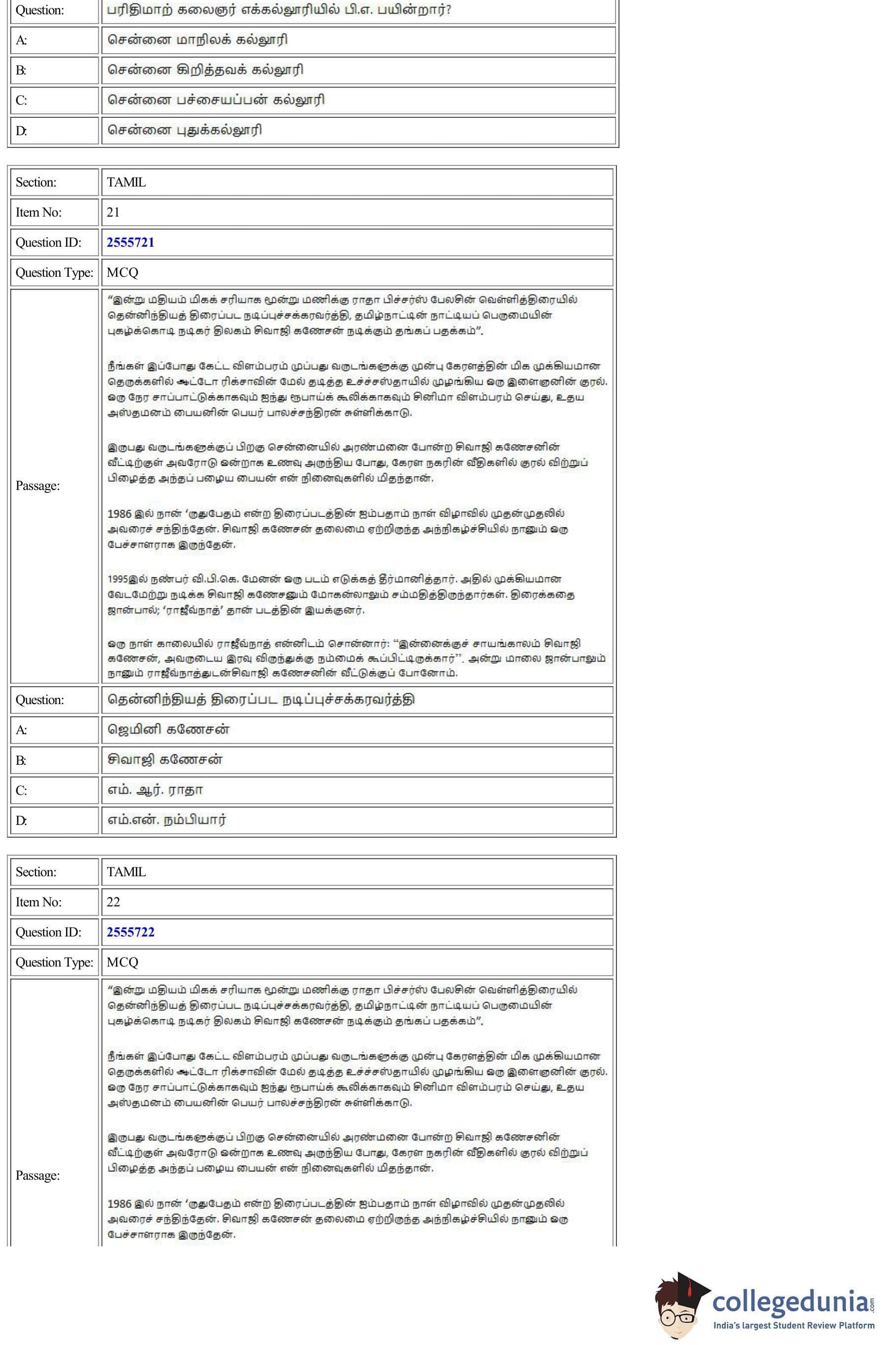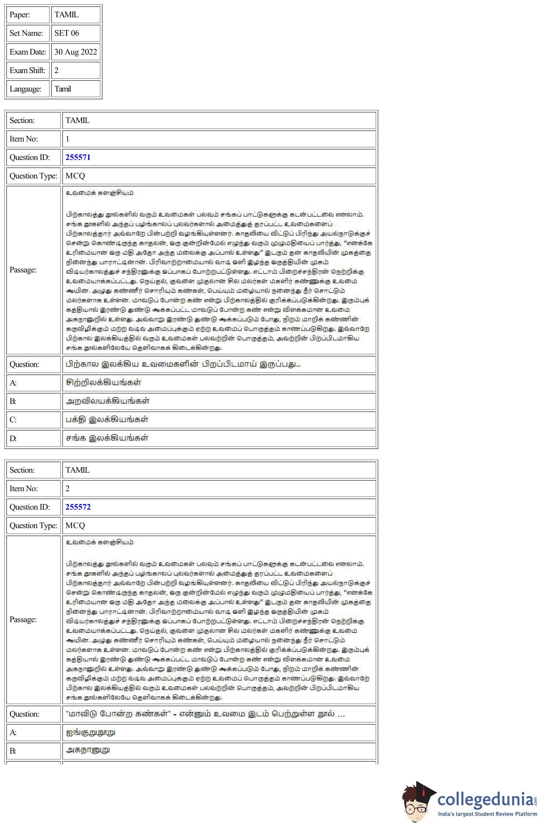 CUET 2022 Tamil Question Paper with Answer Key PDF