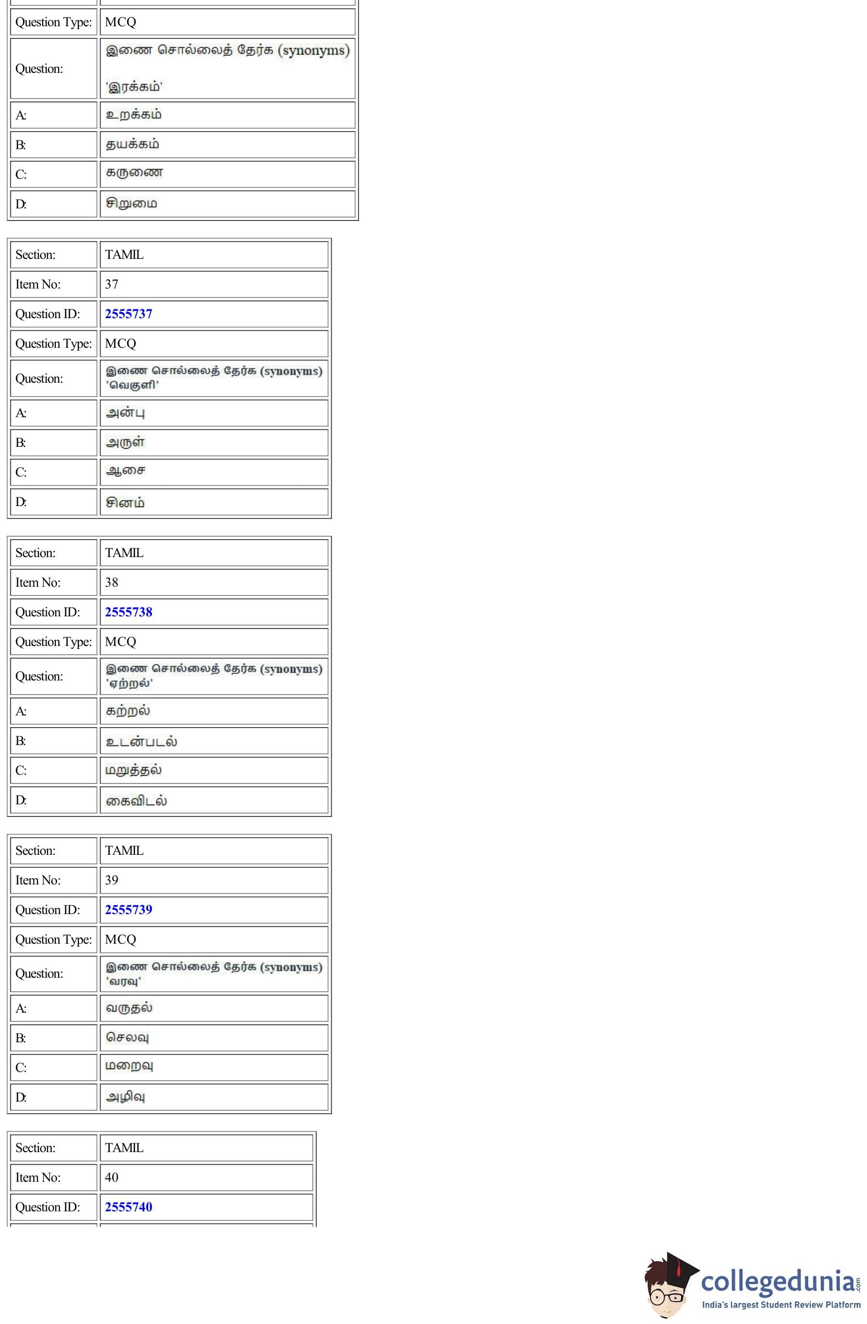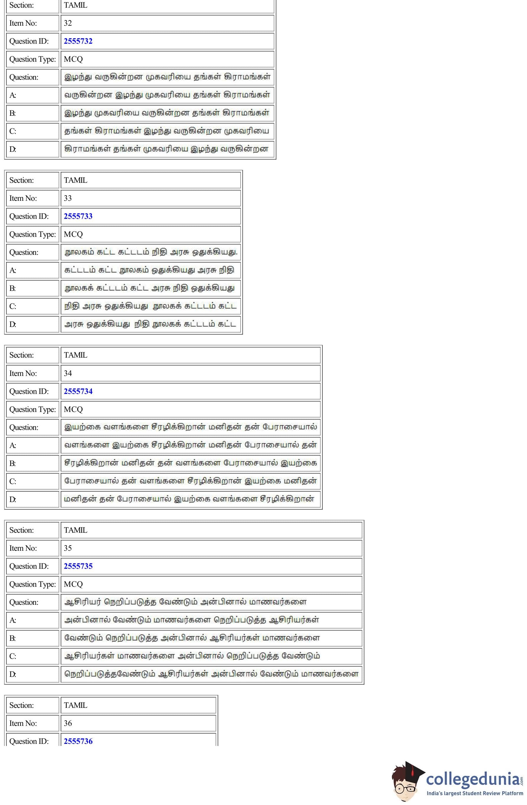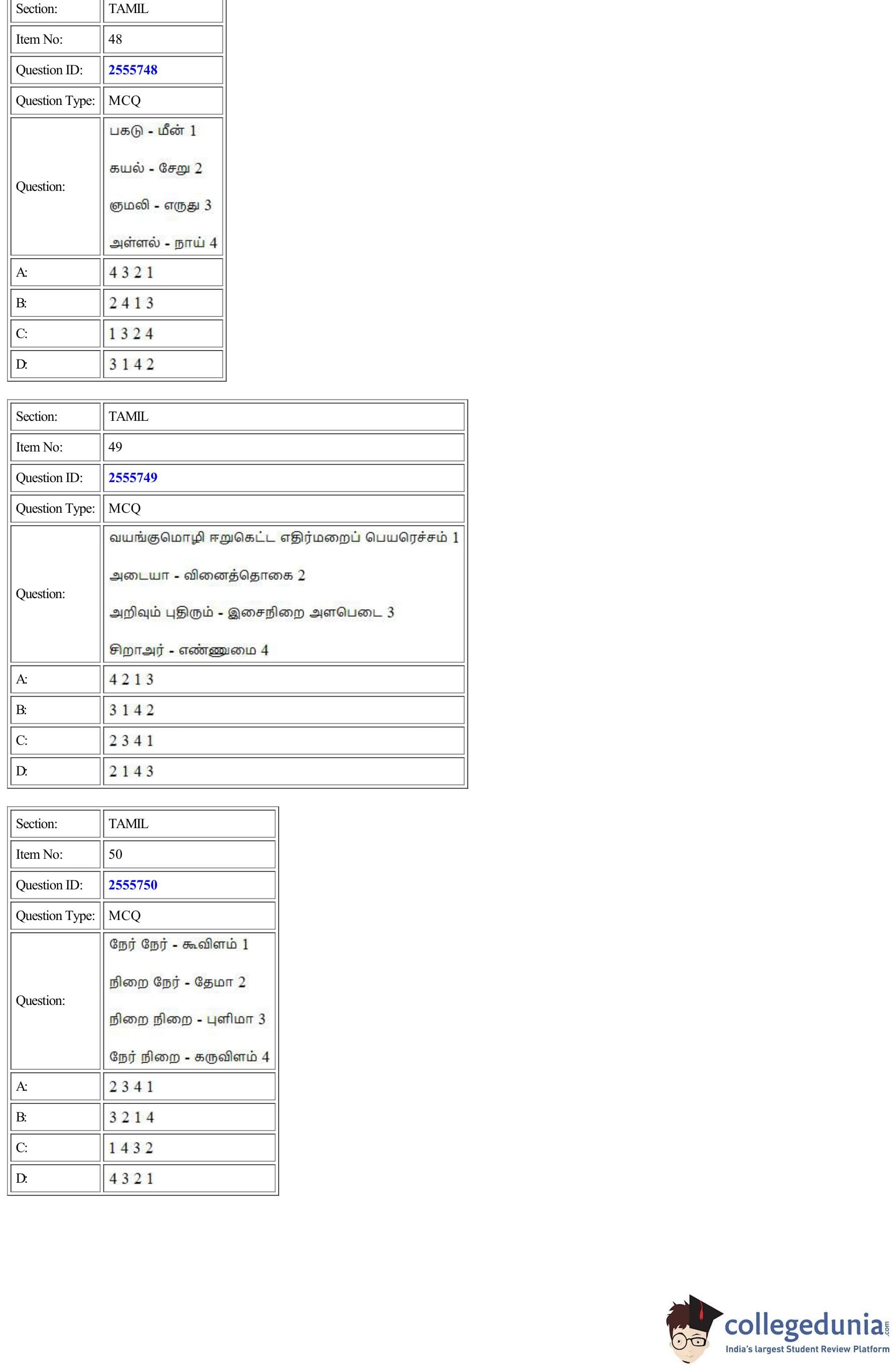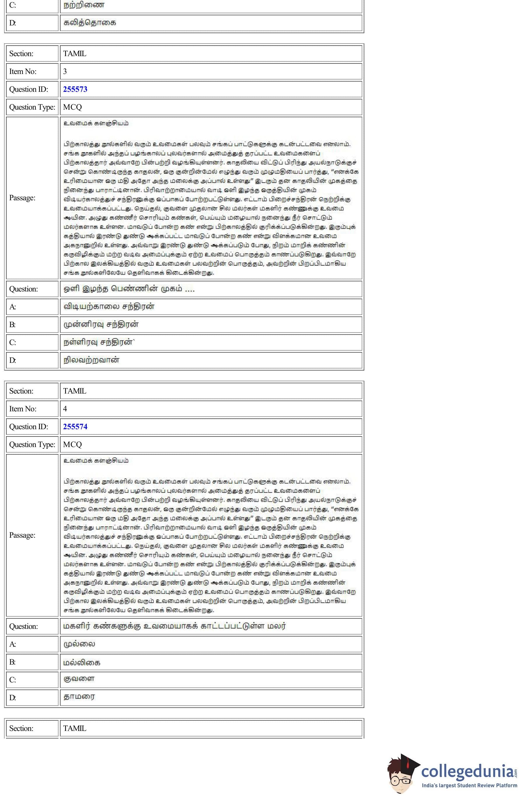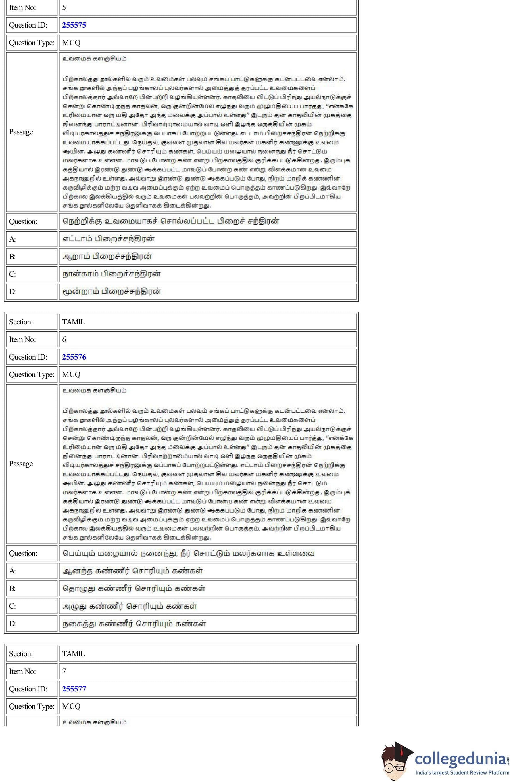 | CUET Tamil Question Paper PDF | CUET Tamil Answer Key PDF |