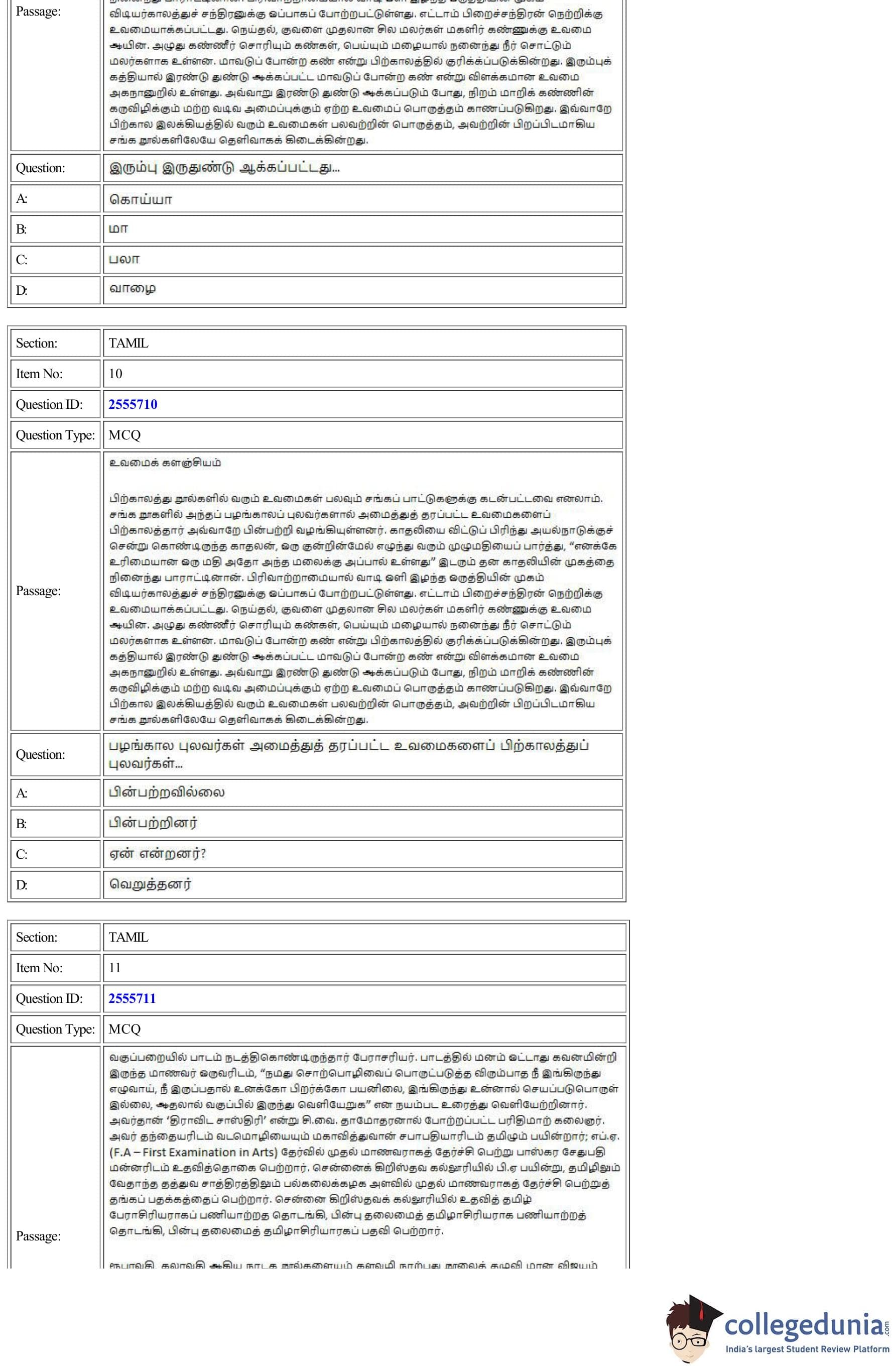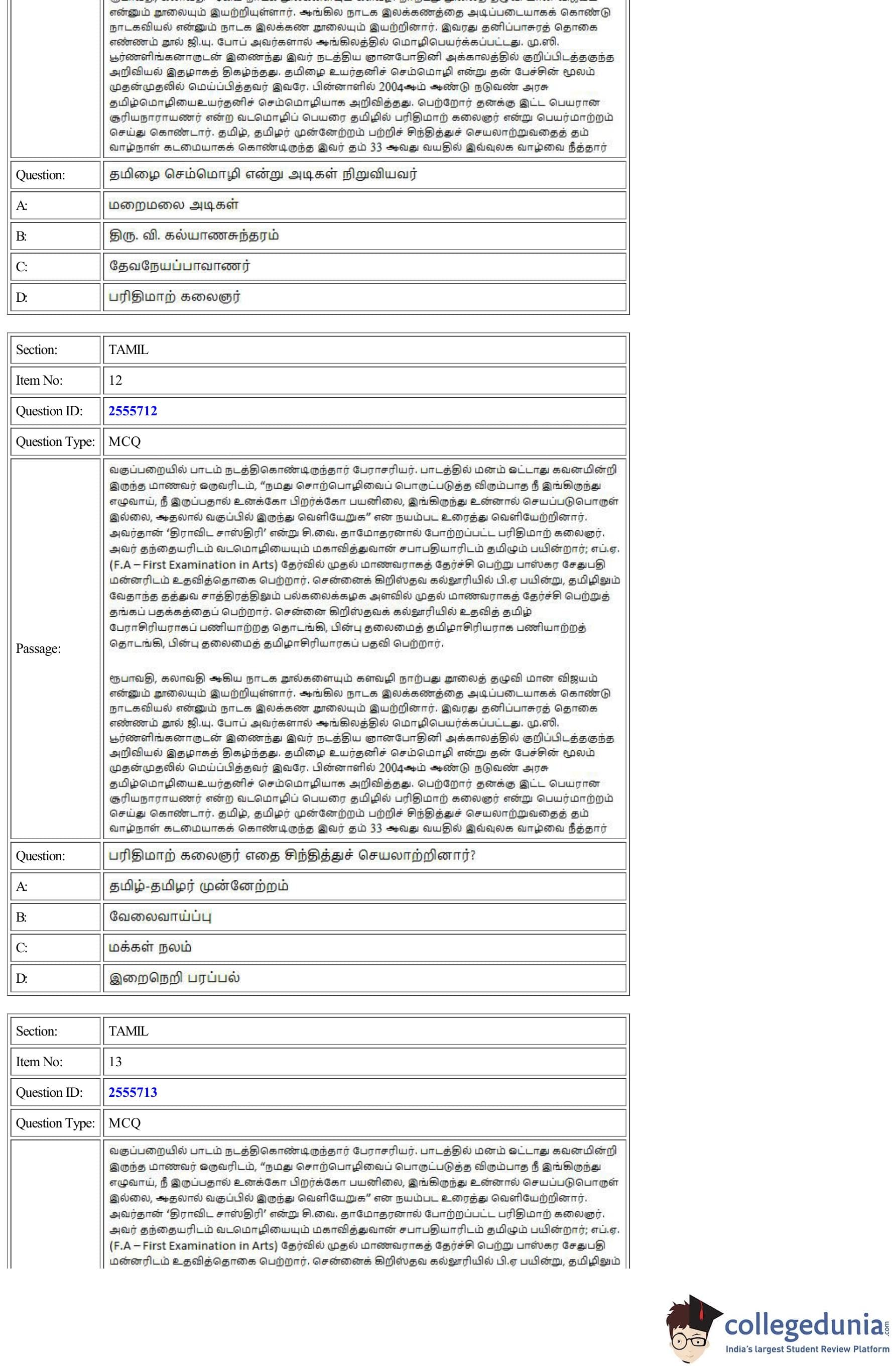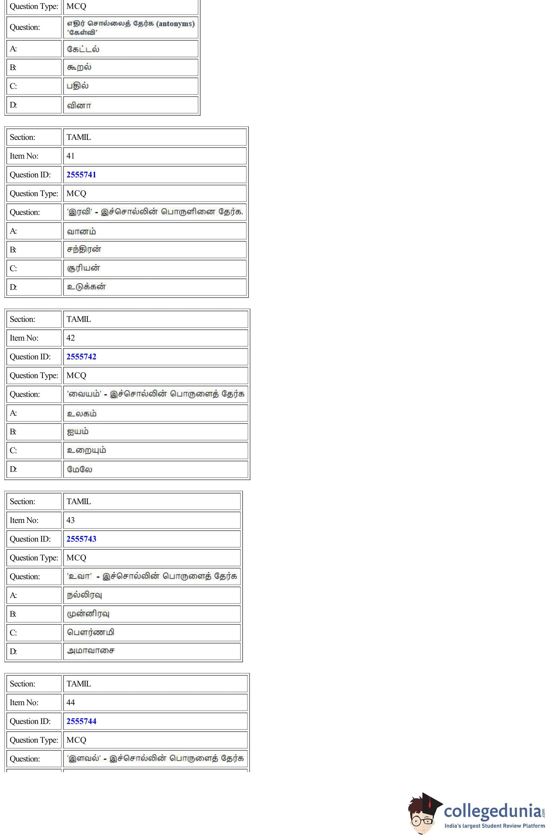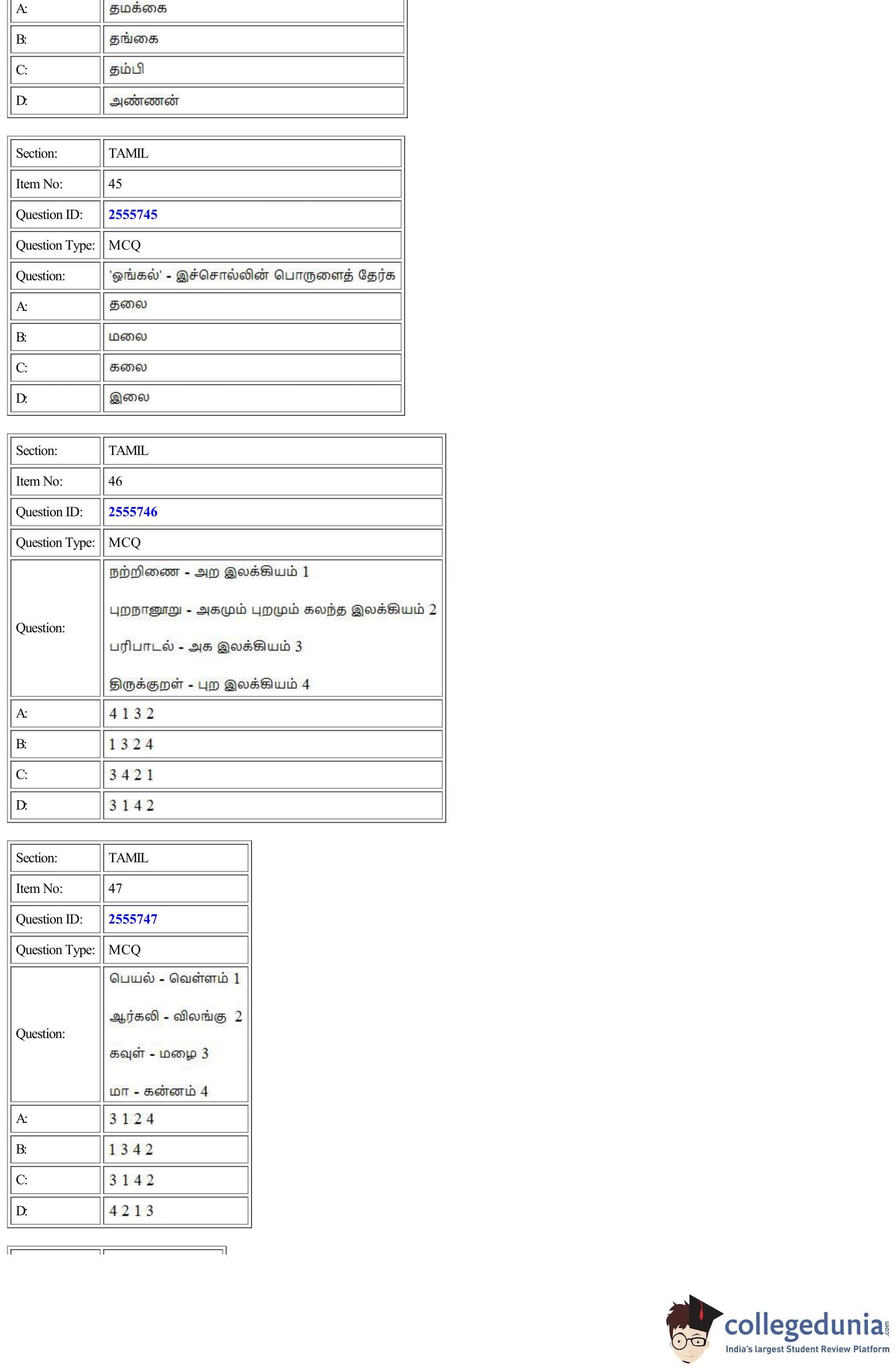 | CUET Tamil Question Paper PDF | CUET Tamil Answer Key PDF |