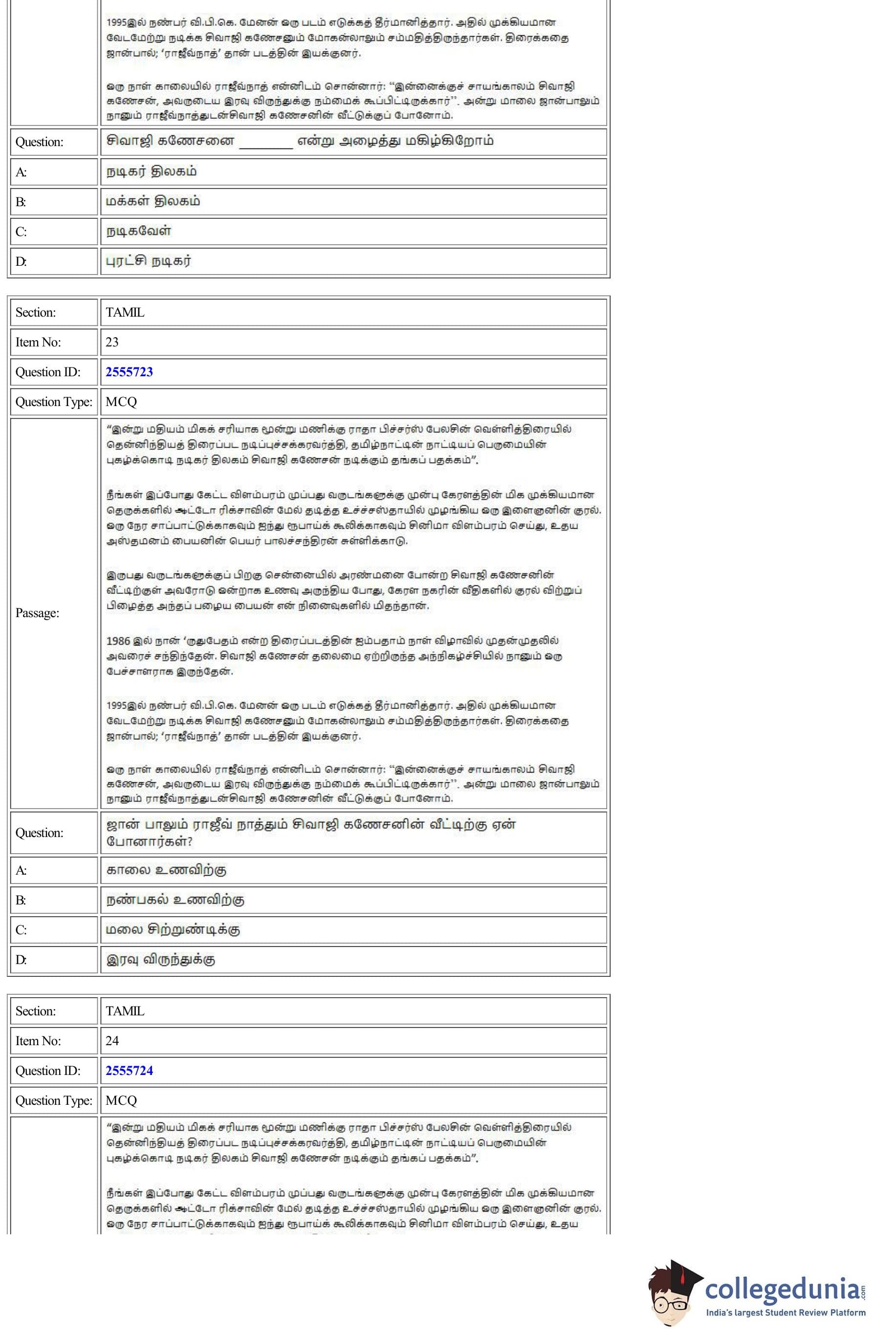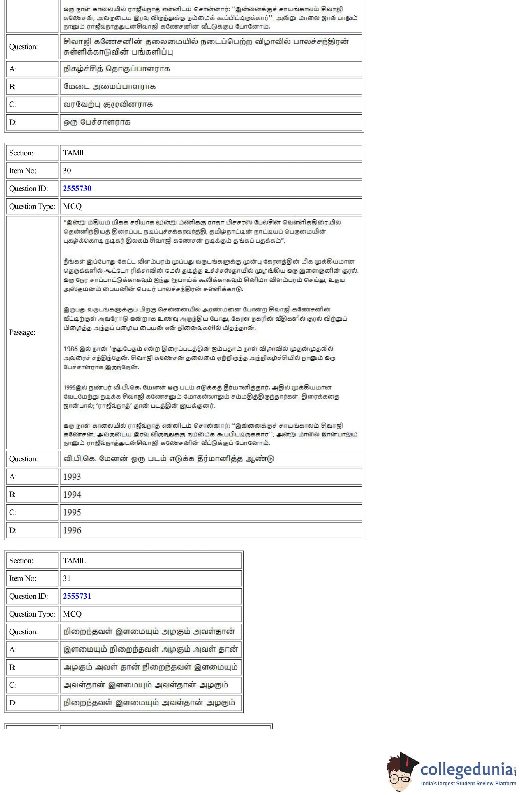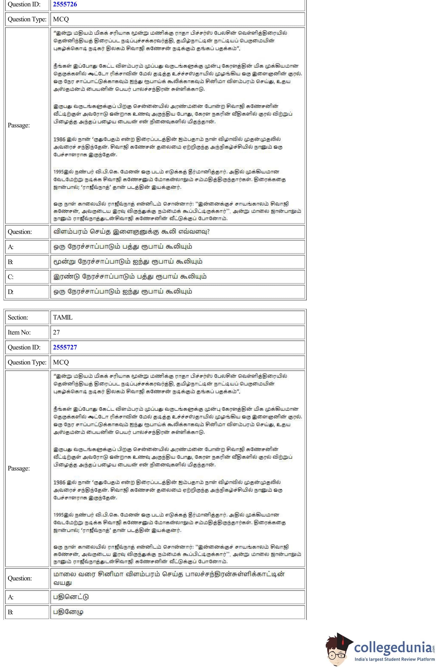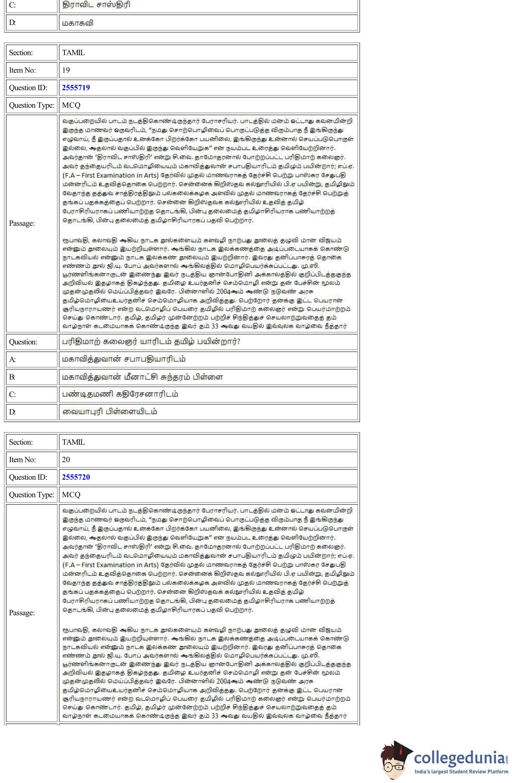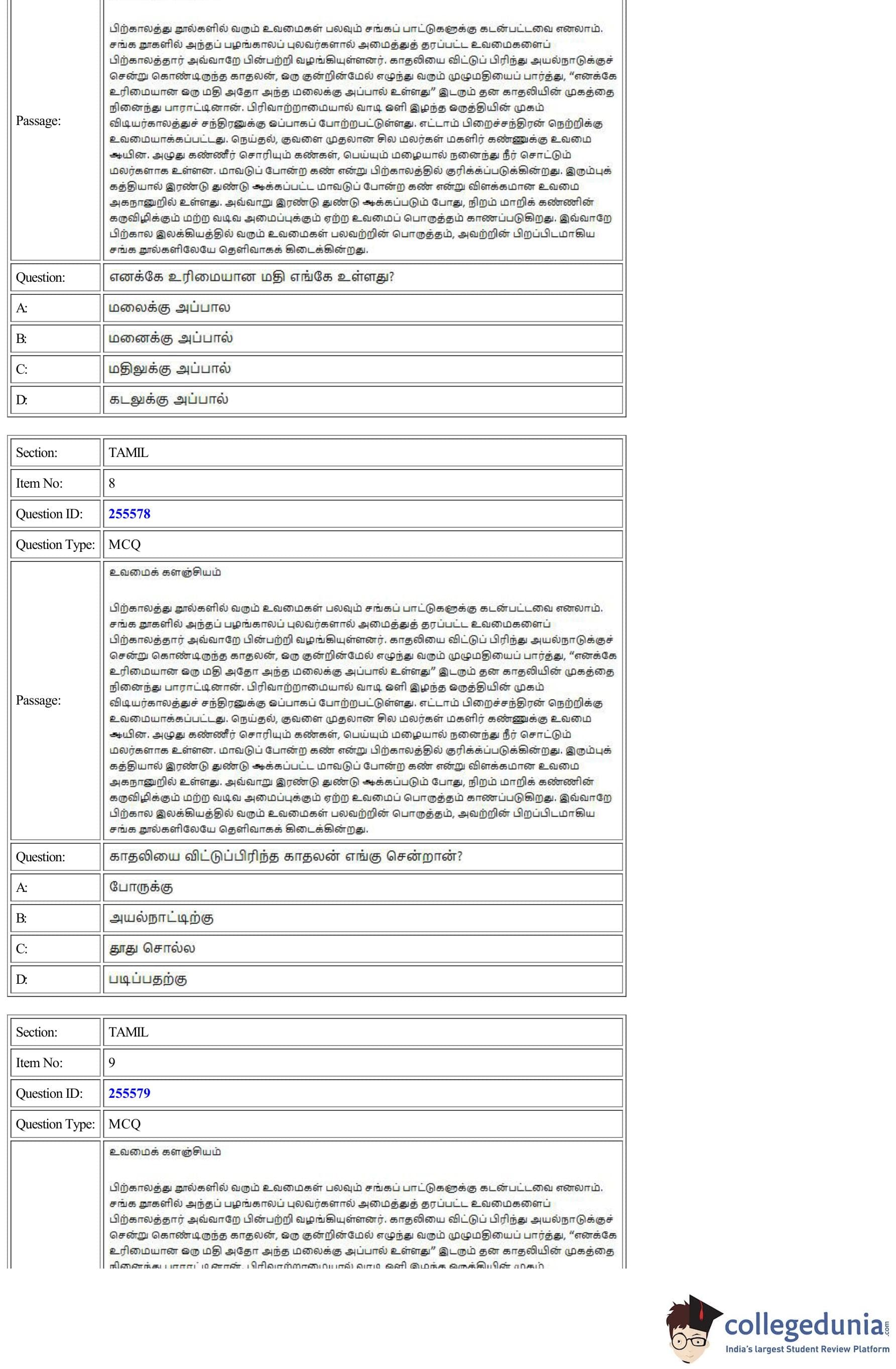 | CUET Tamil Question Paper PDF | CUET Tamil Answer Key PDF |