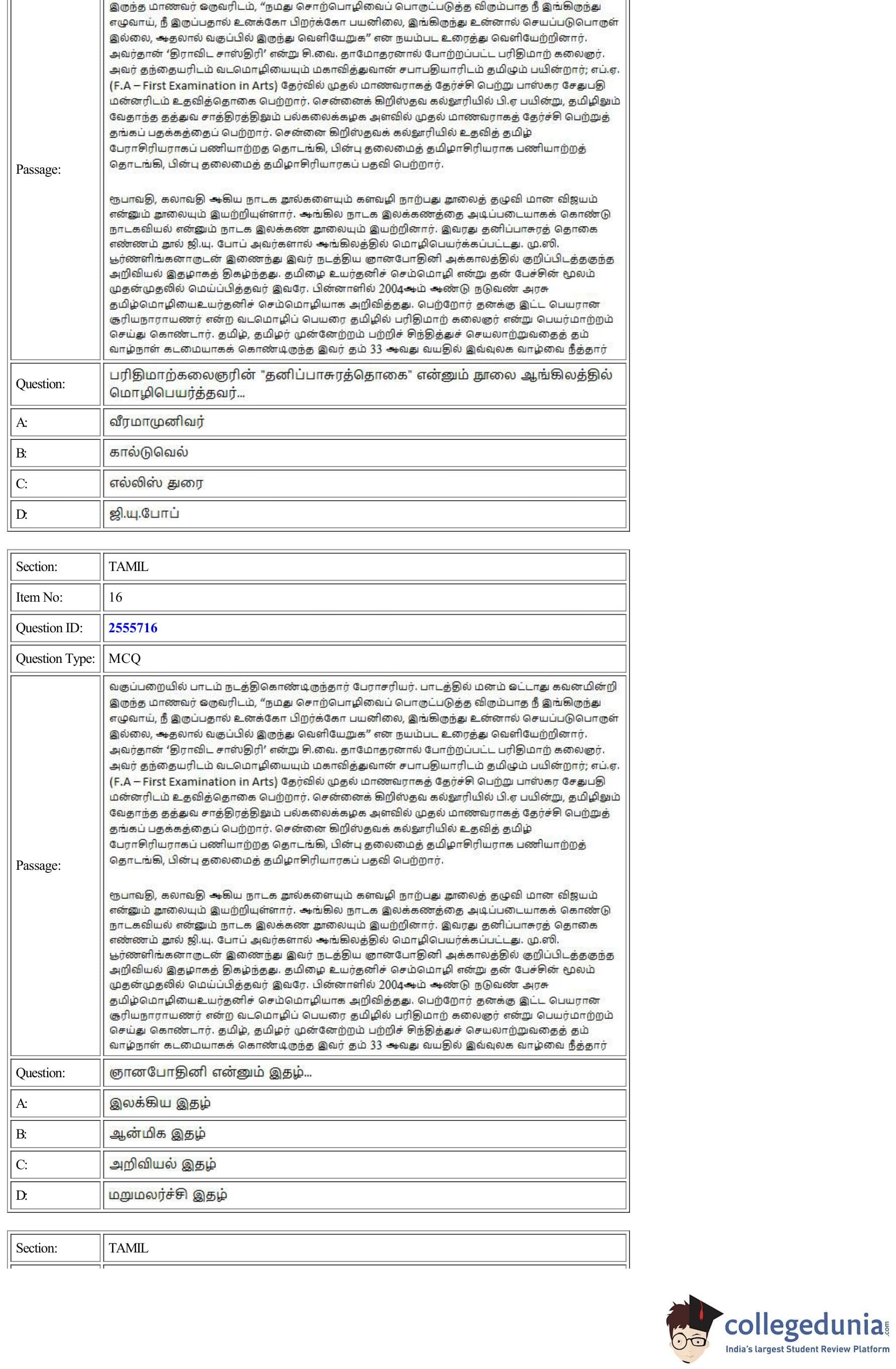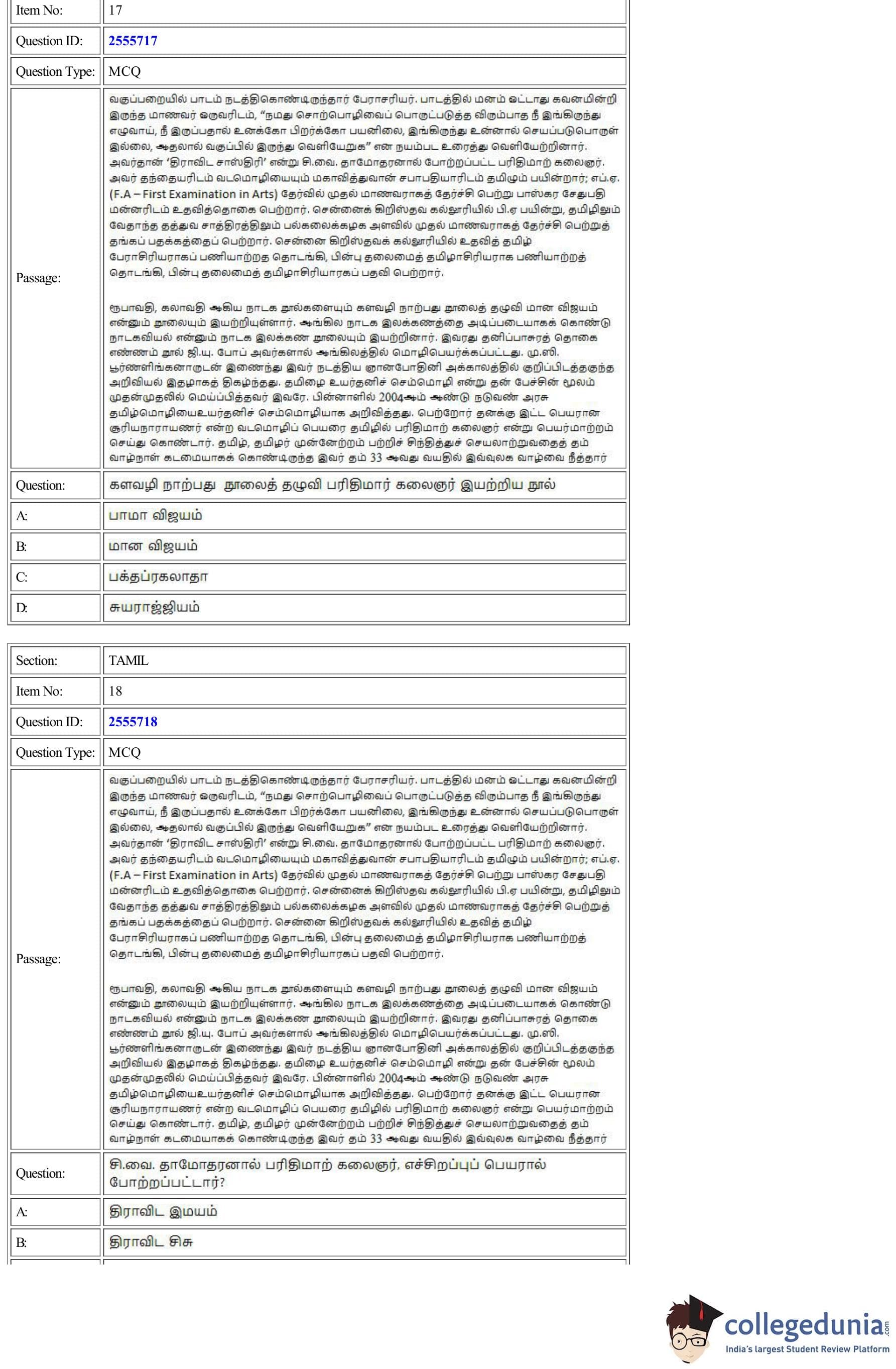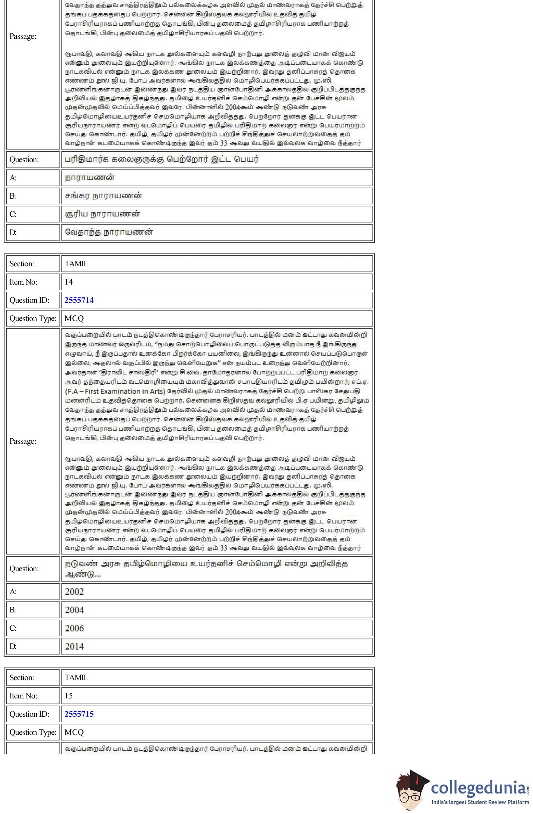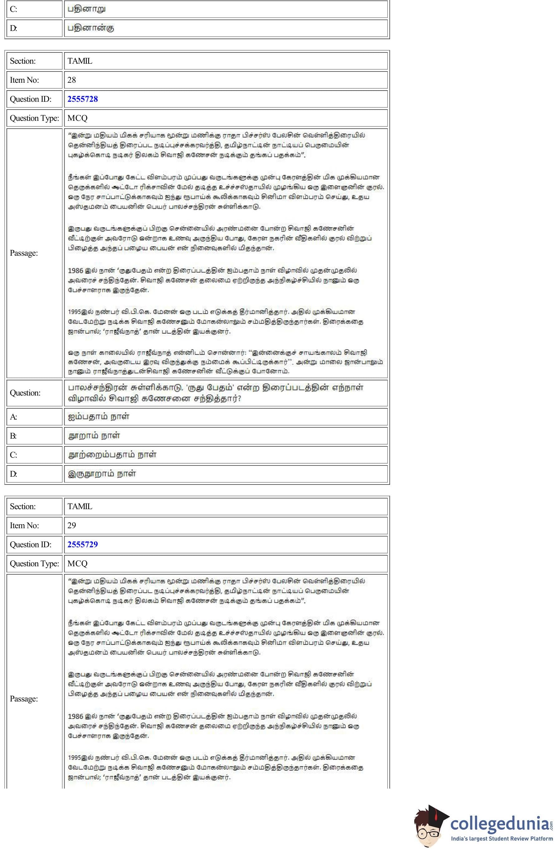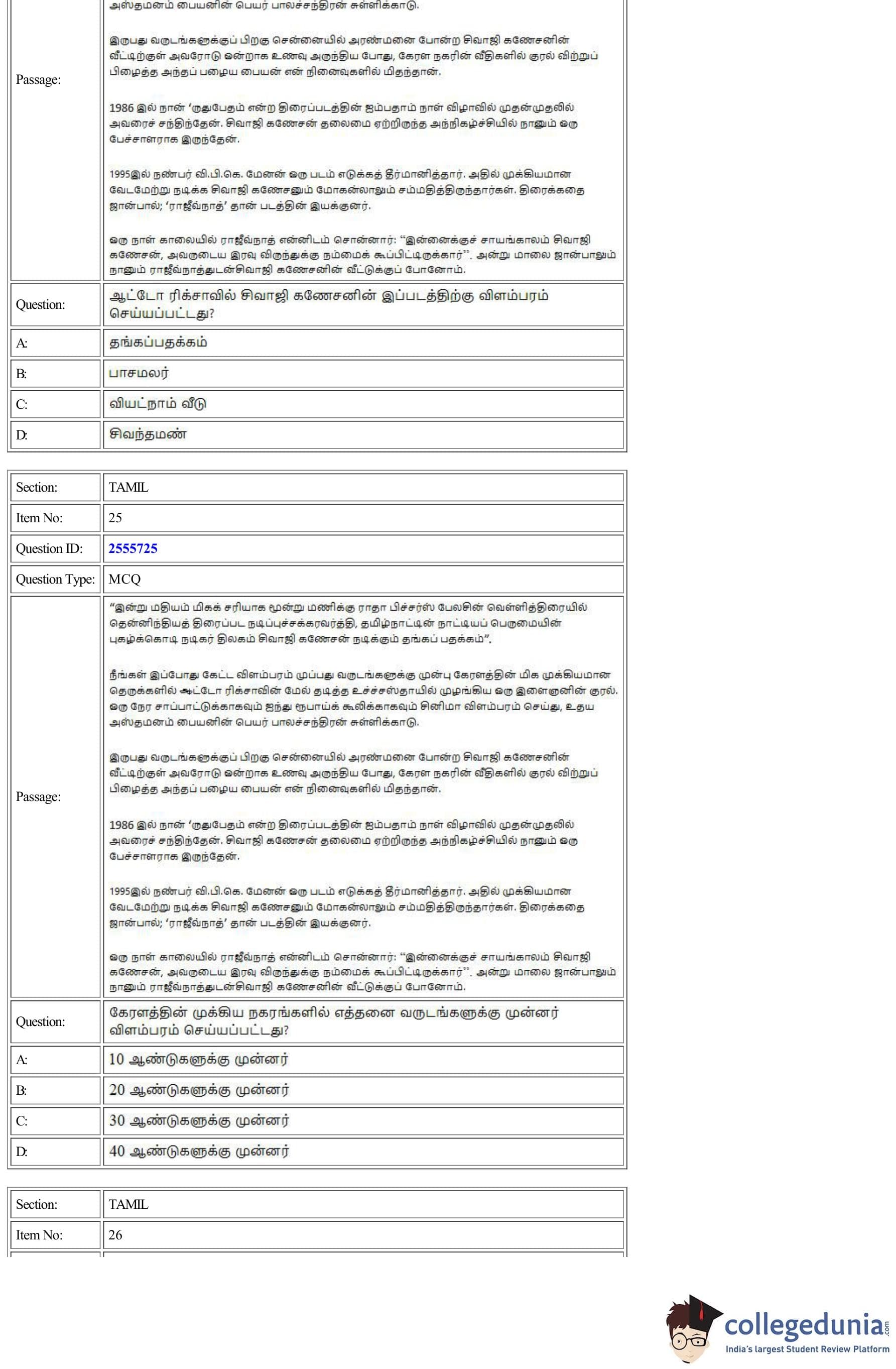 | CUET Tamil Question Paper PDF | CUET Tamil Answer Key PDF |