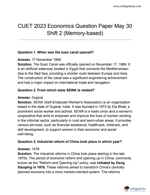 CUET 2023 Economics Answer Key for all shifts is made available for download here. NTA to release CUET Answer Key 2023 PDF for Economics soon on cuet.samarth.ac.in. Download CUET 2023 Economics Question Paper PDF