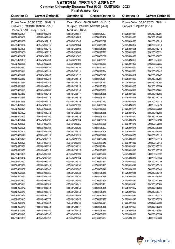 CUET 2023 Question Paper with Answers PDF Download