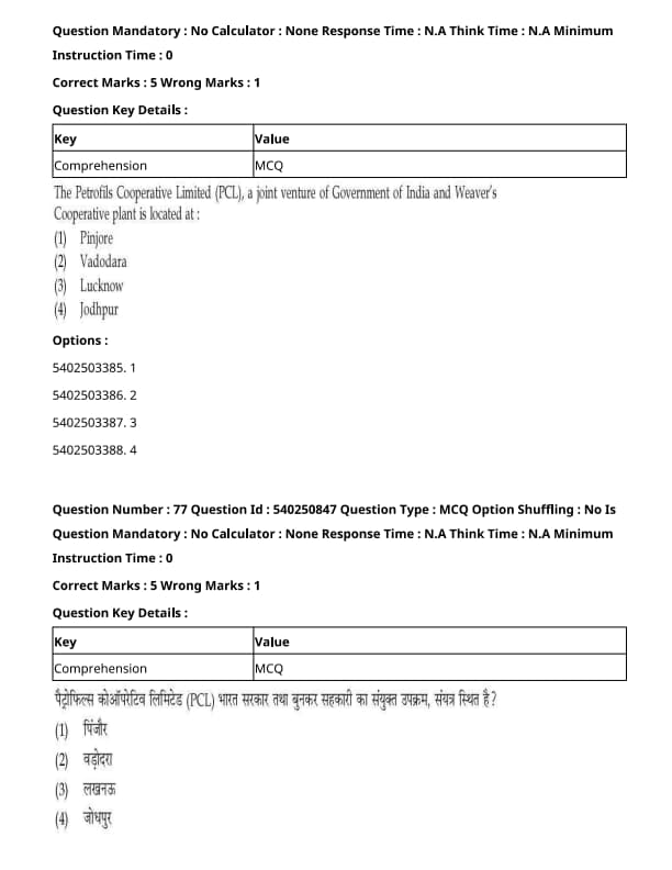 The Petrofils Cooperative Limited (PCL), a joint venture of Government of India and Weaver’s Cooperative plant is located at:
