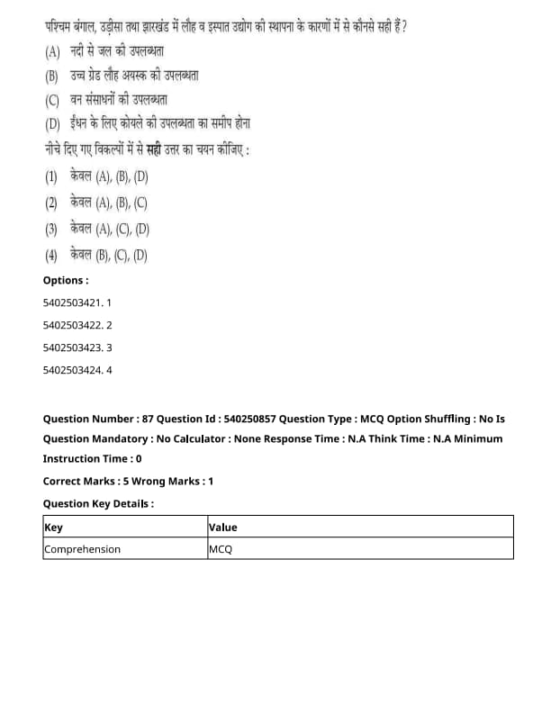 Which of the following causes of establishing Iron and Steel Industries in West Bengal, Odisha, and Jharkhand are correct?