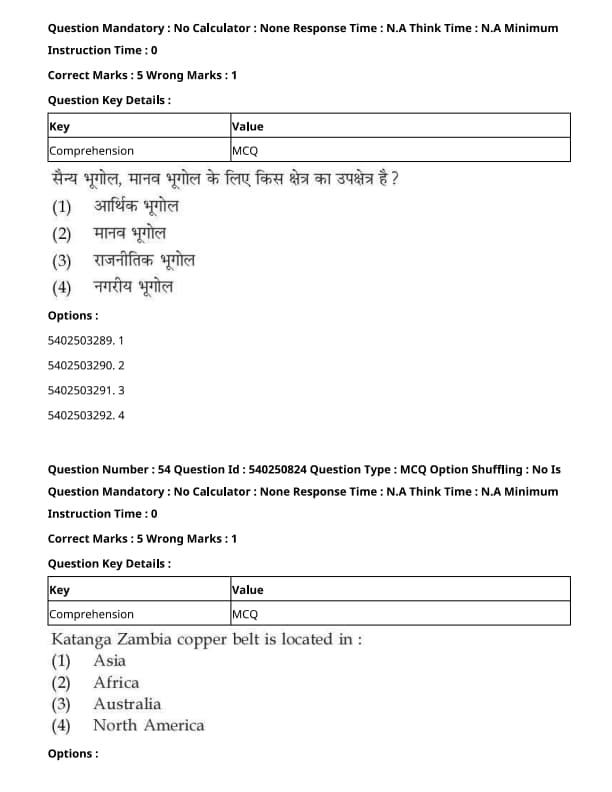| CUET 2023 Geography Question Paper with Answer Key | Check Solution |