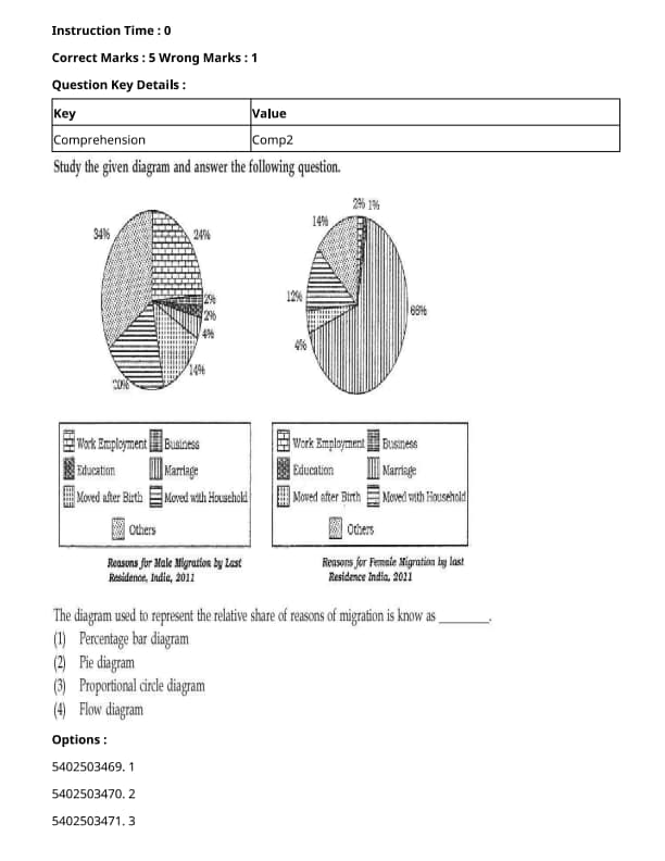 The diagram used to represent the relative share of reasons of migration is known as ...........