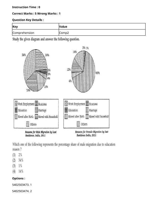 Which one of the following represents the percentage share of male migration due to education reason?