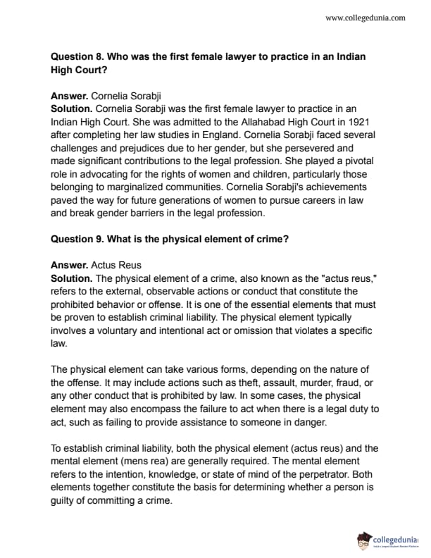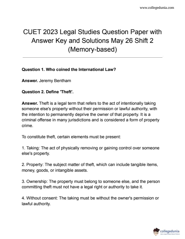 CUET 2023 Legal Studies Answer Key and Question Paper with Solutions PDF