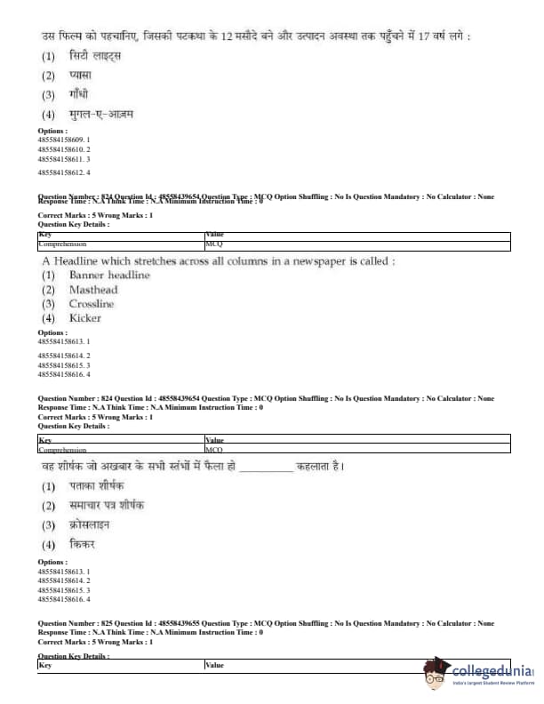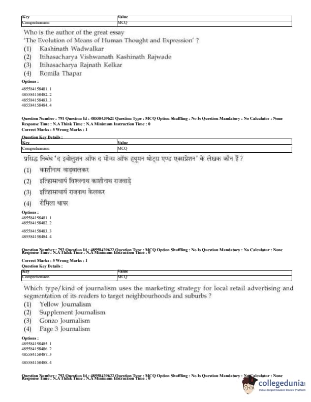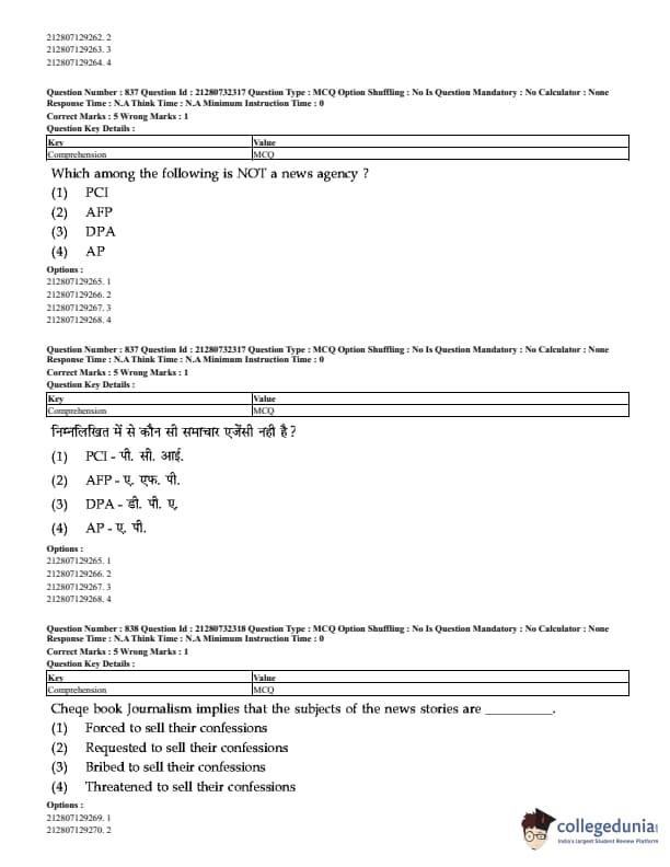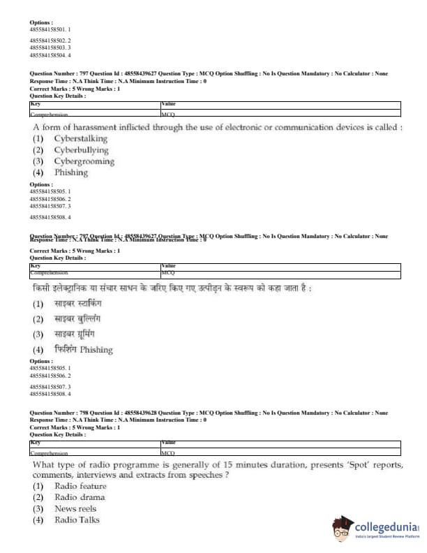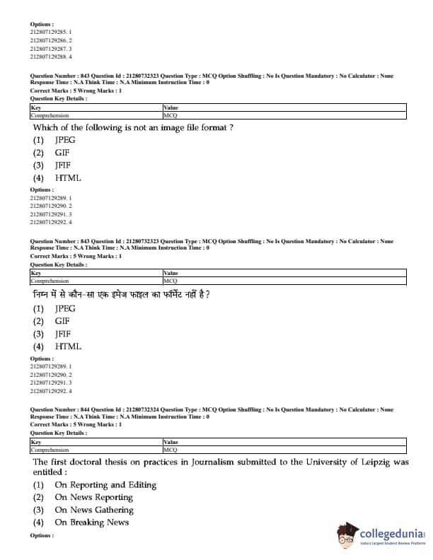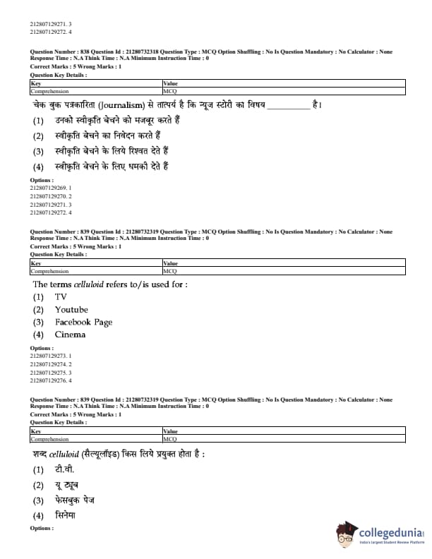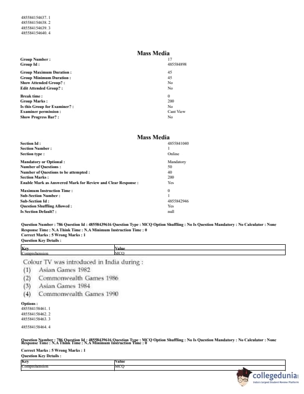 CUET Mass Media Question Paper 2023 PDF Download
