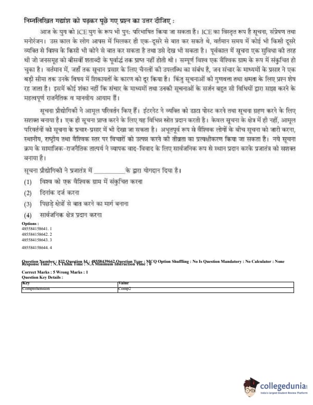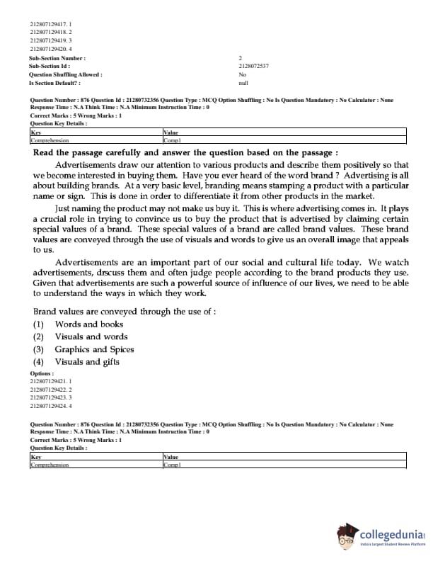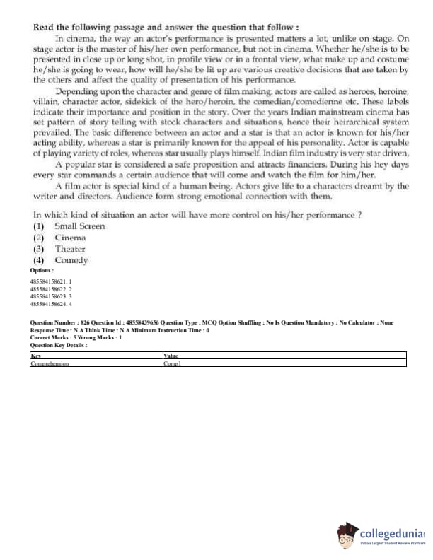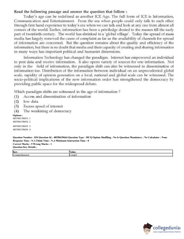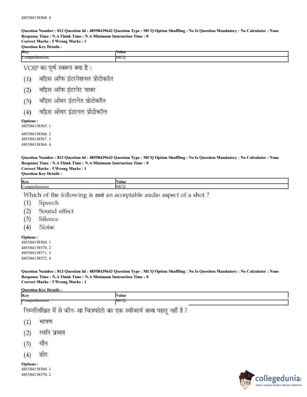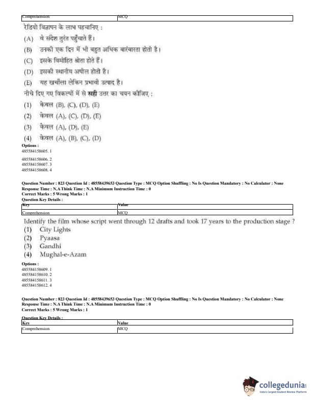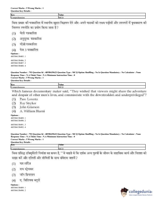 CUET Mass Media Question Paper 2023 PDF Download