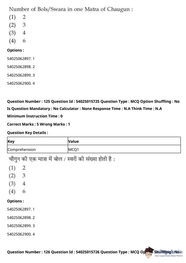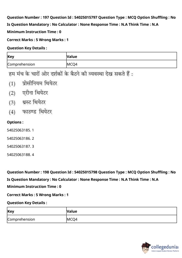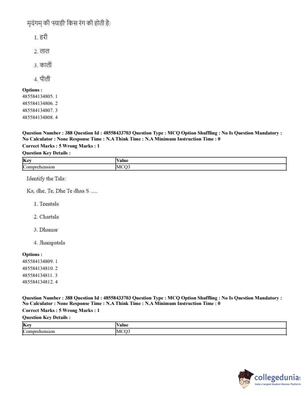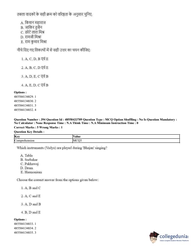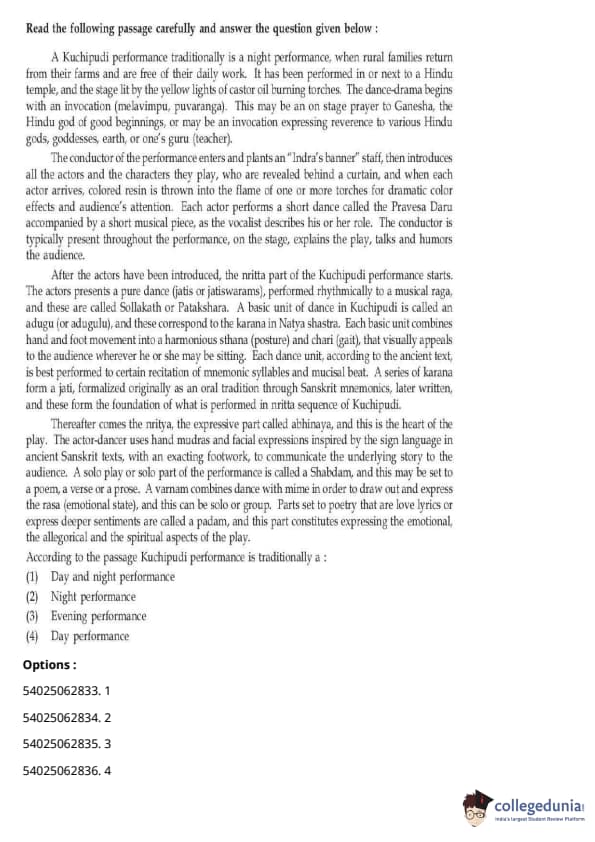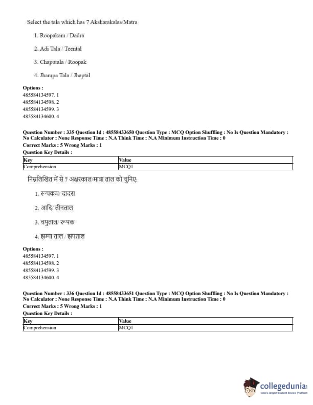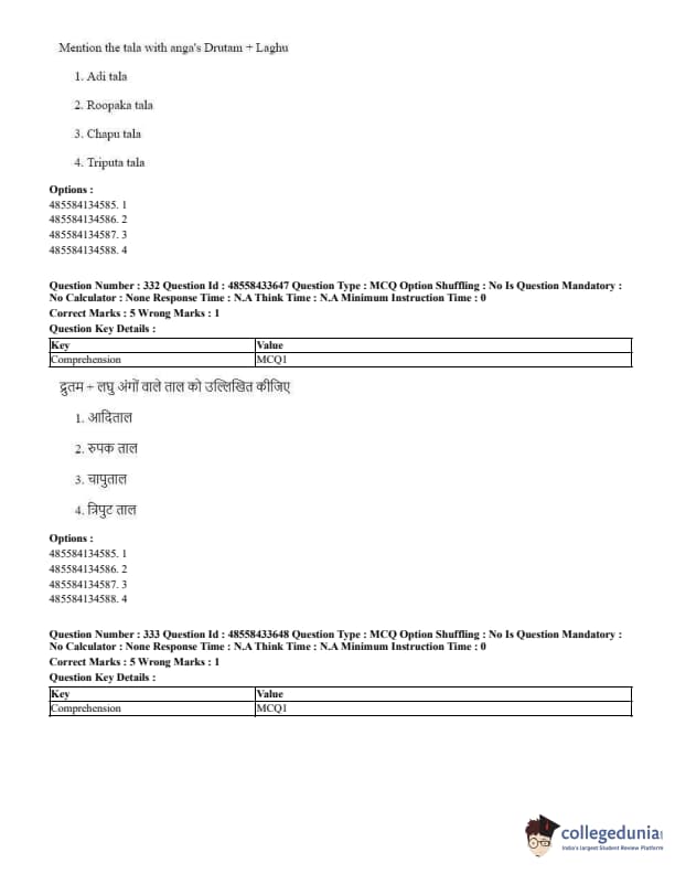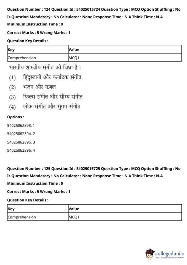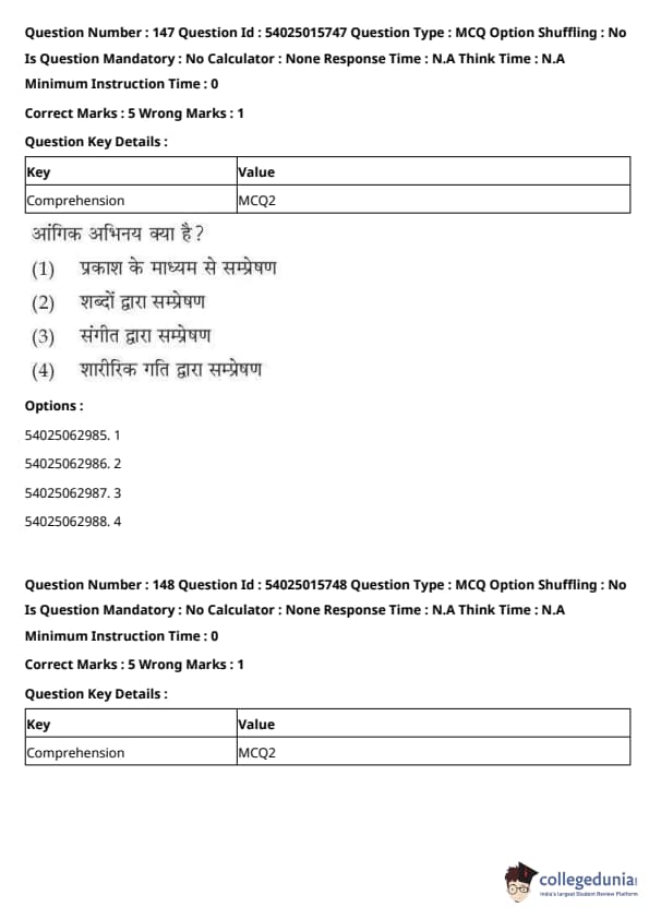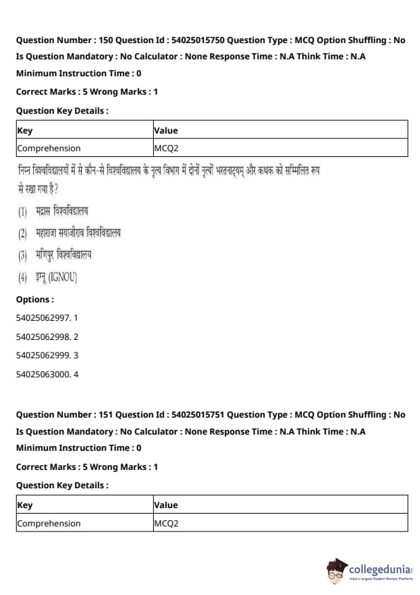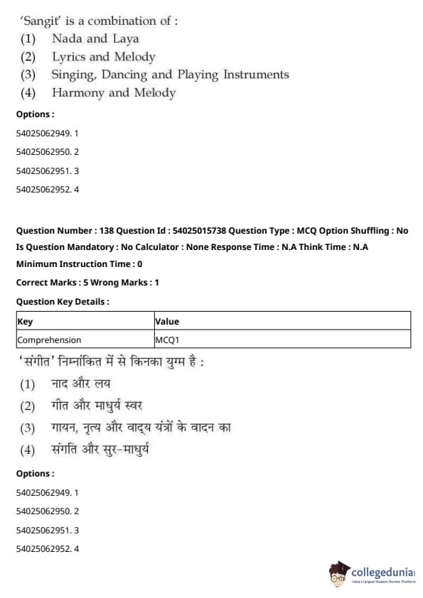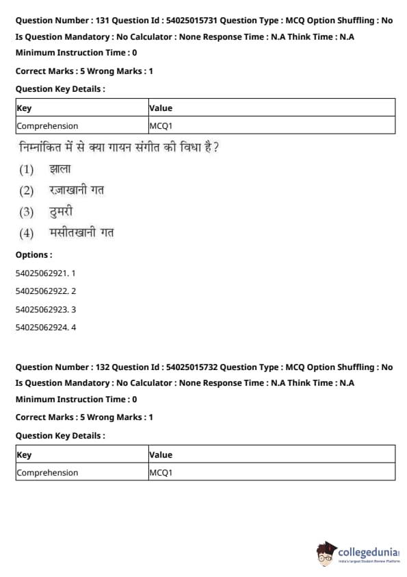 CUET Performing Arts Question Paper 2023 is based on objective-type questions (MCQs). Candidates get 45 minutes to solve 35/40 MCQs out of 45/50 in CUET 2023 question paper for Performing Arts.