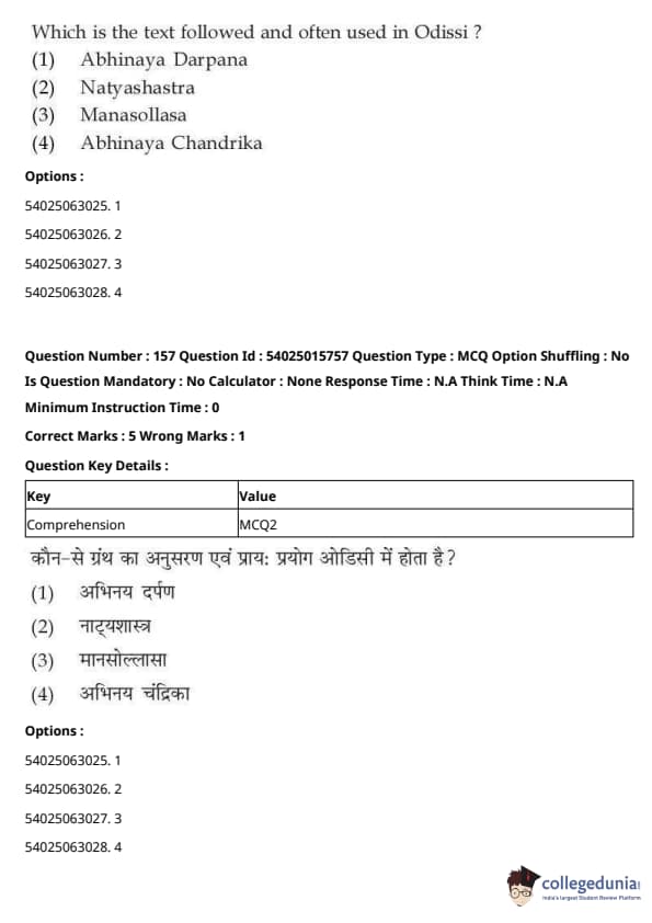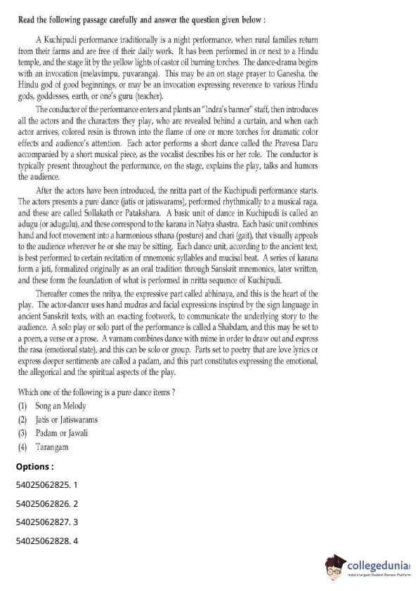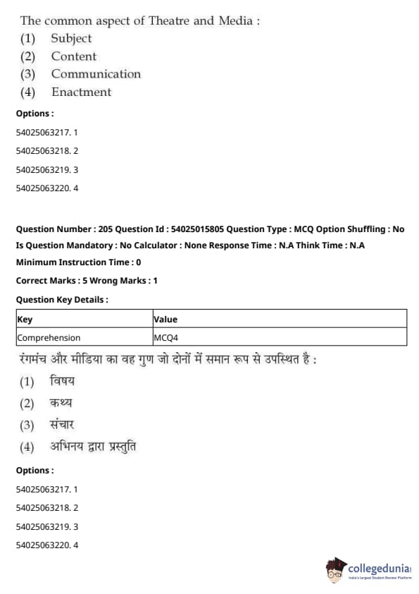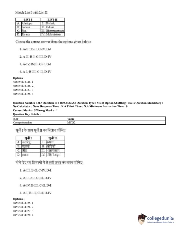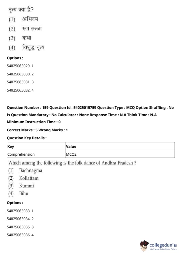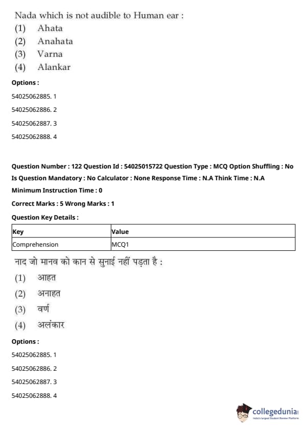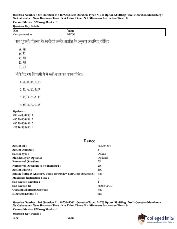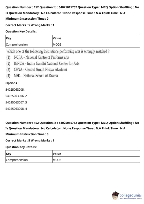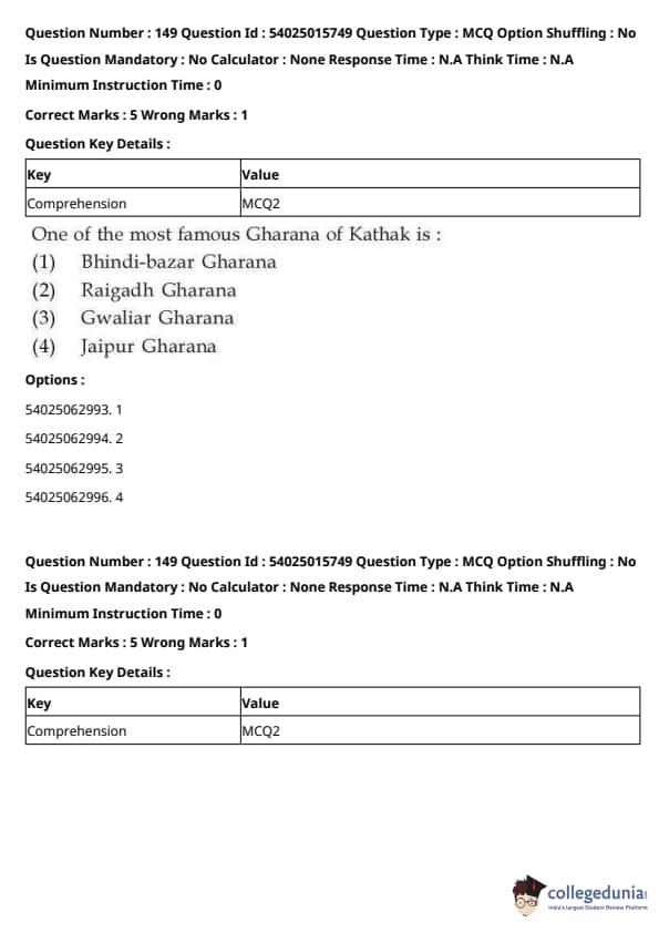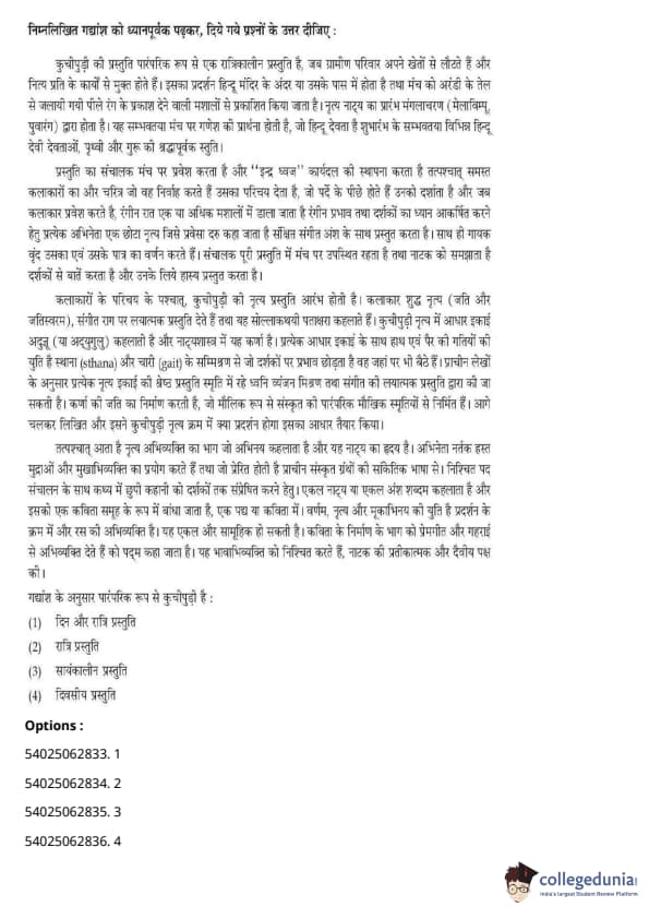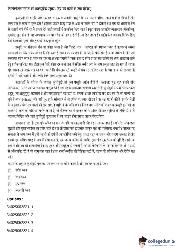 CUET Performing Arts Question Paper 2023 is based on objective-type questions (MCQs). Candidates get 45 minutes to solve 35/40 MCQs out of 45/50 in CUET 2023 question paper for Performing Arts.
