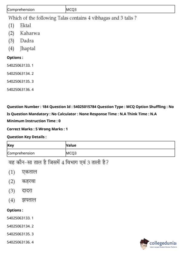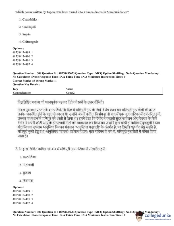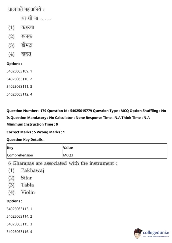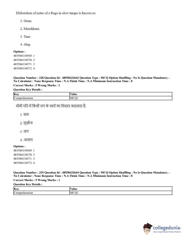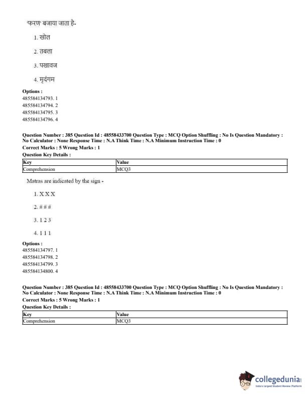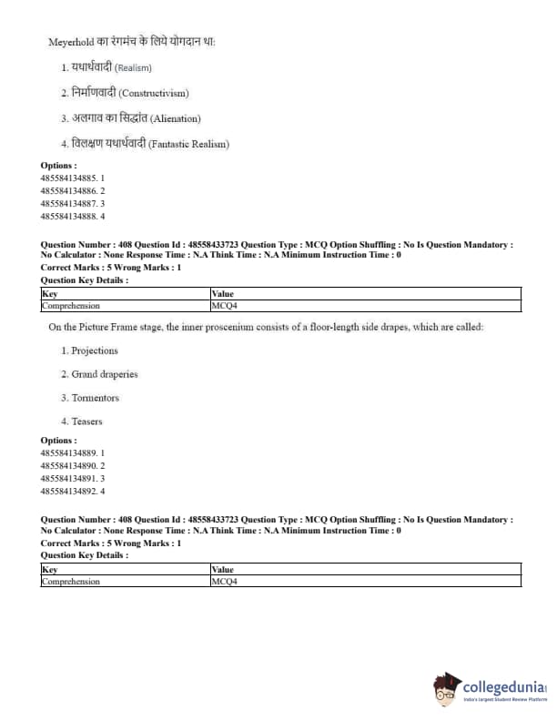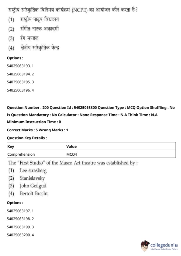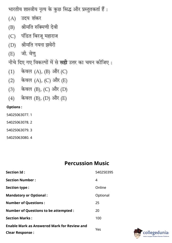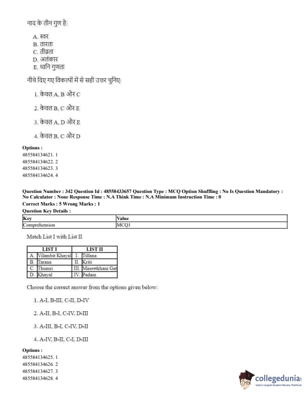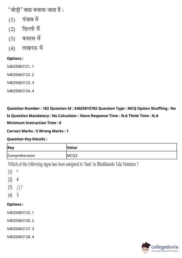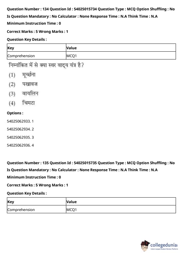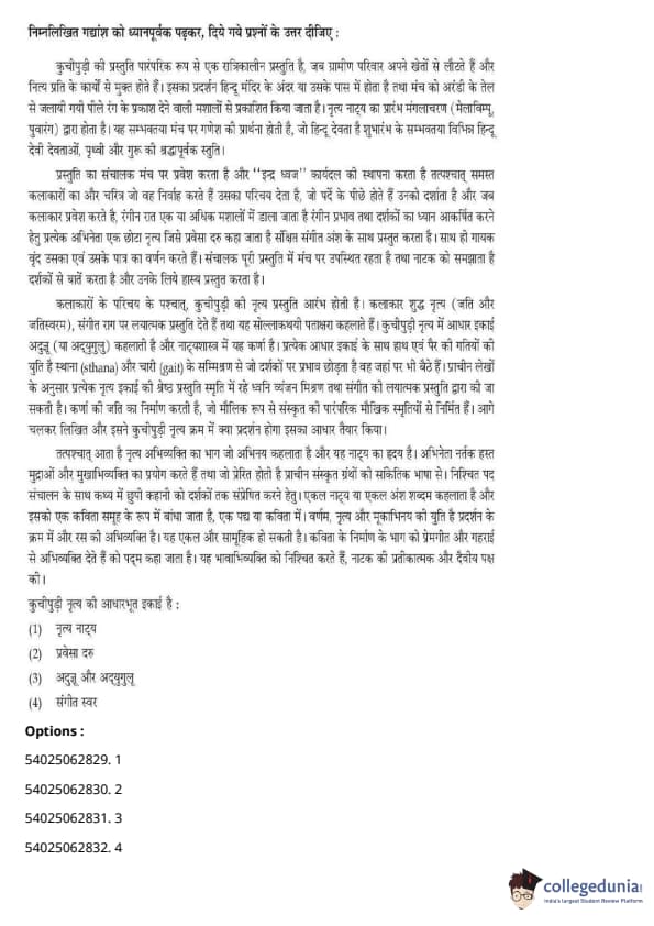 CUET Performing Arts Question Paper 2023 is based on objective-type questions (MCQs). Candidates get 45 minutes to solve 35/40 MCQs out of 45/50 in CUET 2023 question paper for Performing Arts.