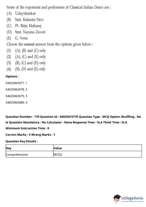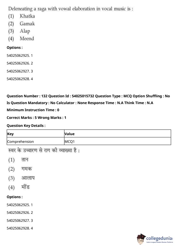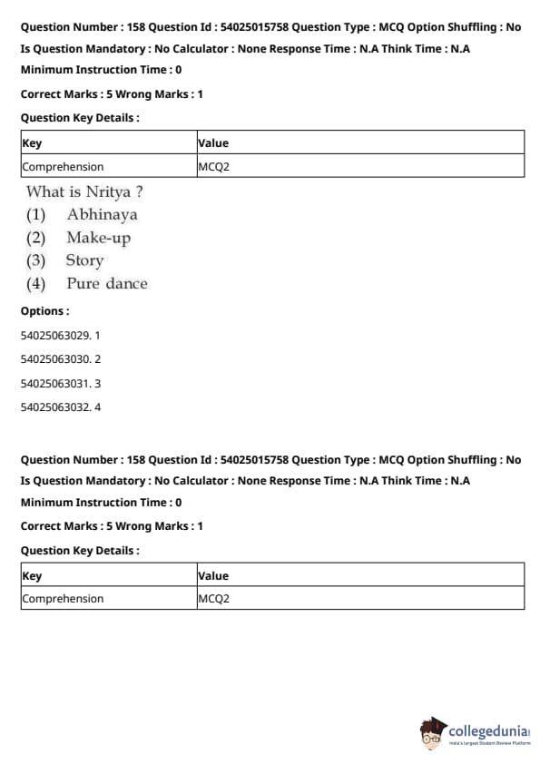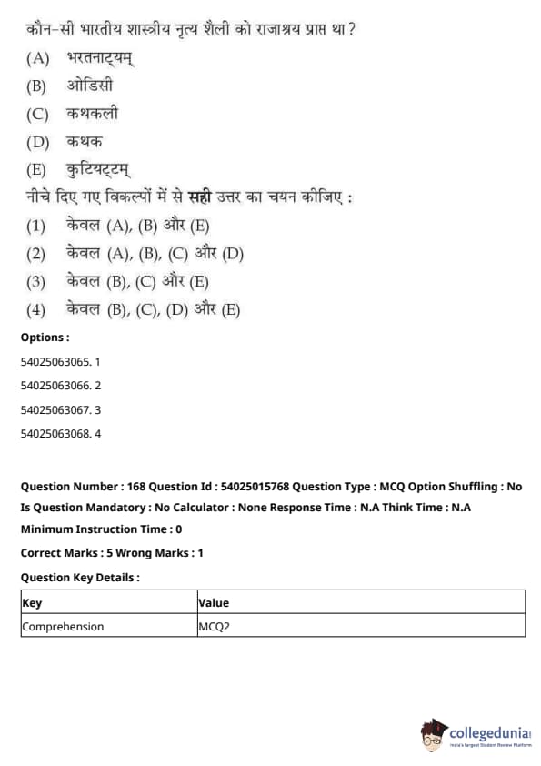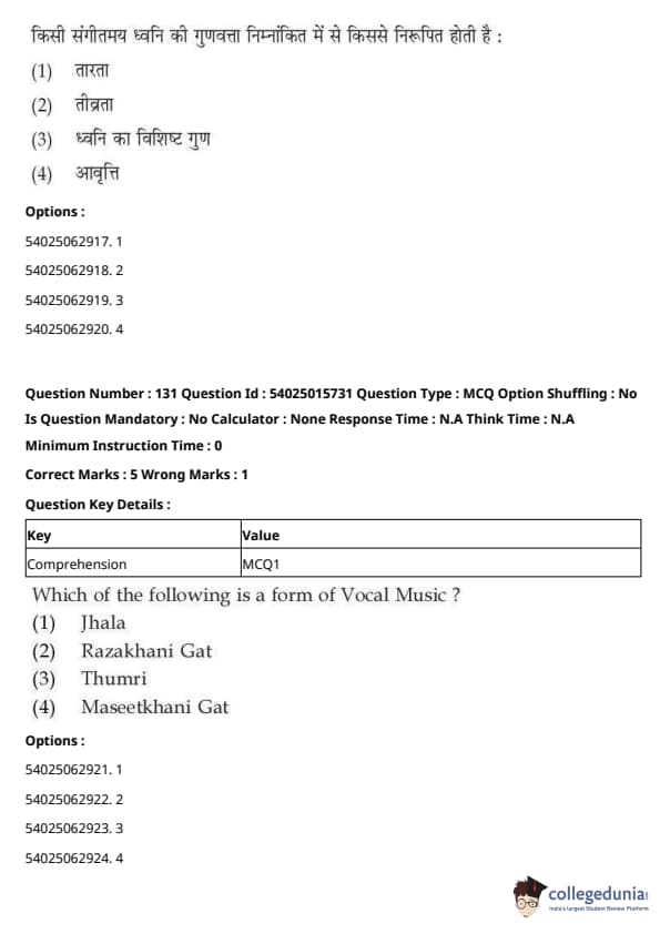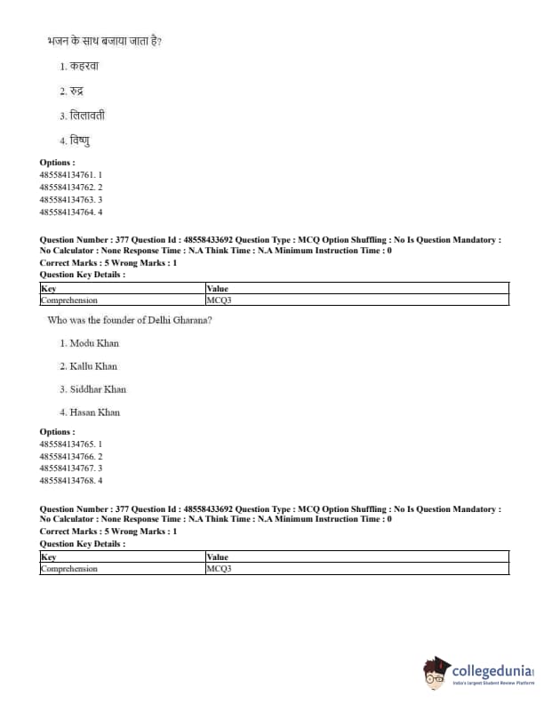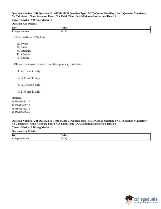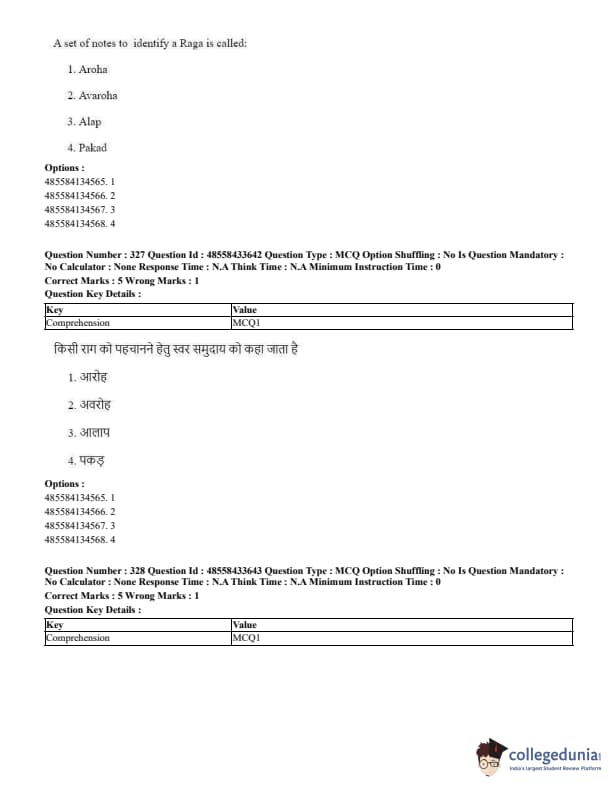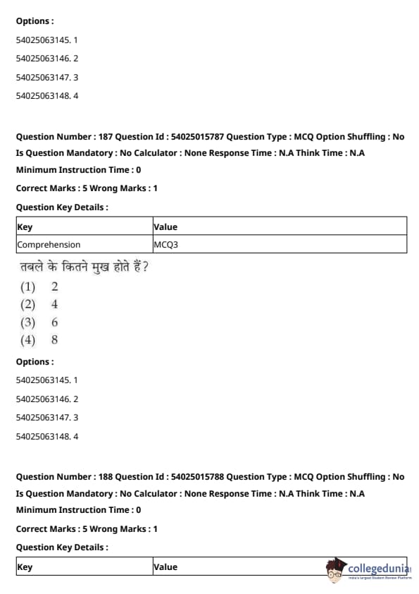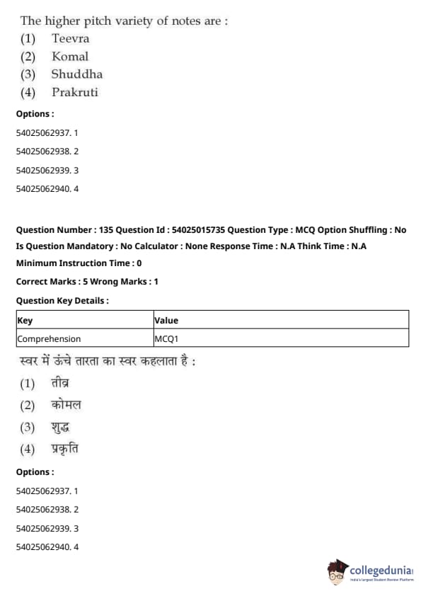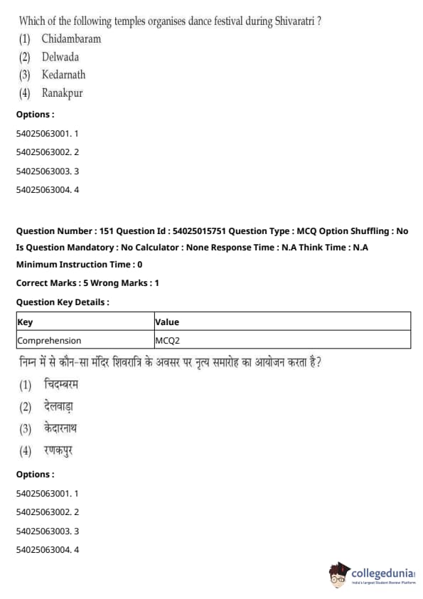 CUET Performing Arts Question Paper 2023 is based on objective-type questions (MCQs). Candidates get 45 minutes to solve 35/40 MCQs out of 45/50 in CUET 2023 question paper for Performing Arts.
