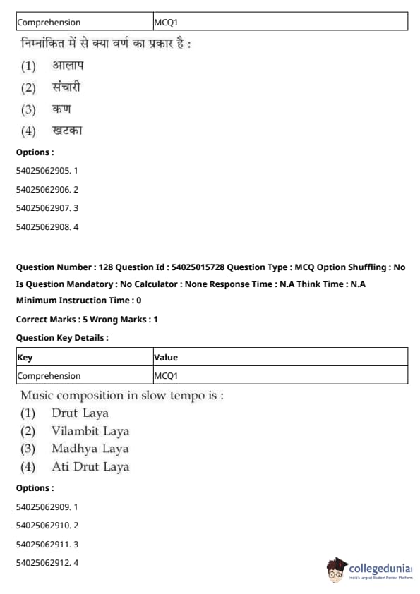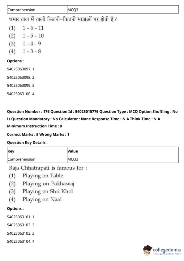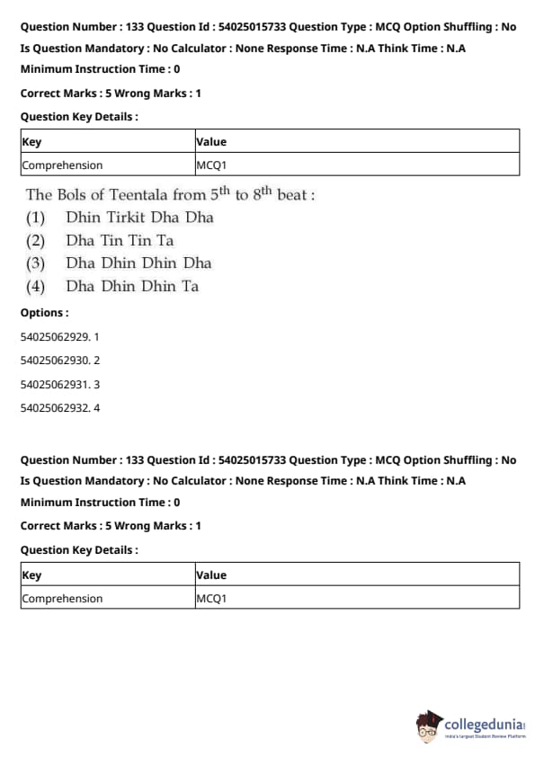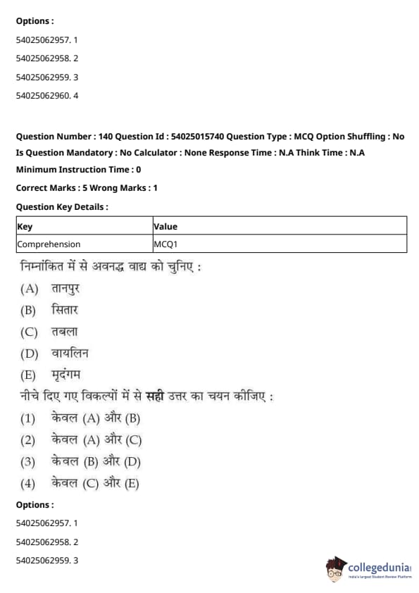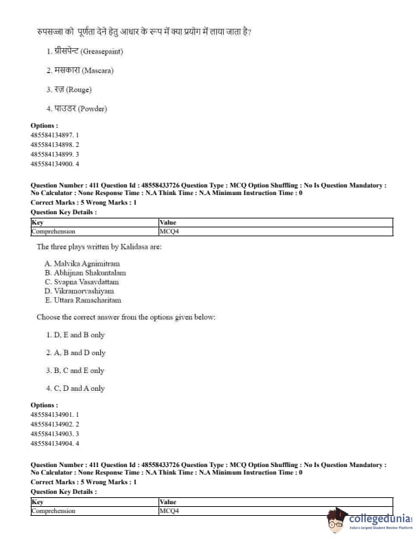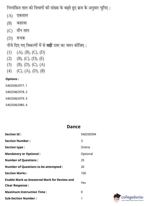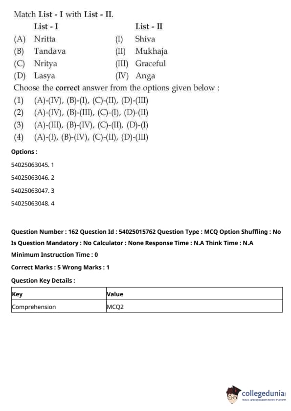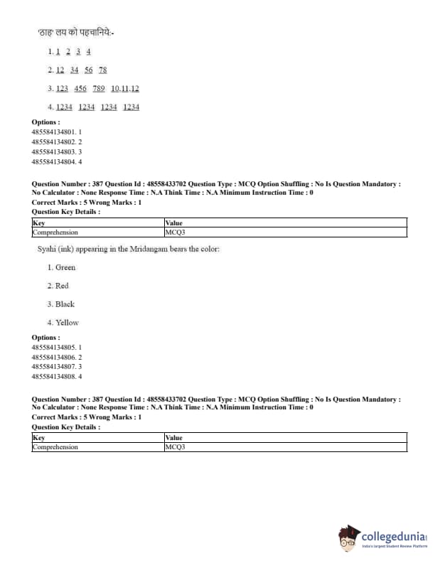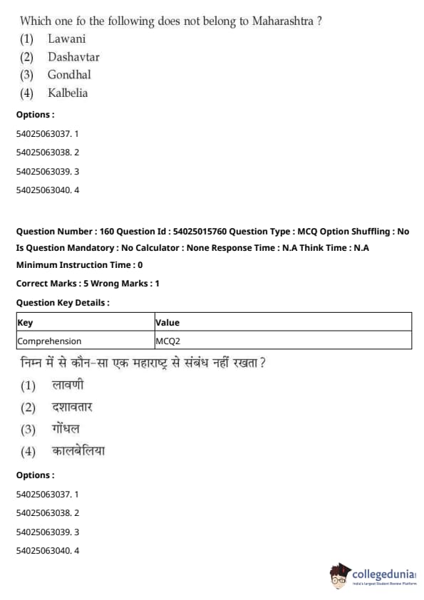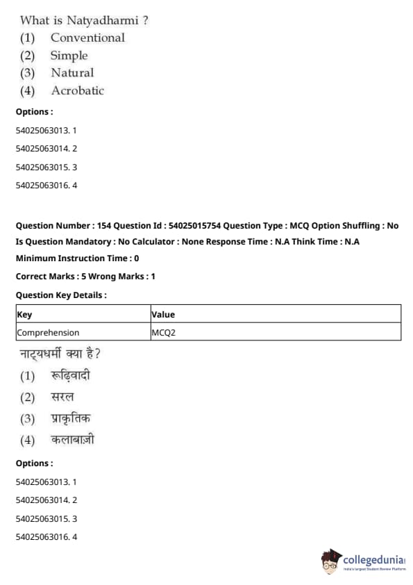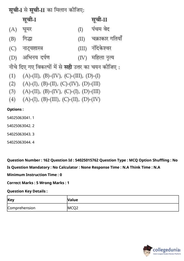 CUET Performing Arts Question Paper 2023 is based on objective-type questions (MCQs). Candidates get 45 minutes to solve 35/40 MCQs out of 45/50 in CUET 2023 question paper for Performing Arts.