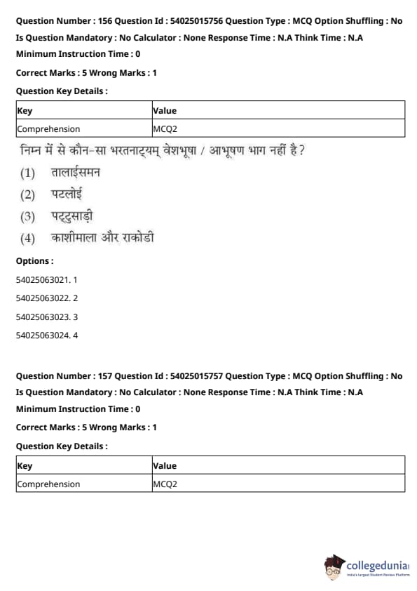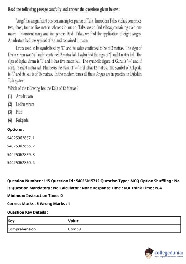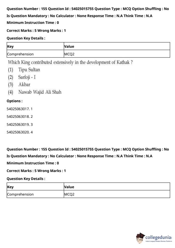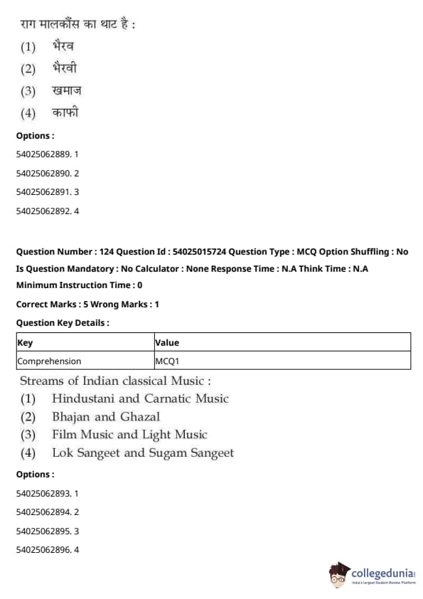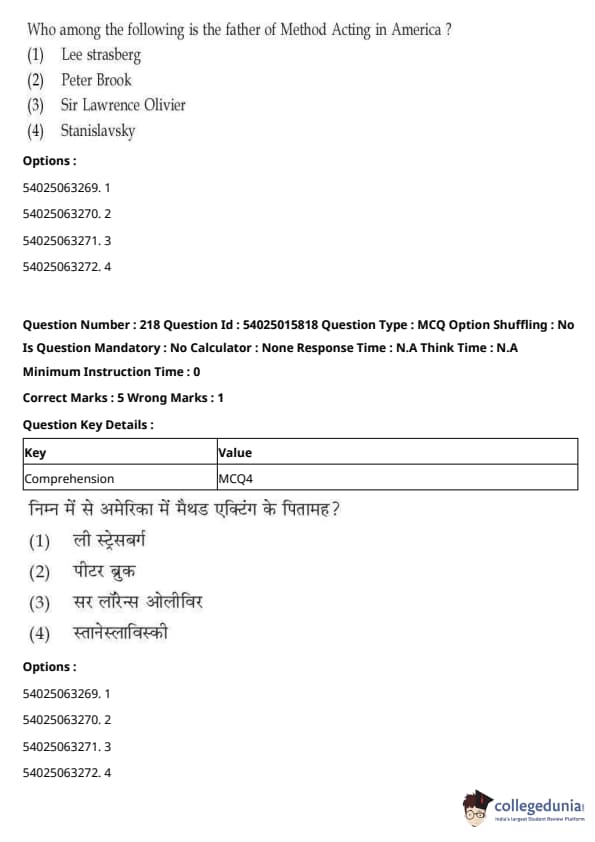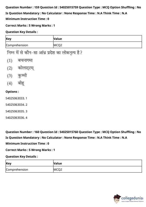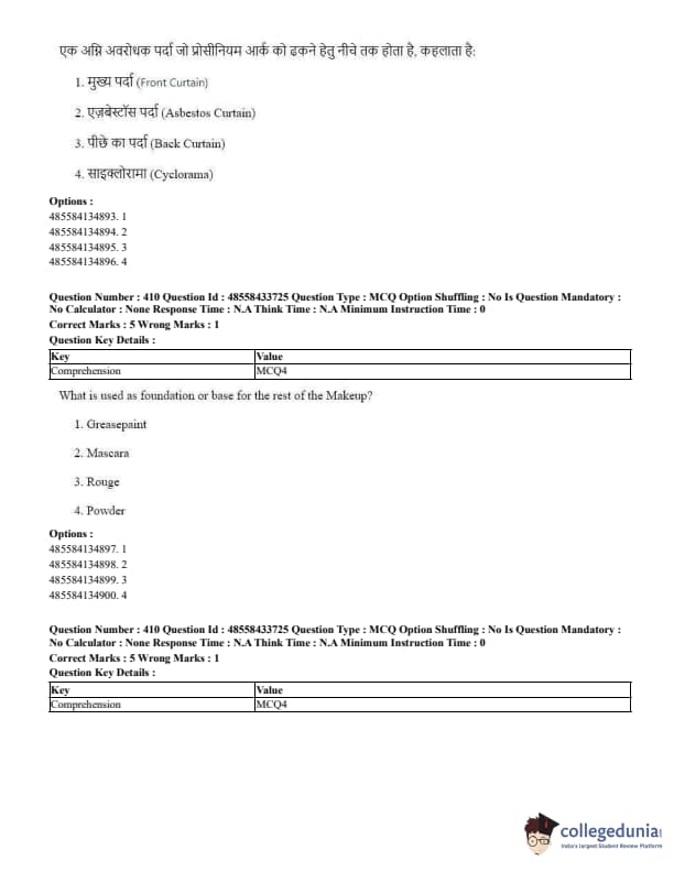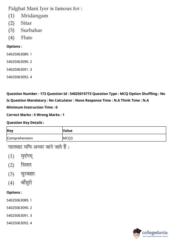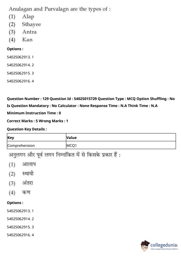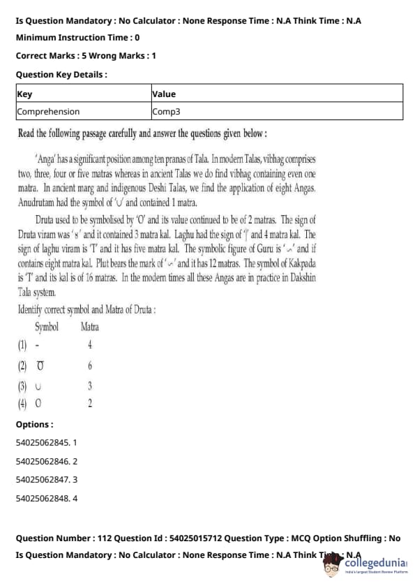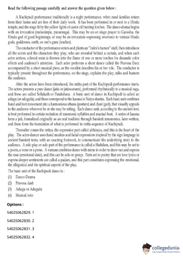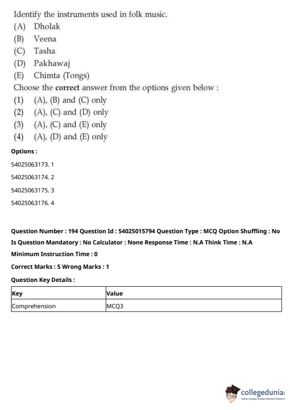 CUET Performing Arts Question Paper 2023 is based on objective-type questions (MCQs). Candidates get 45 minutes to solve 35/40 MCQs out of 45/50 in CUET 2023 question paper for Performing Arts.