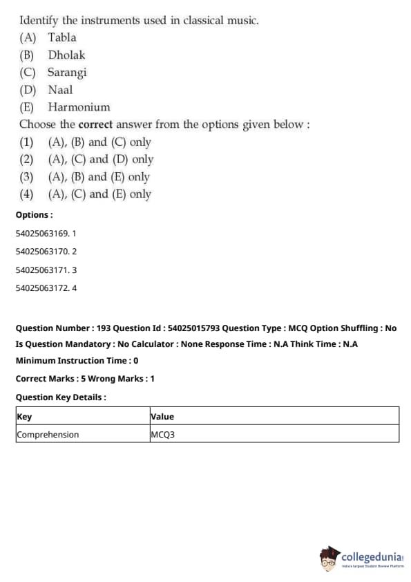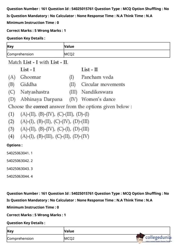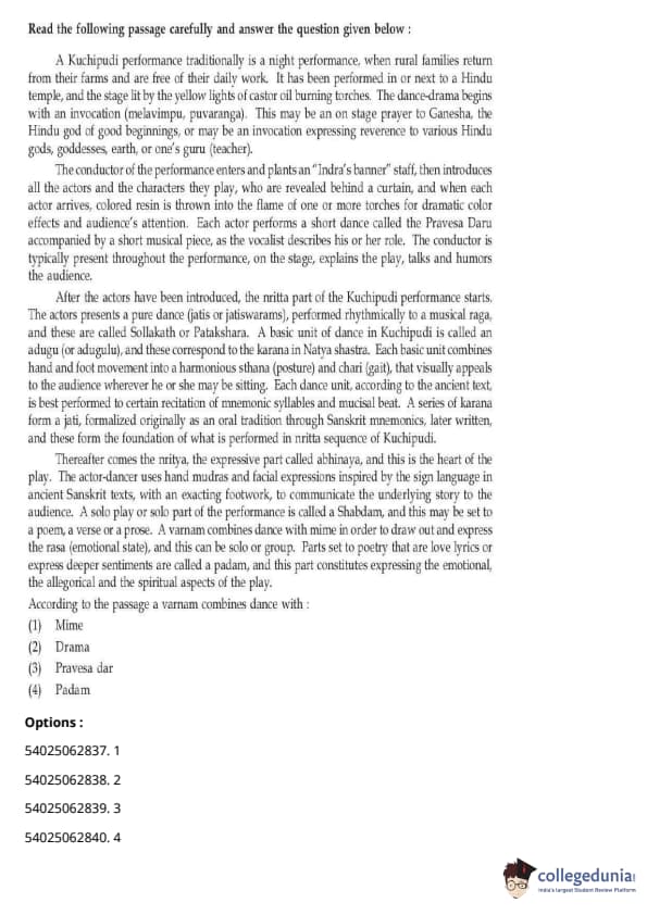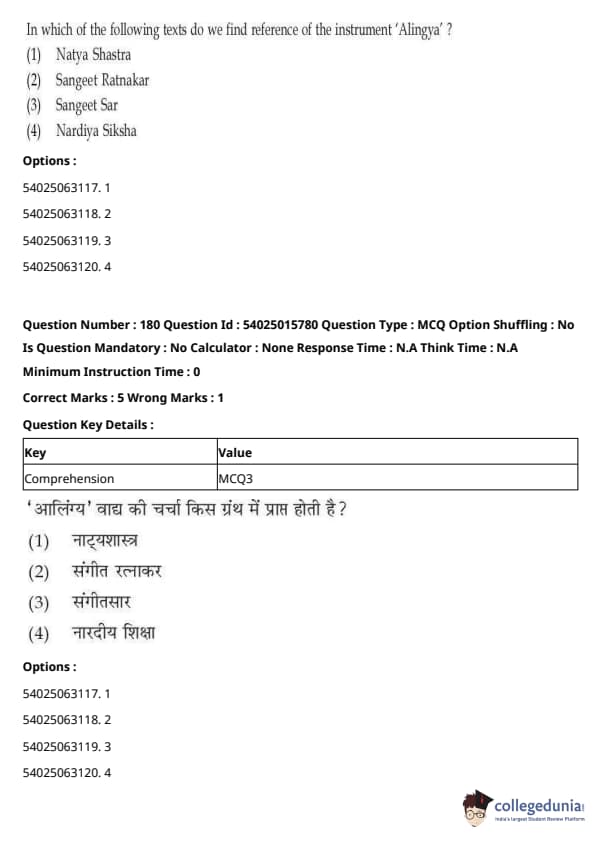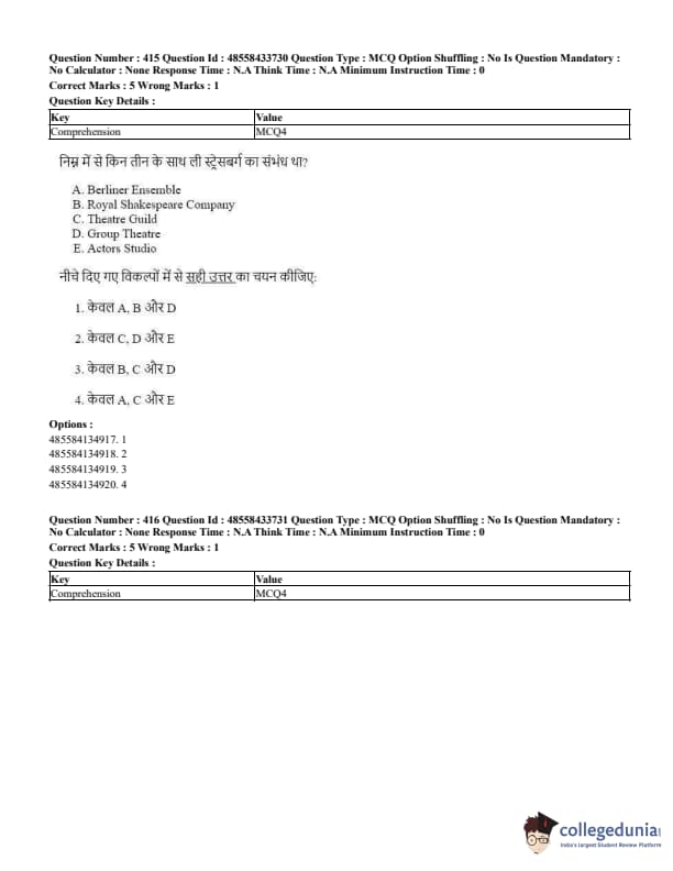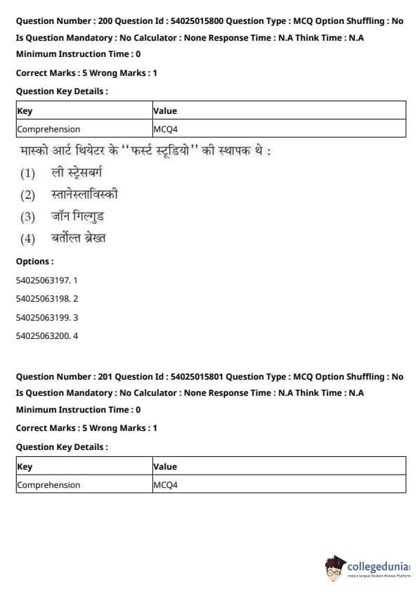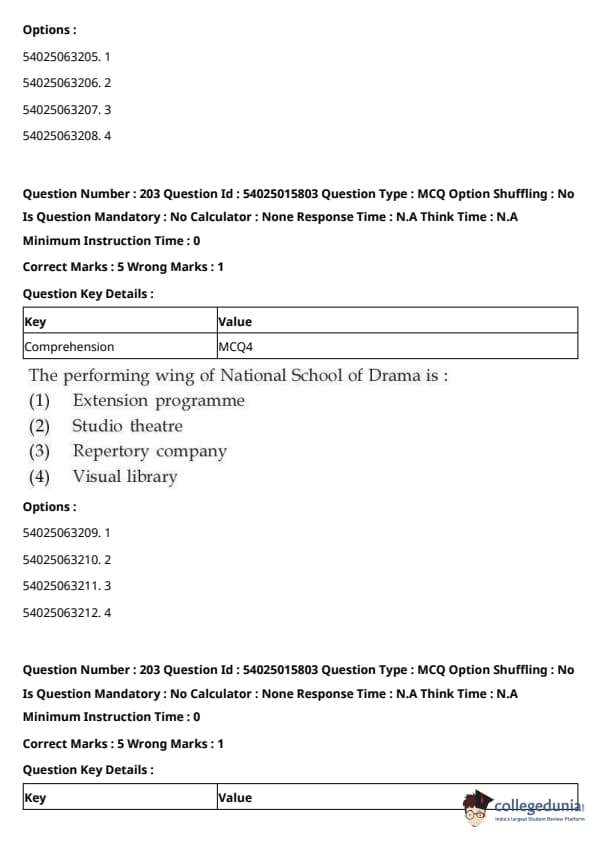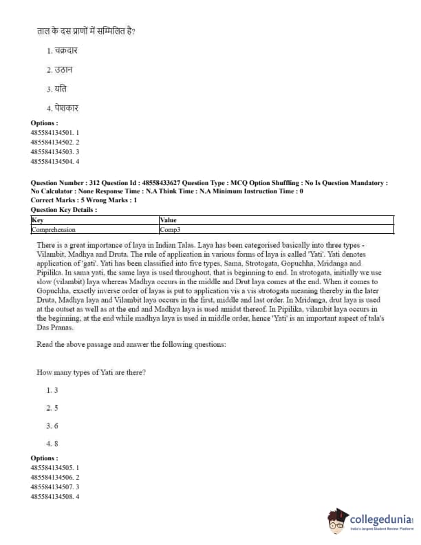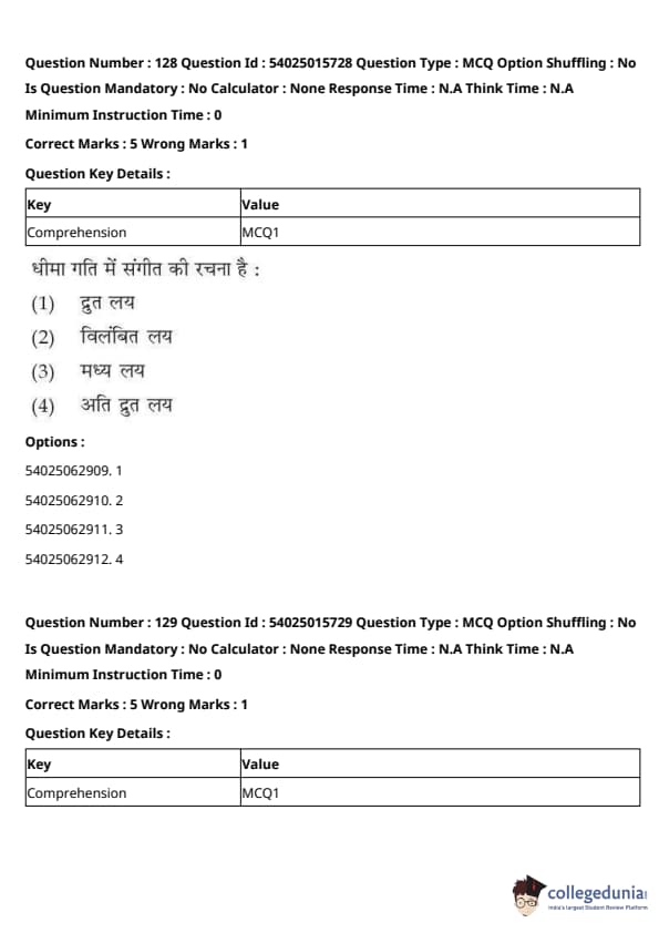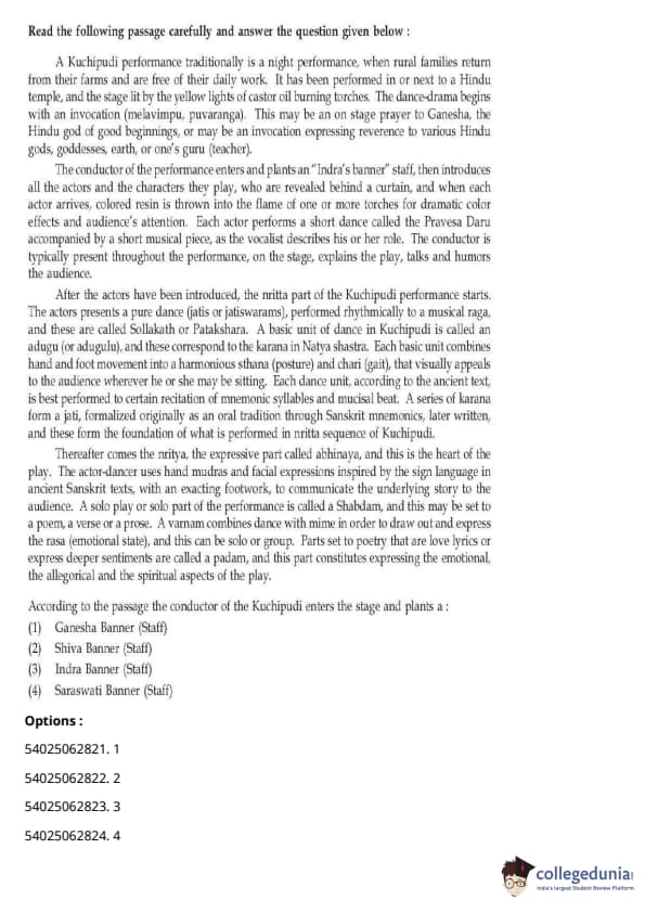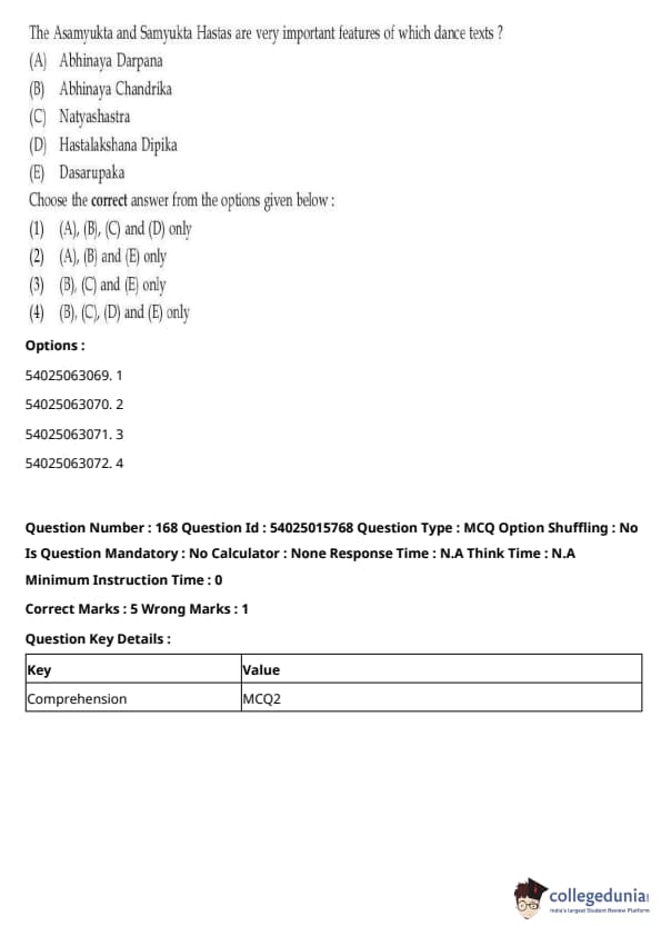 CUET Performing Arts Question Paper 2023 is based on objective-type questions (MCQs). Candidates get 45 minutes to solve 35/40 MCQs out of 45/50 in CUET 2023 question paper for Performing Arts.