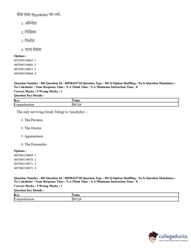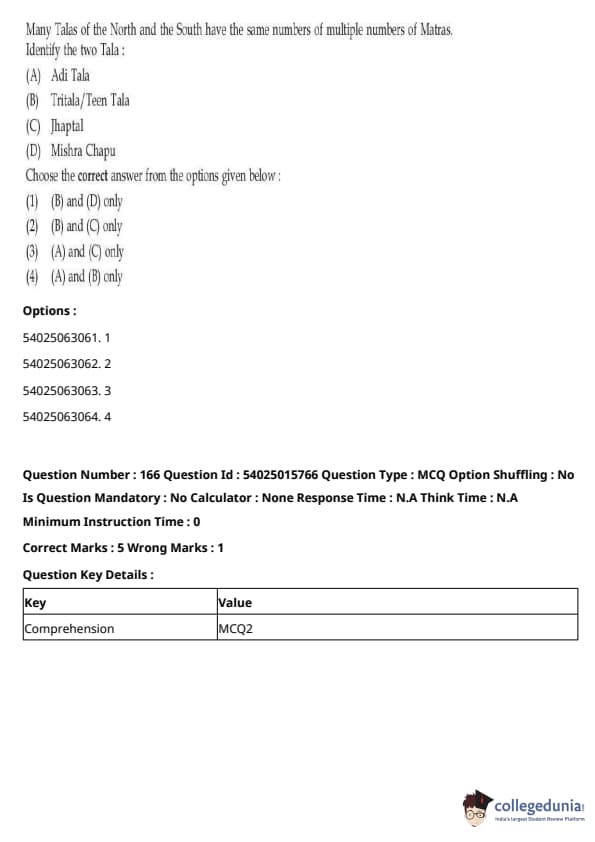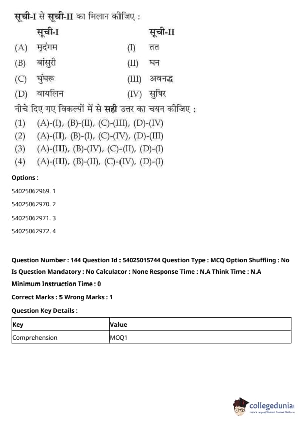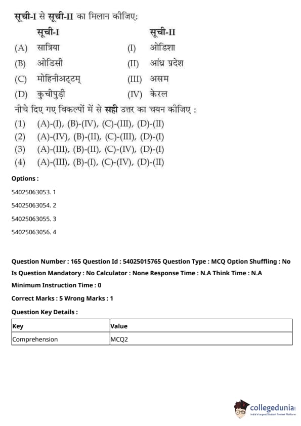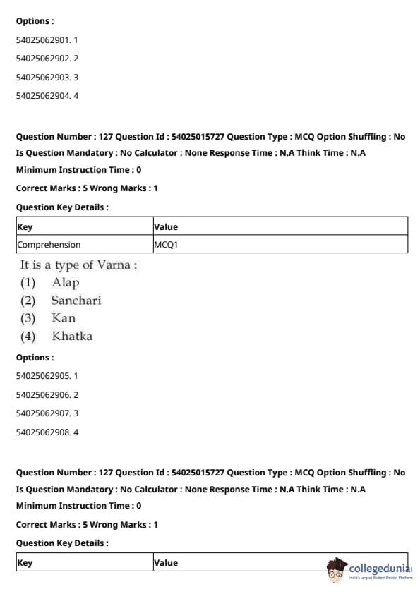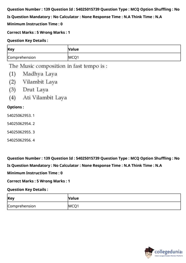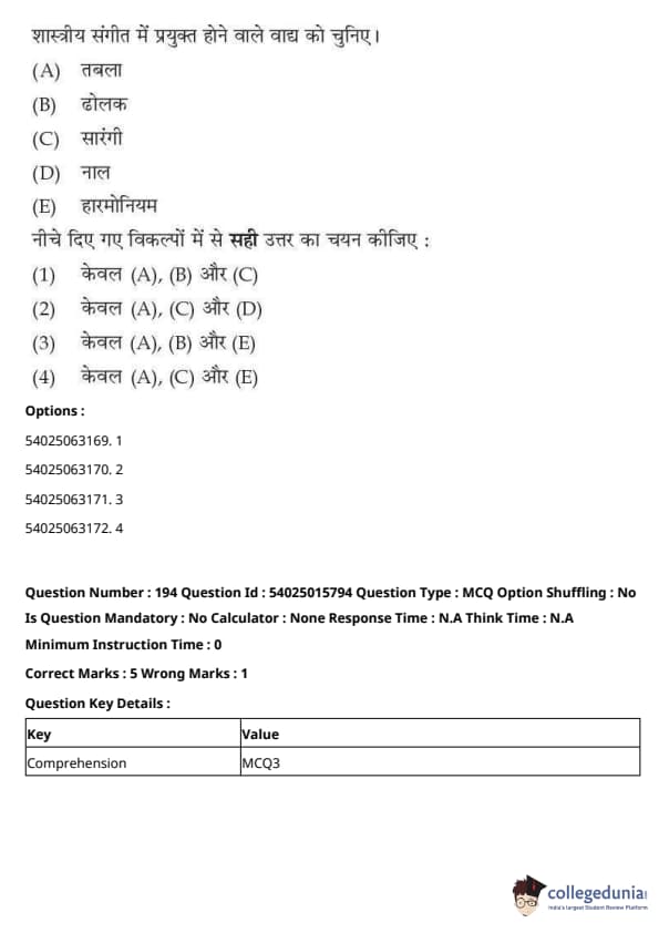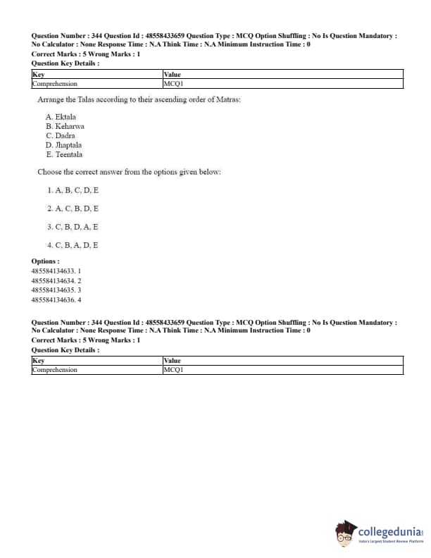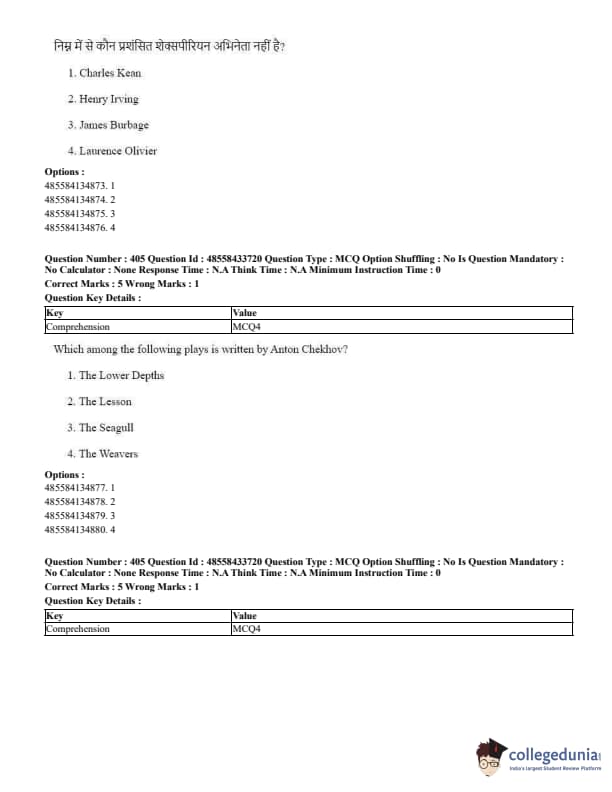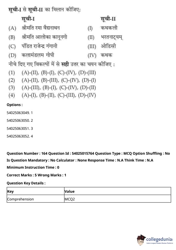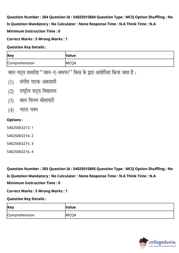 CUET Performing Arts Question Paper 2023 is based on objective-type questions (MCQs). Candidates get 45 minutes to solve 35/40 MCQs out of 45/50 in CUET 2023 question paper for Performing Arts.