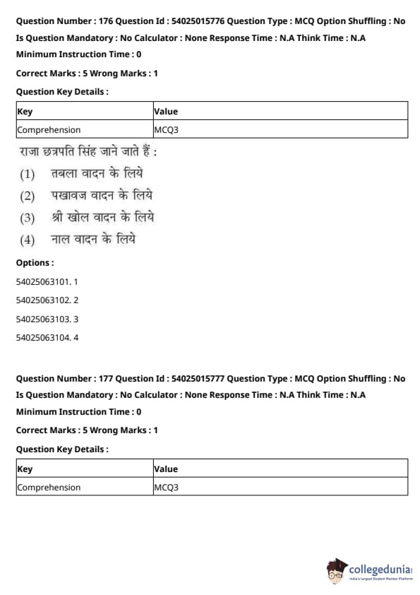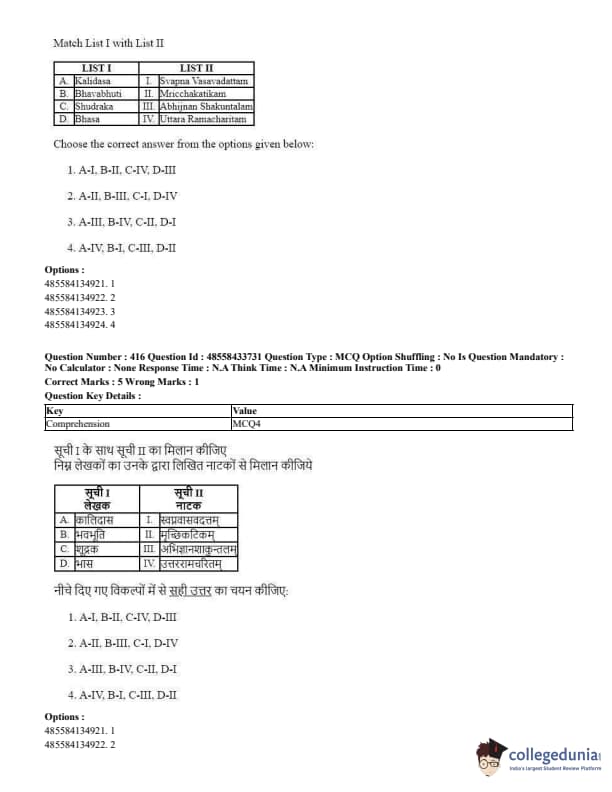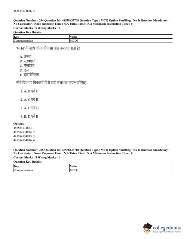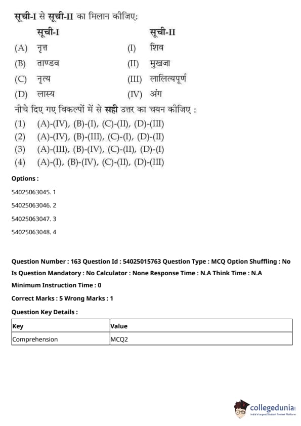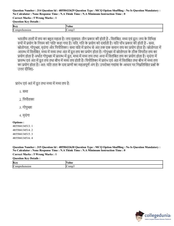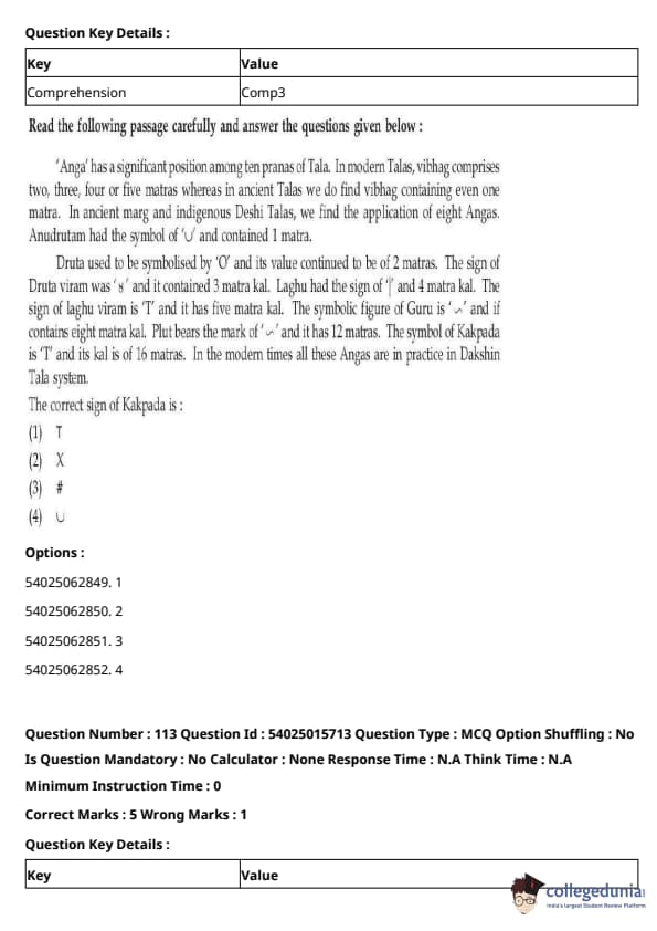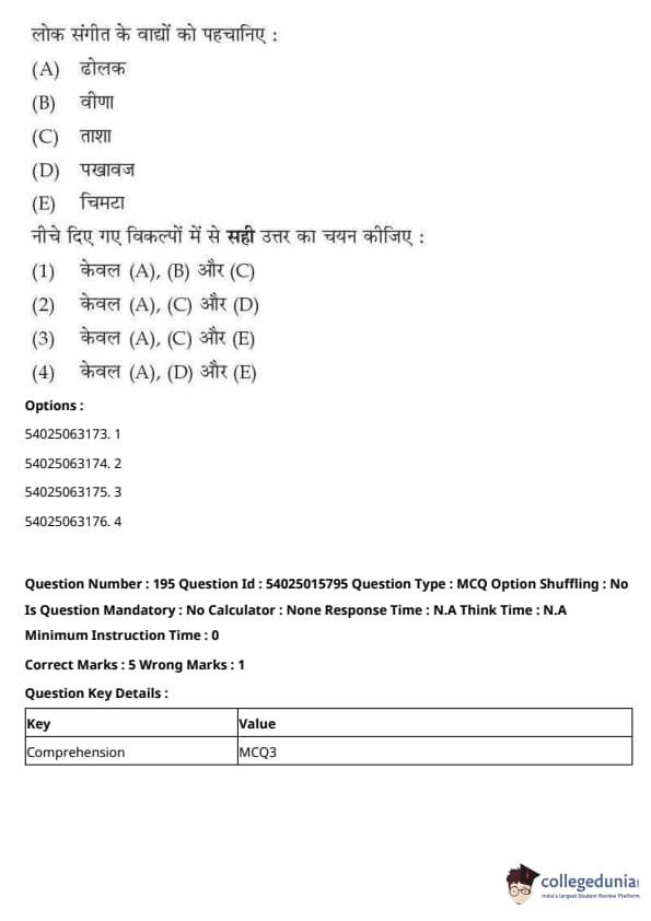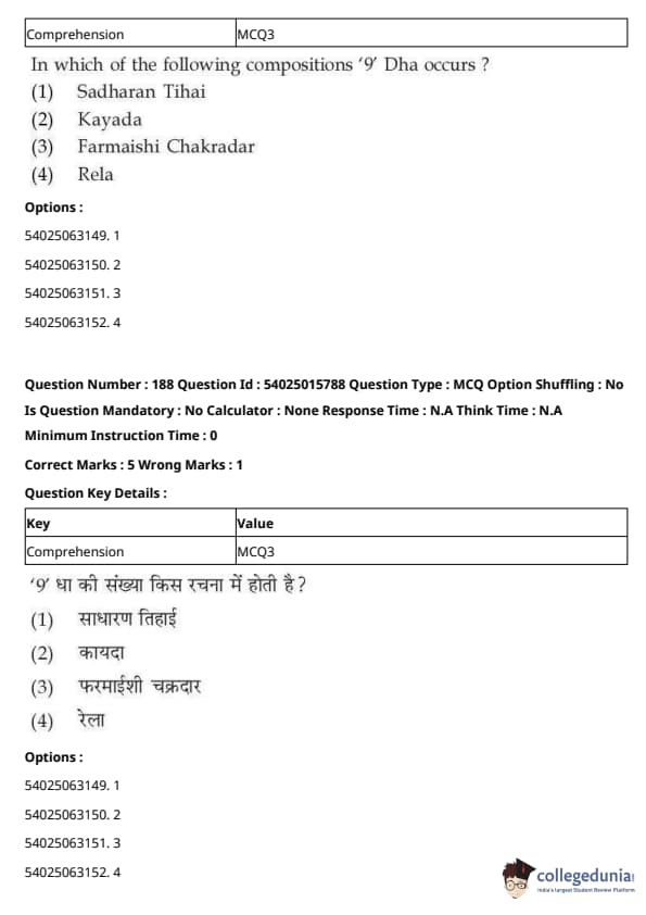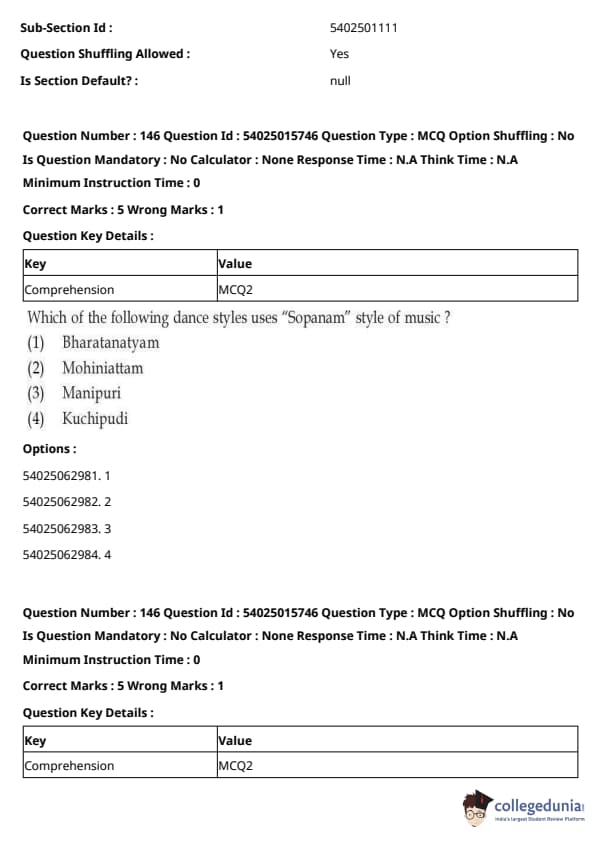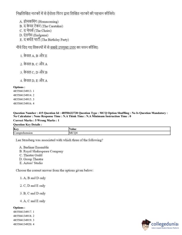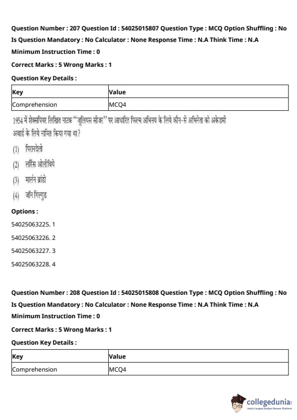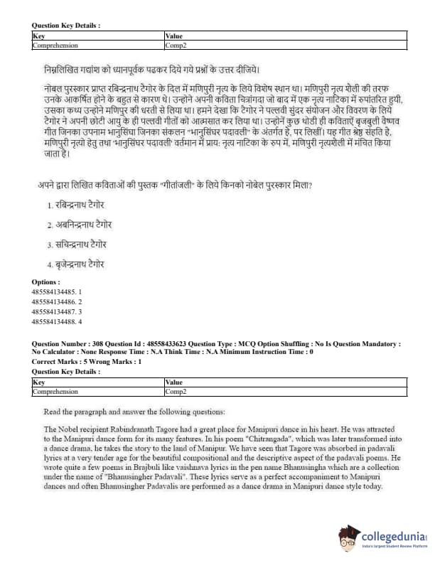 CUET Performing Arts Question Paper 2023 is based on objective-type questions (MCQs). Candidates get 45 minutes to solve 35/40 MCQs out of 45/50 in CUET 2023 question paper for Performing Arts.