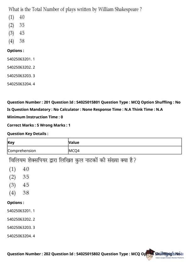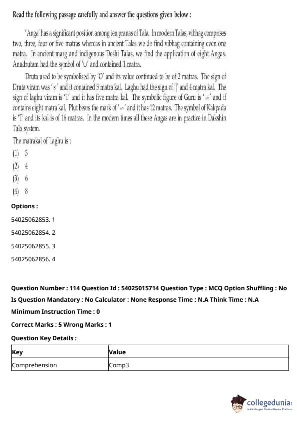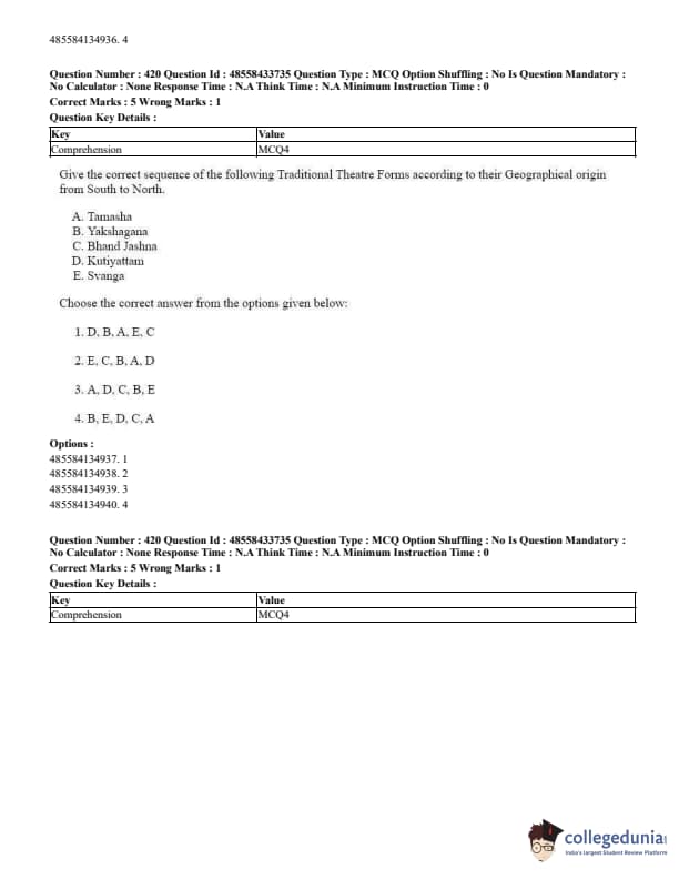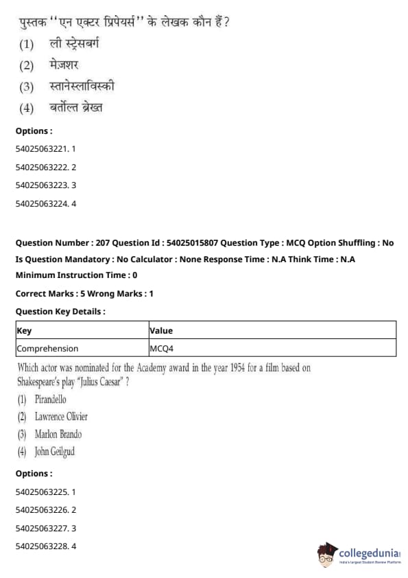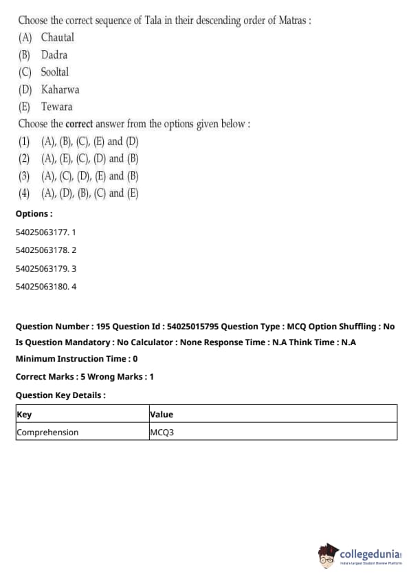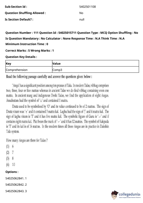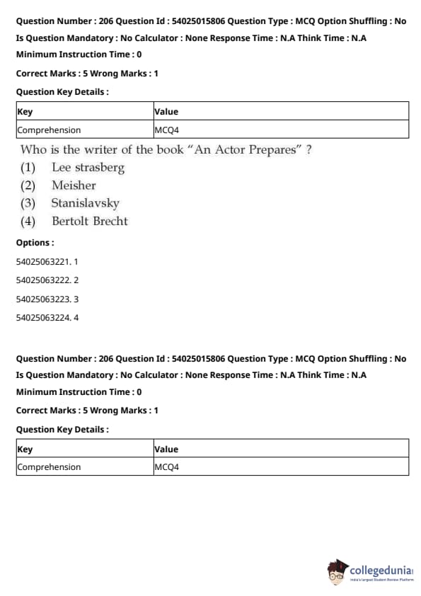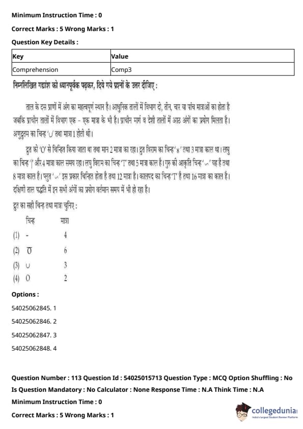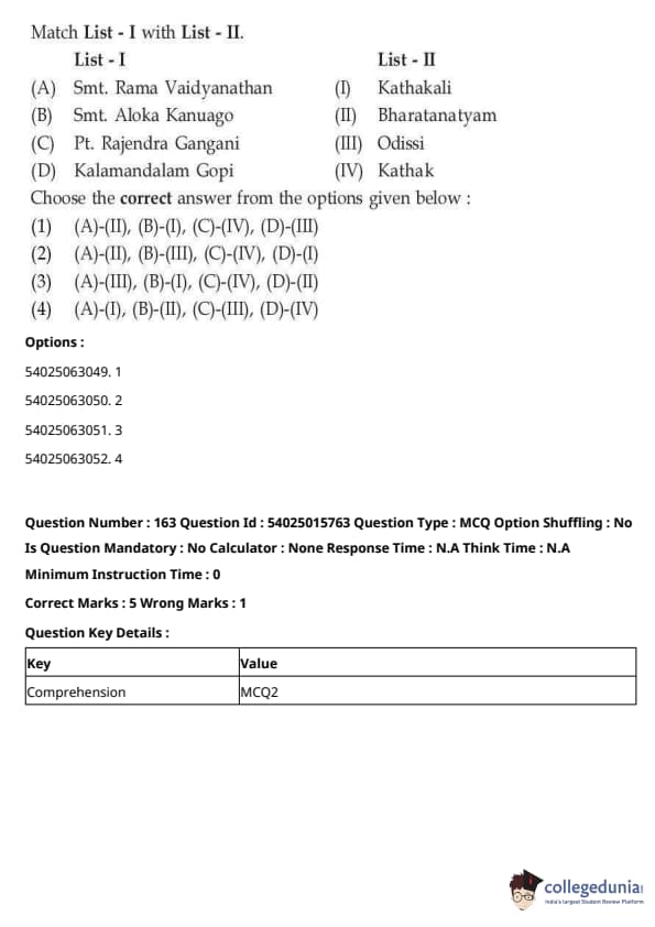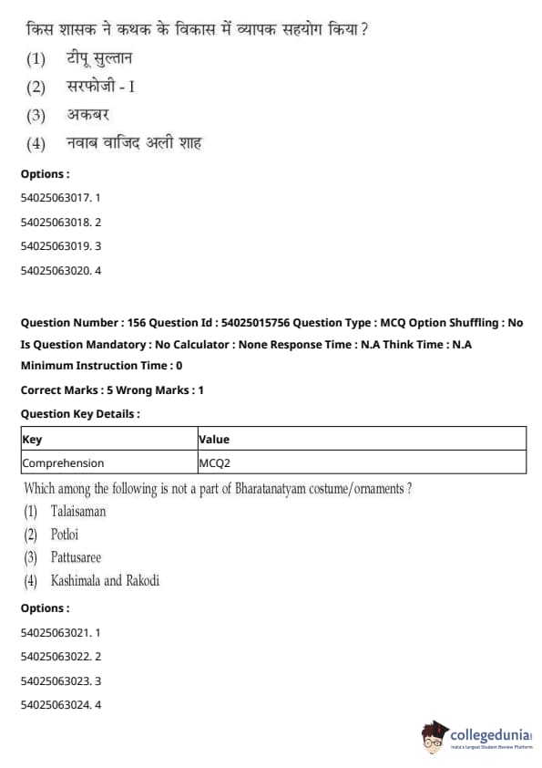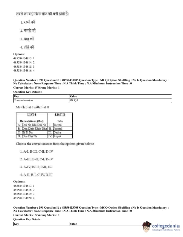 CUET Performing Arts Question Paper 2023 is based on objective-type questions (MCQs). Candidates get 45 minutes to solve 35/40 MCQs out of 45/50 in CUET 2023 question paper for Performing Arts.