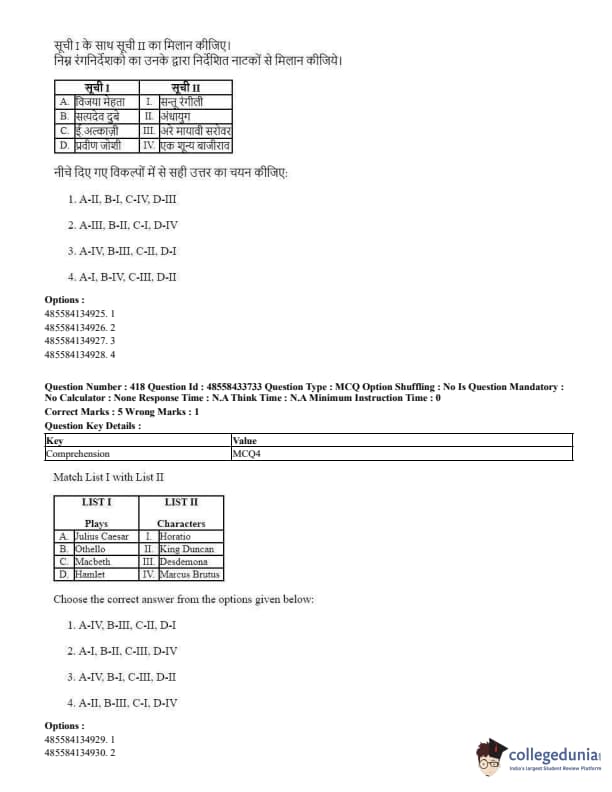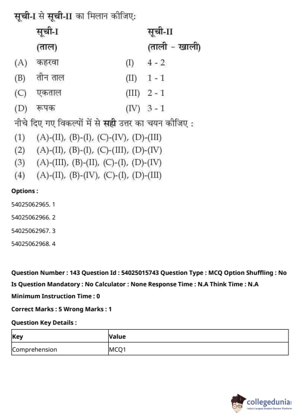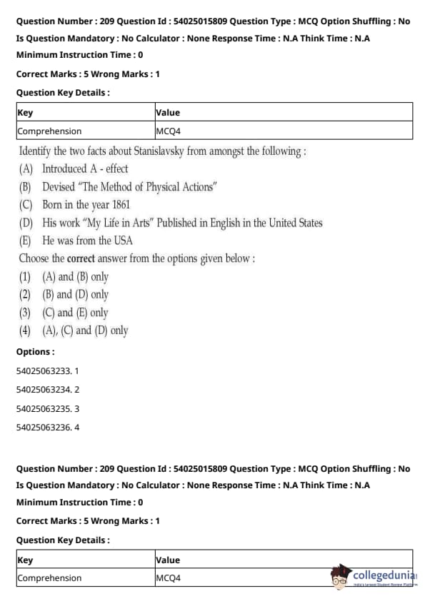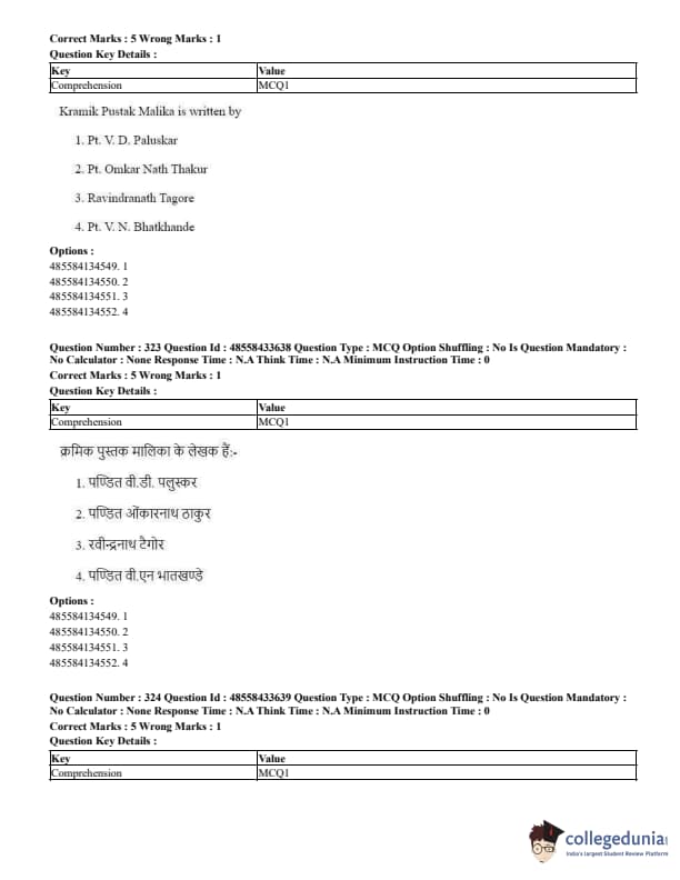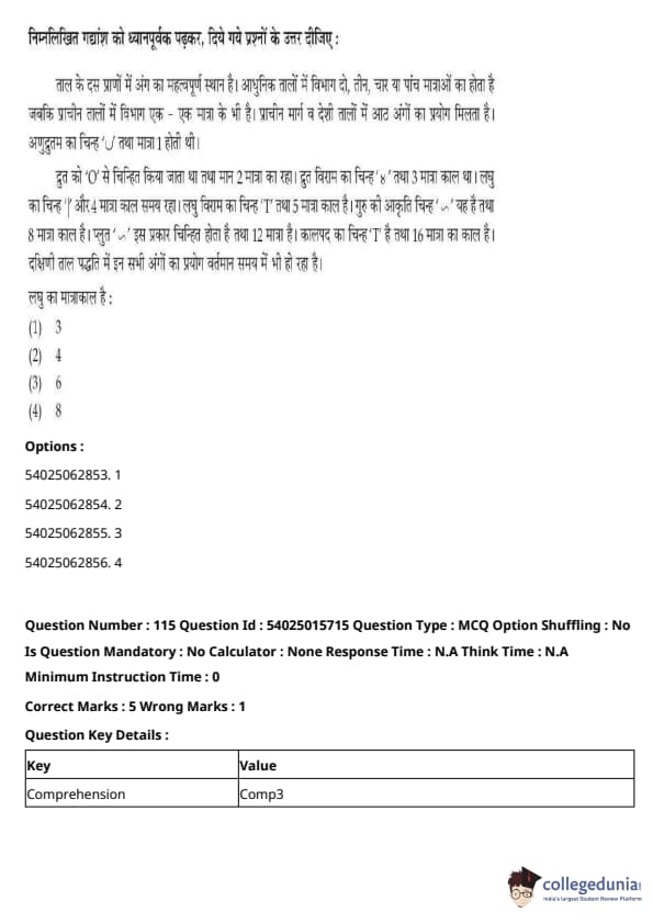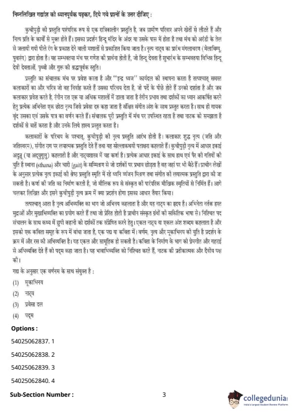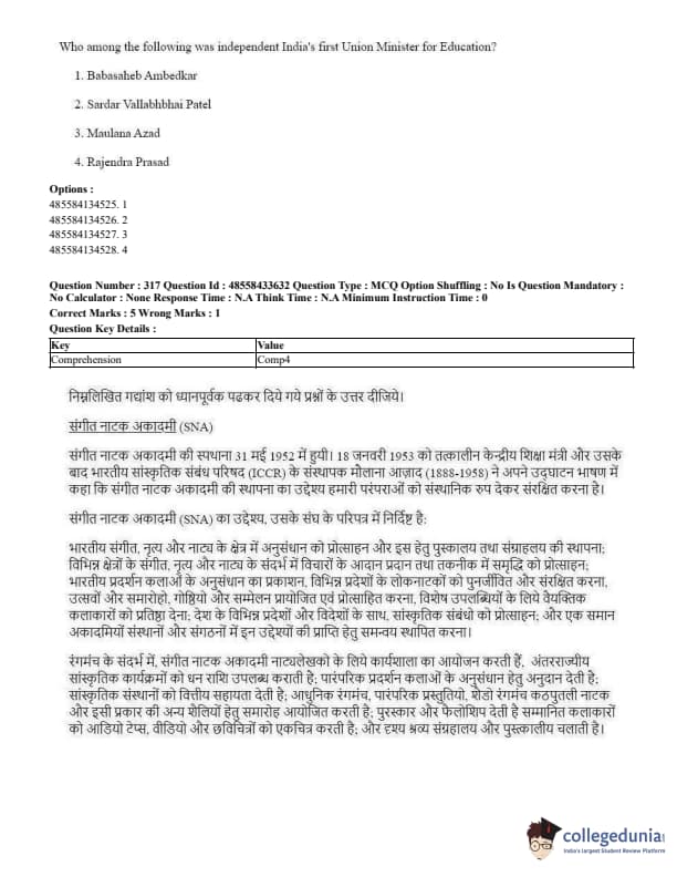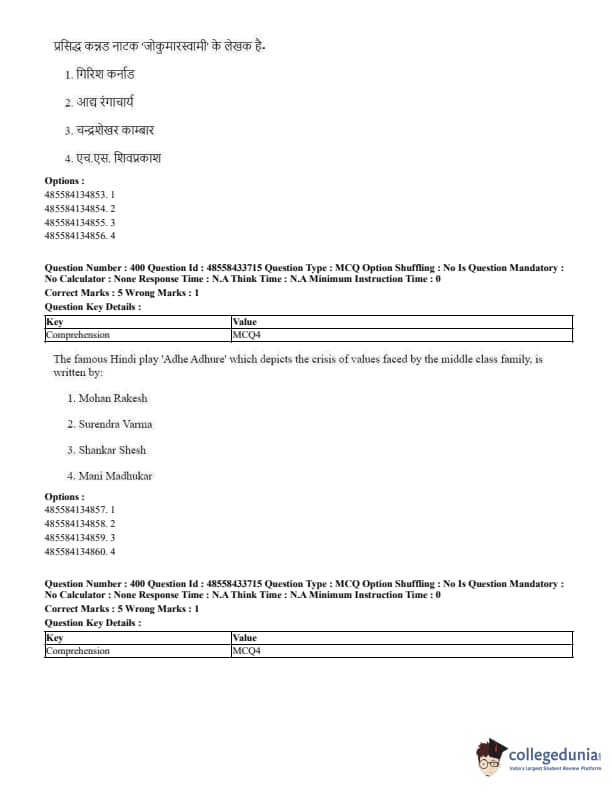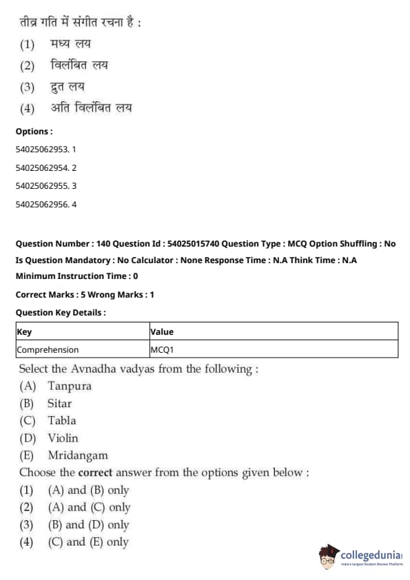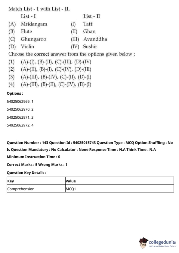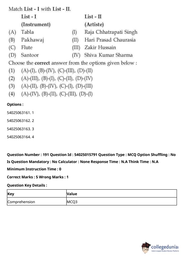 CUET Performing Arts Question Paper 2023 is based on objective-type questions (MCQs). Candidates get 45 minutes to solve 35/40 MCQs out of 45/50 in CUET 2023 question paper for Performing Arts.