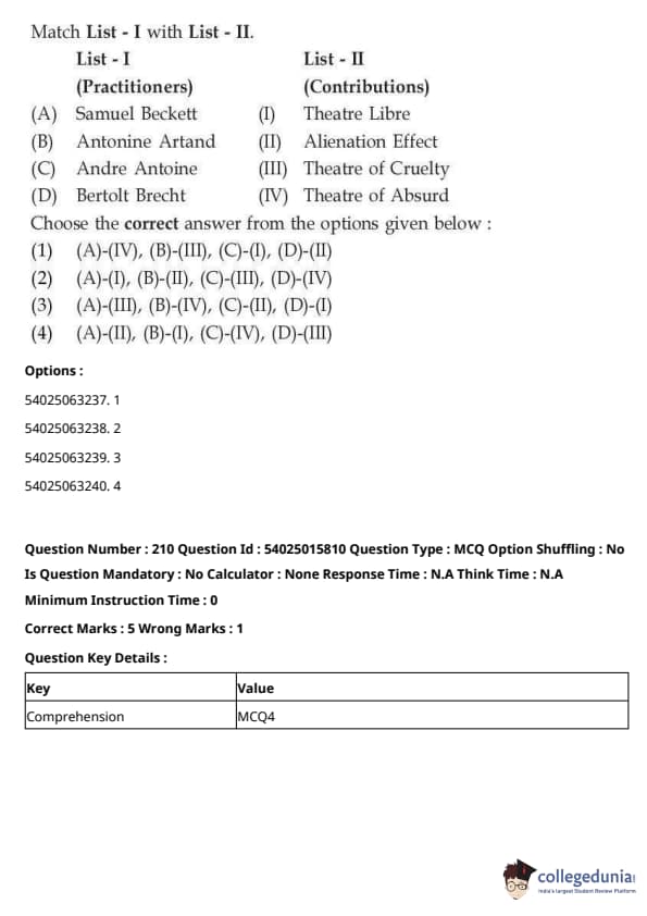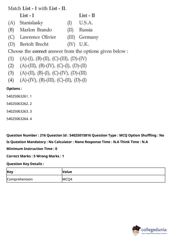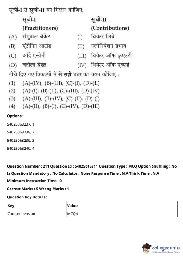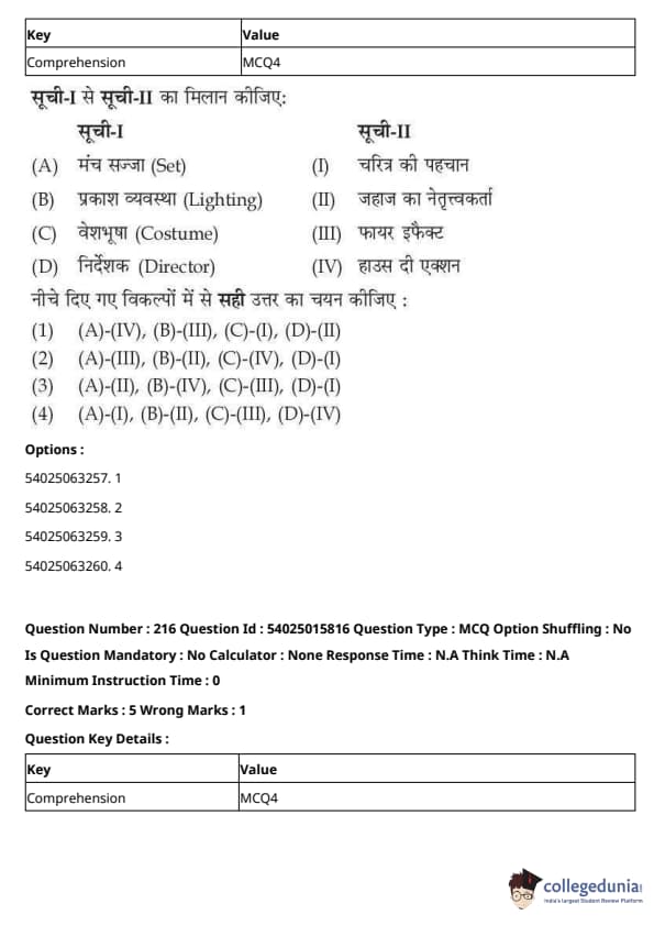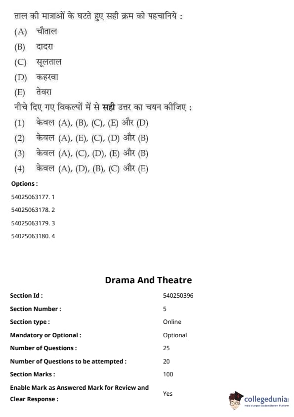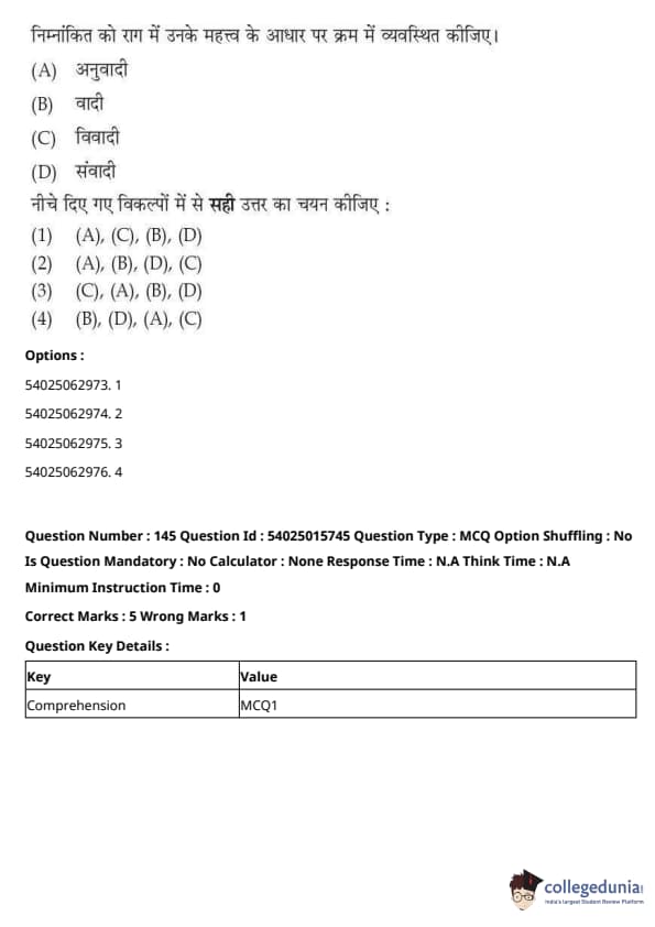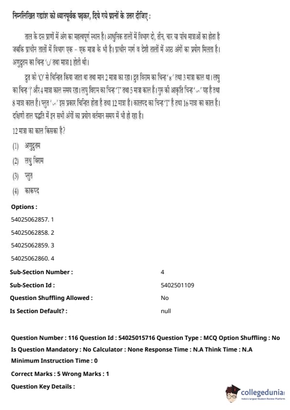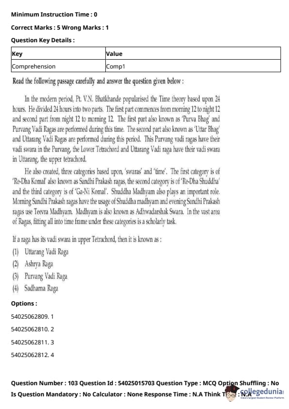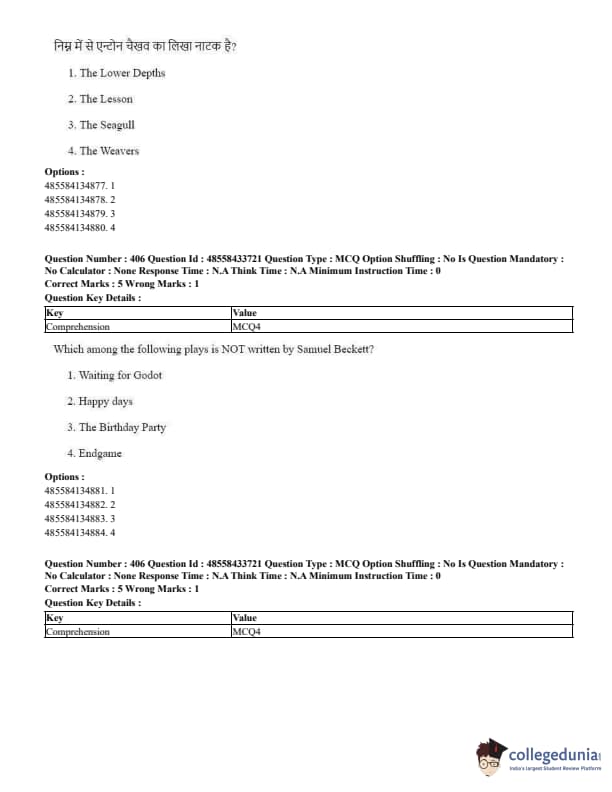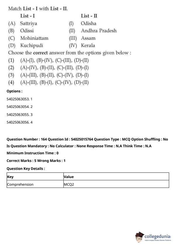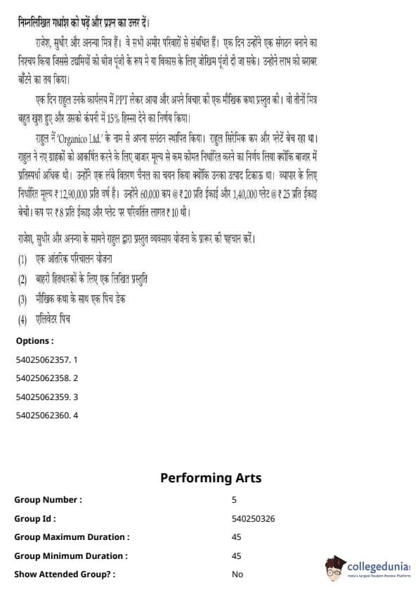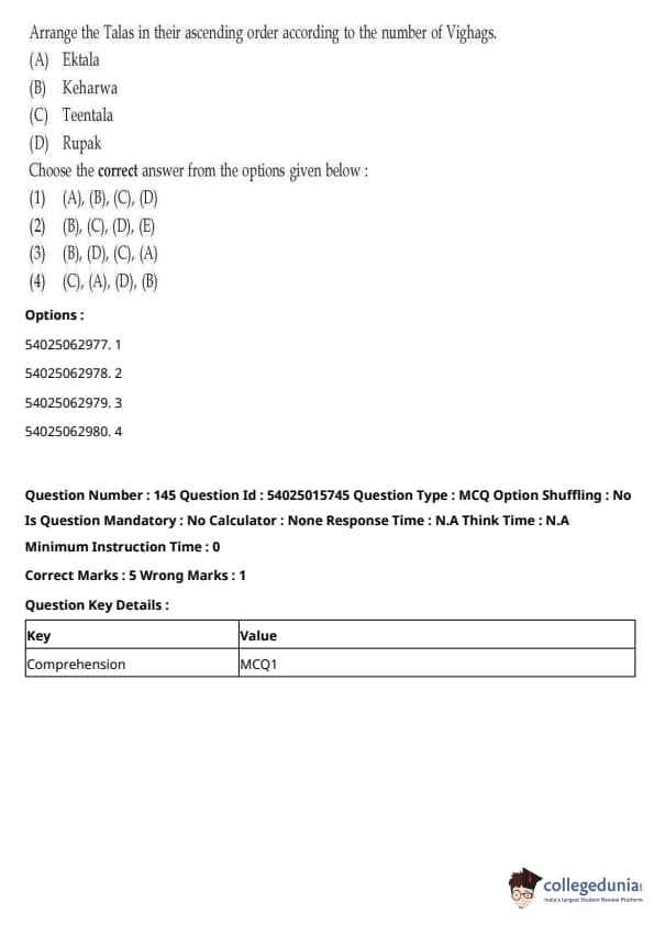 CUET Performing Arts Question Paper 2023 is based on objective-type questions (MCQs). Candidates get 45 minutes to solve 35/40 MCQs out of 45/50 in CUET 2023 question paper for Performing Arts.