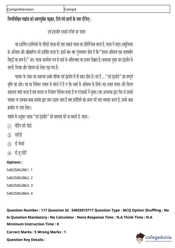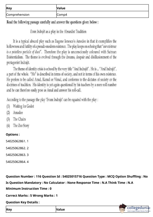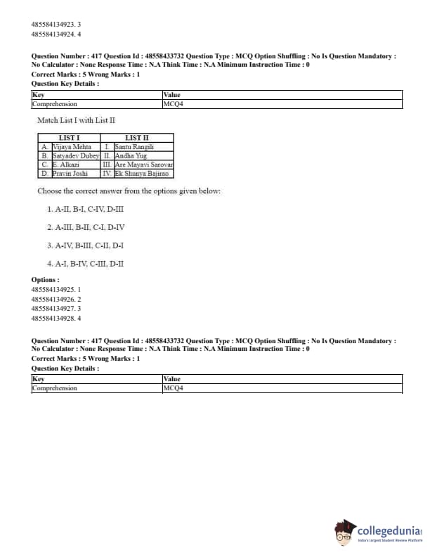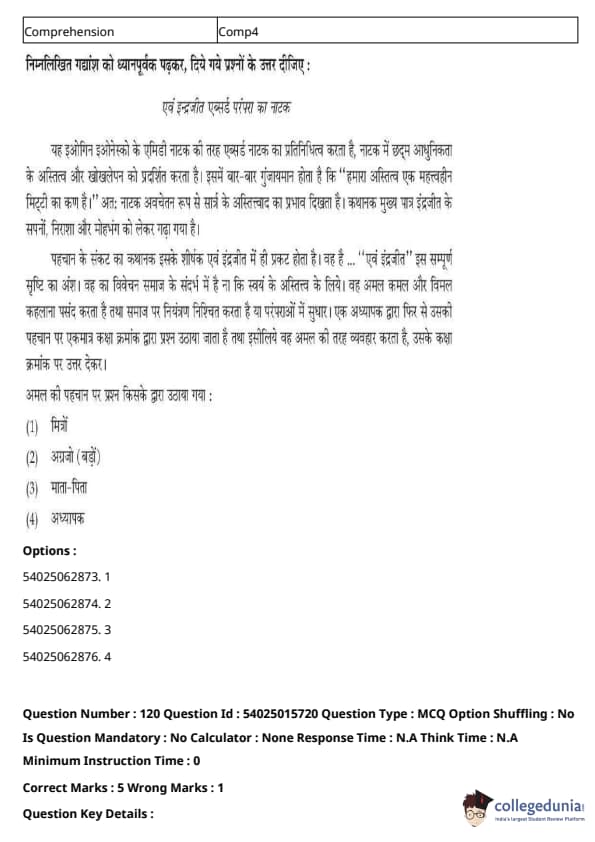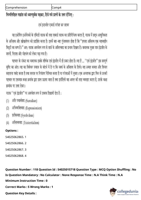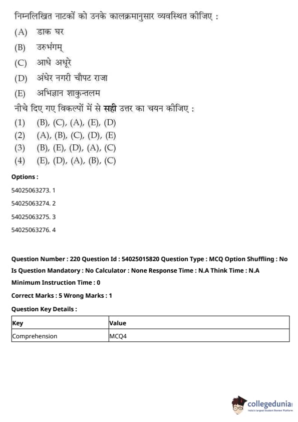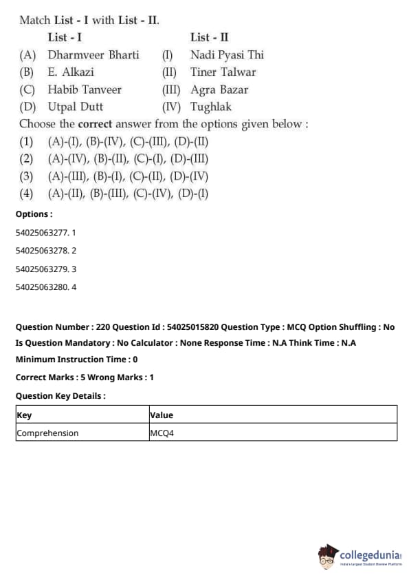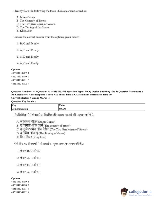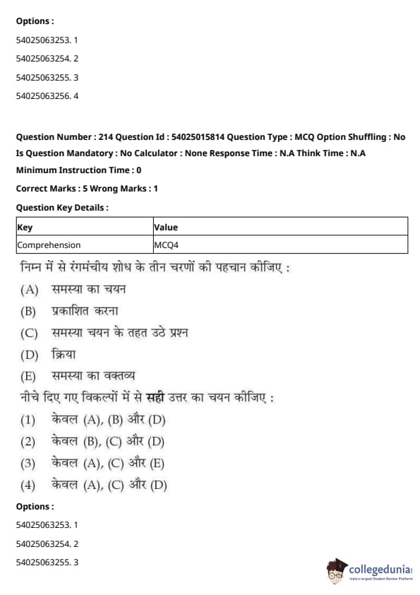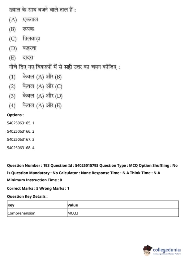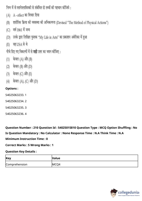 CUET Performing Arts Question Paper 2023 is based on objective-type questions (MCQs). Candidates get 45 minutes to solve 35/40 MCQs out of 45/50 in CUET 2023 question paper for Performing Arts.