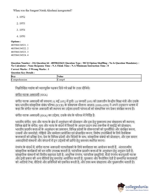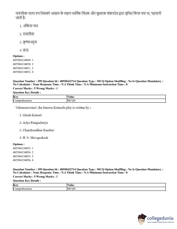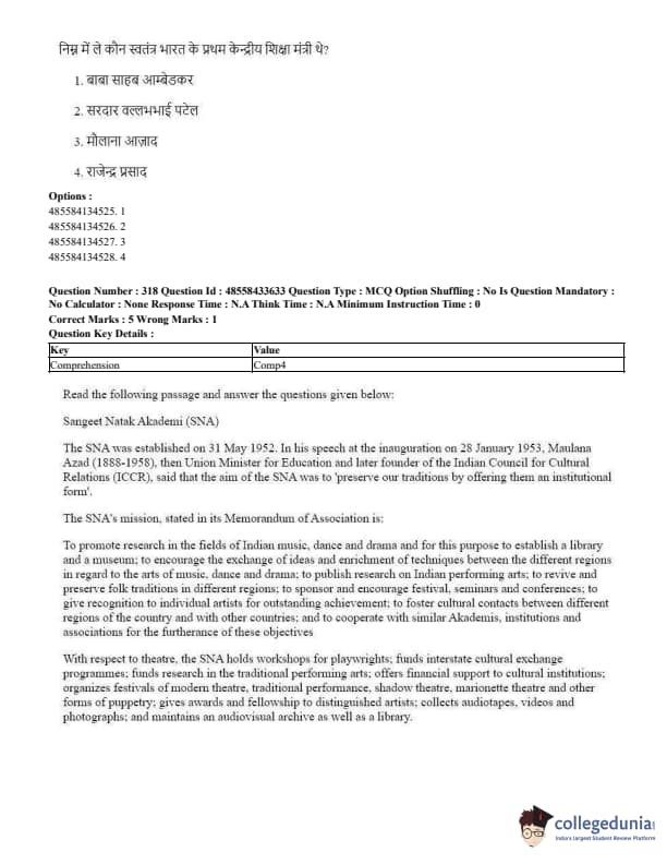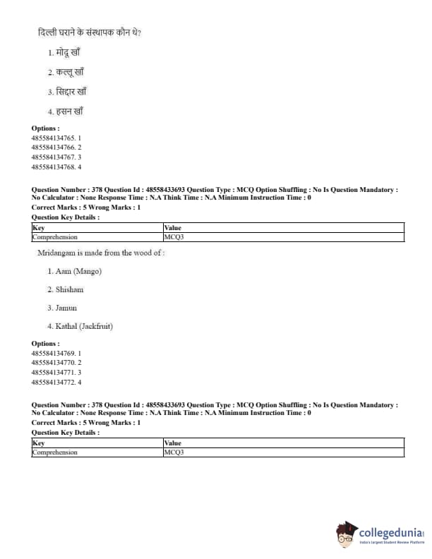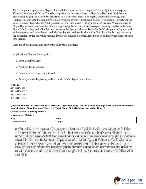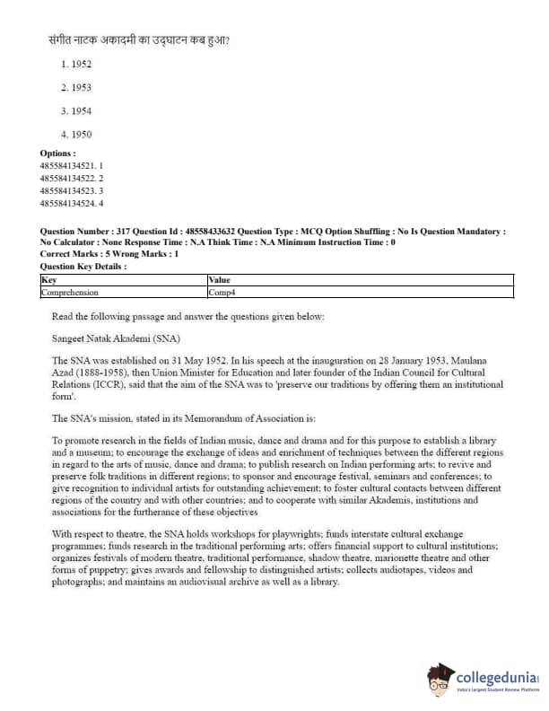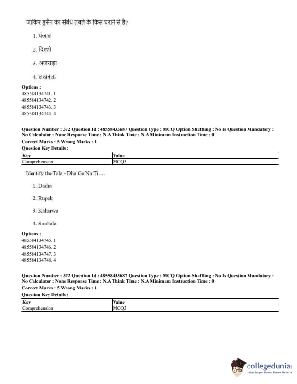 CUET Performing Arts Question Paper 2023 PDF Download