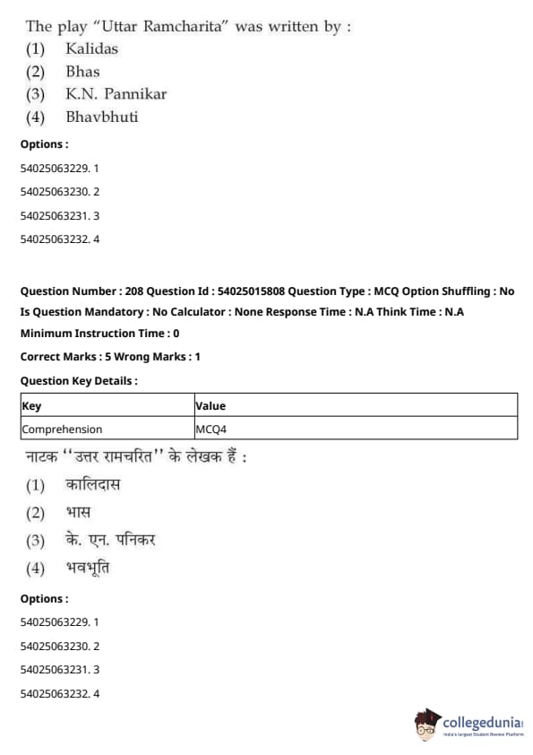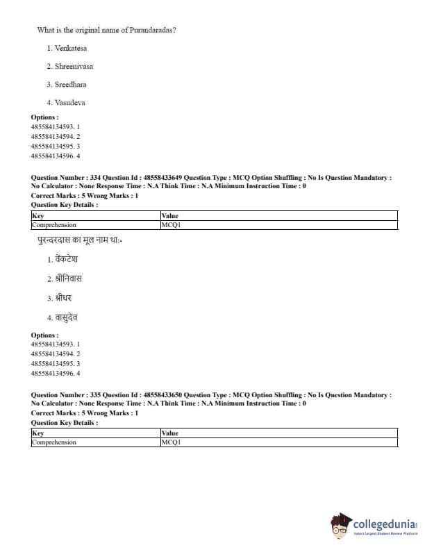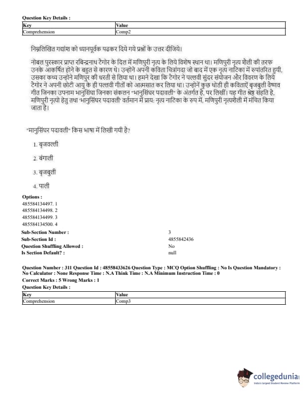 CUET Previous Year Question Paper PDF