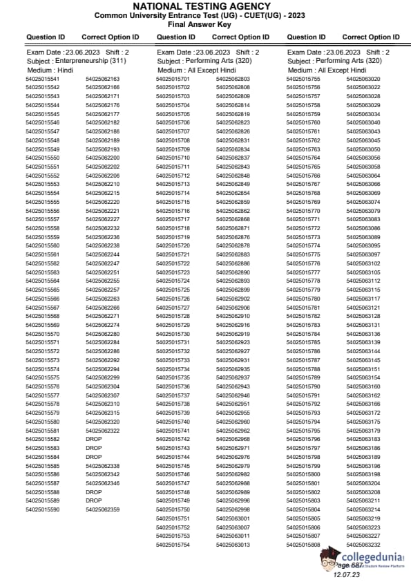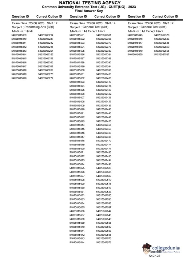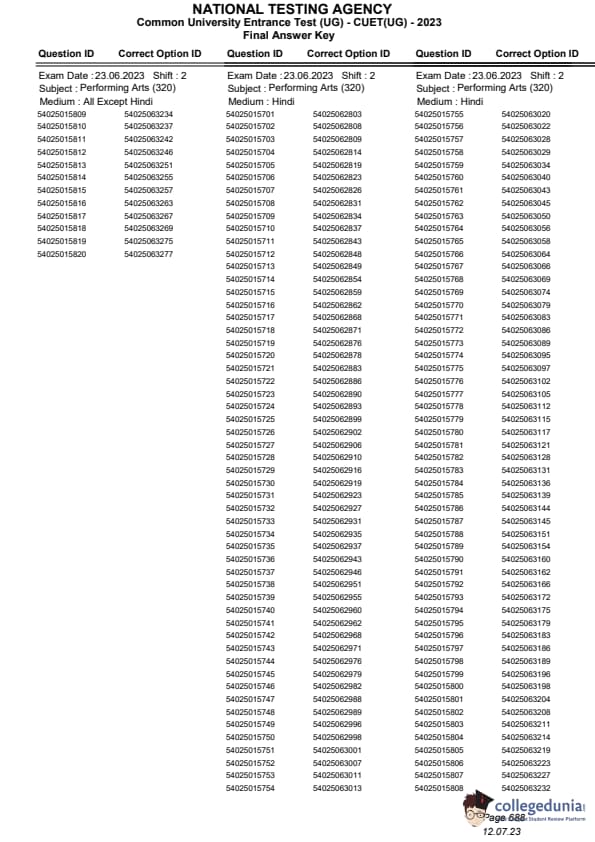 CUET Performing Arts Question Paper 2023 is available. NTA conducted CUET 2023 from May 21 to 31 and also on June 1, 2, 5 and 6 in selected cities.