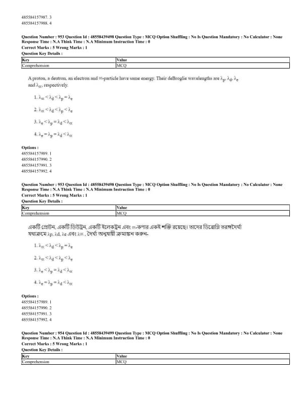 A proton, a deuteron, an electron, and an \(\alpha\)-particle have the same energy. Their deBroglie wavelengths are \( \lambda_p \), \( \lambda_d \), \( \lambda_e \), and \( \lambda_{\alpha} \), respectively. Which of the following is correct?