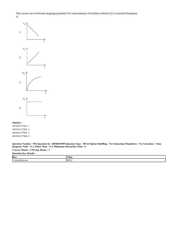 The correct curve between stopping potential \( V_0 \) and intensity of incident radiation \( I \) at constant frequency is:
